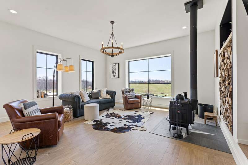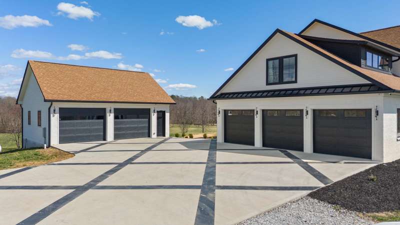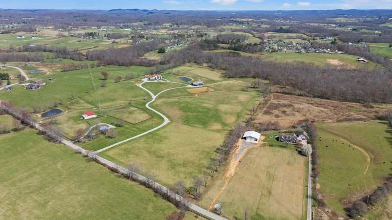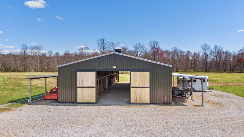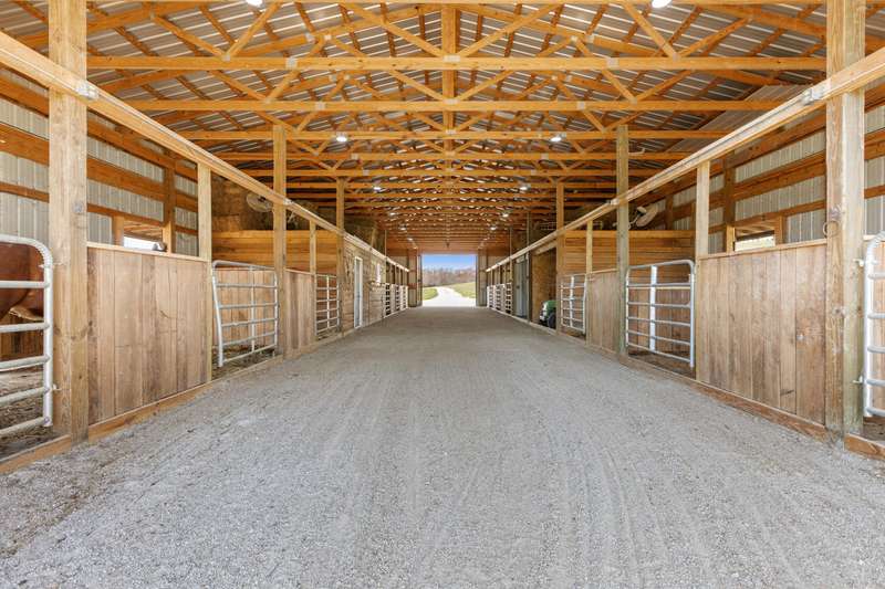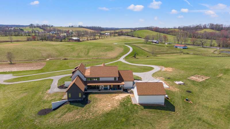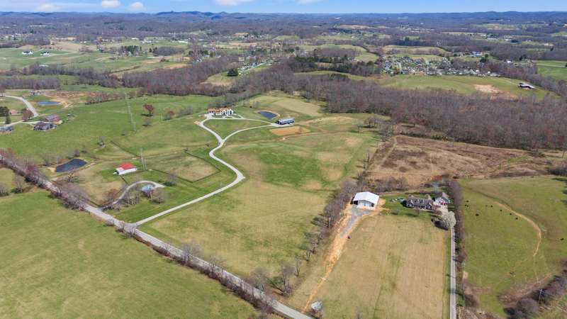 Discover this exceptional 44+ acre farm in Laurel County featuring rolling hills, scenic water views, and nearly 10,000 square feet of thoughtfully designed living space, newly constructed in 2022. A two-story foyer welcomes you into an expansive living room centered around a gas fireplace. The gourmet kitchen showcases custom cabinetry, quartzite countertops, a 48-inch gas range with pot filler, double ovens, and two dishwashers. Additional conveniences include a walk-in pantry with wet bar, a mudroom with built-ins and dog kennels, and a laundry room with chute. A den off the living room provides flexible use with a wood stove and space suited for a music area or office. The primary suite offers a cozy fireplace, private patio access, a spacious walk-in closet with its own laundry area, and an ensuite bath featuring a tiled shower and custom copper soaking tub. Upstairs, five generously sized bedrooms share three full bathrooms and an additional den. The finished basement extends the living space with an in-law suite, gym, theatre room, and unfinished storage area. Outside, the property includes a three-car attached garage plus an oversized two-car detached garage with 12-foot doors. Equestrian amenities include a 12-stall barn with wash bay, feed and tack rooms, multiple paddocks, and space for future expansion. The grounds also feature dirt bike trails, a chicken coop, a private sauna house, and open acreage ideal for recreation or future use. Enjoy the best of horse country living with this beautifully crafted property.