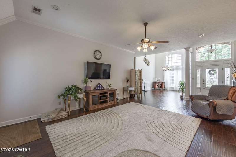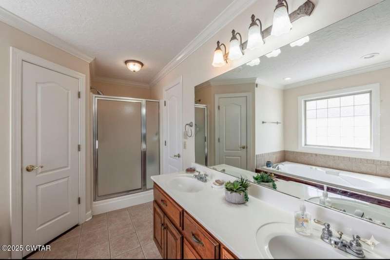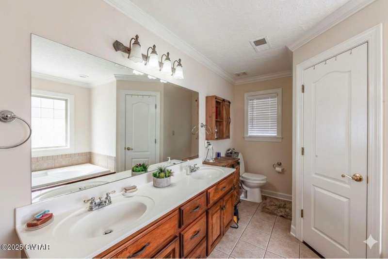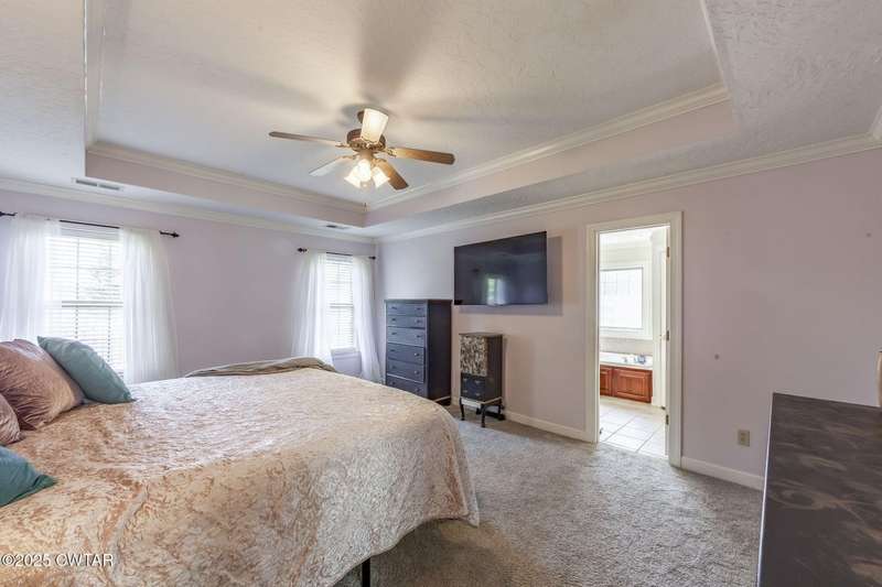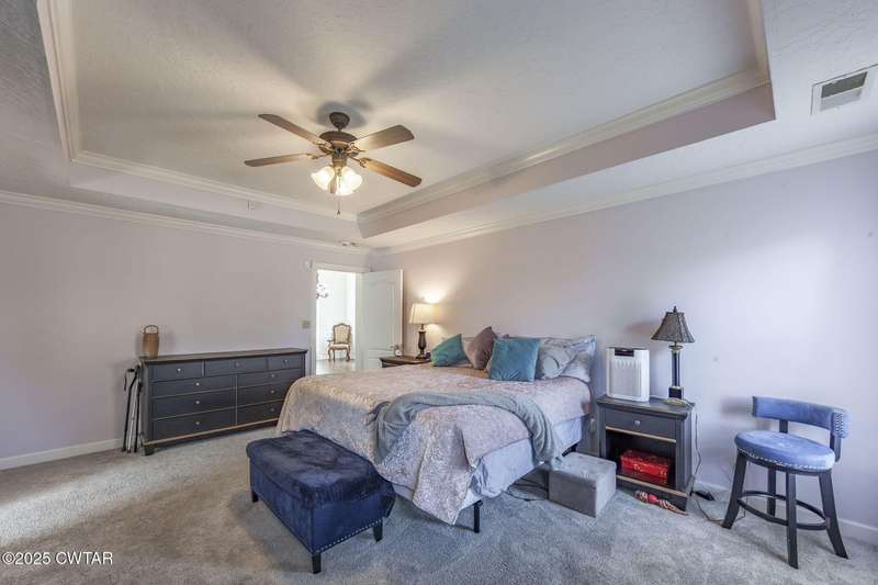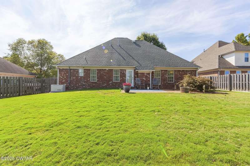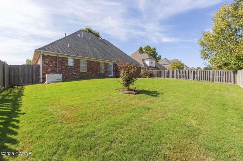 Check out this 4 bedroom 3 FULL bath home sitting on a cove. You walk into a split floorplan with formal dining and a large living room. Primary bedroom has 2 walk in closets and double sinks along with a soaking tub. Your kitchen offers all stainless steel appliances, granite counters, double oven, breakfast area, and pantry. Separate laundry room. 3 bedrooms downstairs and 1 bedroom and full bathroom upstairs. Only bedrooms have carpet and all new carpet down stairs. Walk in attic. You have a fenced in large backyard with a porch. Two car garage with a closet for extra storage space. This home comes with a full house generator as well! Security system, washer, & dryer all stay!