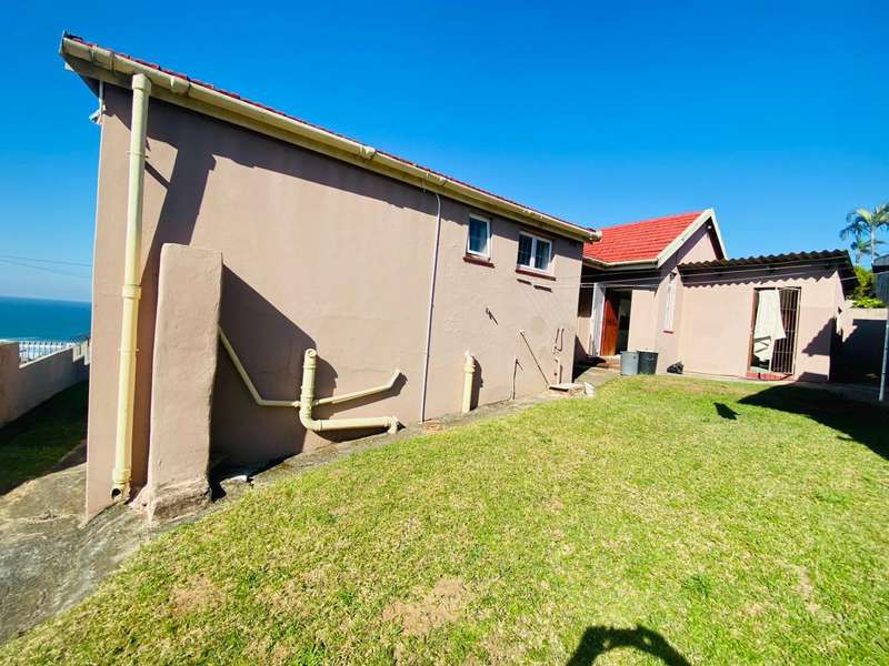 An Income generator, this stunning property has got 180 degrees sea views , it comprises of 3 bedrooms, 2 bathrooms, open plan lounge and dining room, kitchen ,built ins ,all bedrooms have got sea views from inside, 1 lock up garage. At the back its got a flatlet with 2 bedrooms , 2 bathrooms, lounge and kitchen ,plenty of space to park at the back. All windows are aluminum windows, very solid burglar guards , sliding gate with remote control.This is what youy vave been looking for a complete house in town with sea breeze.