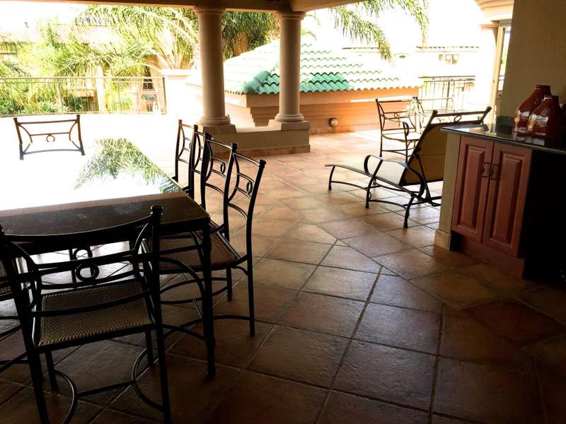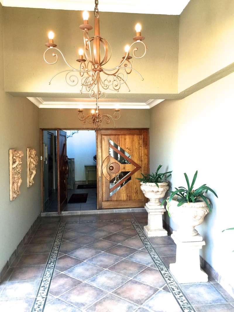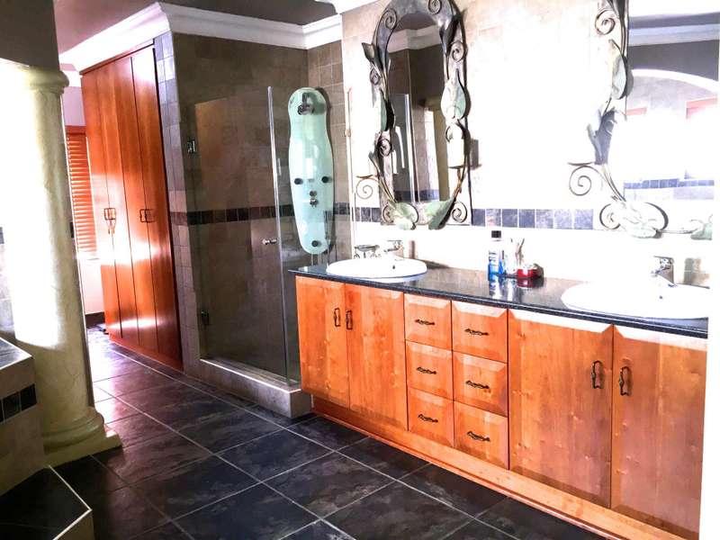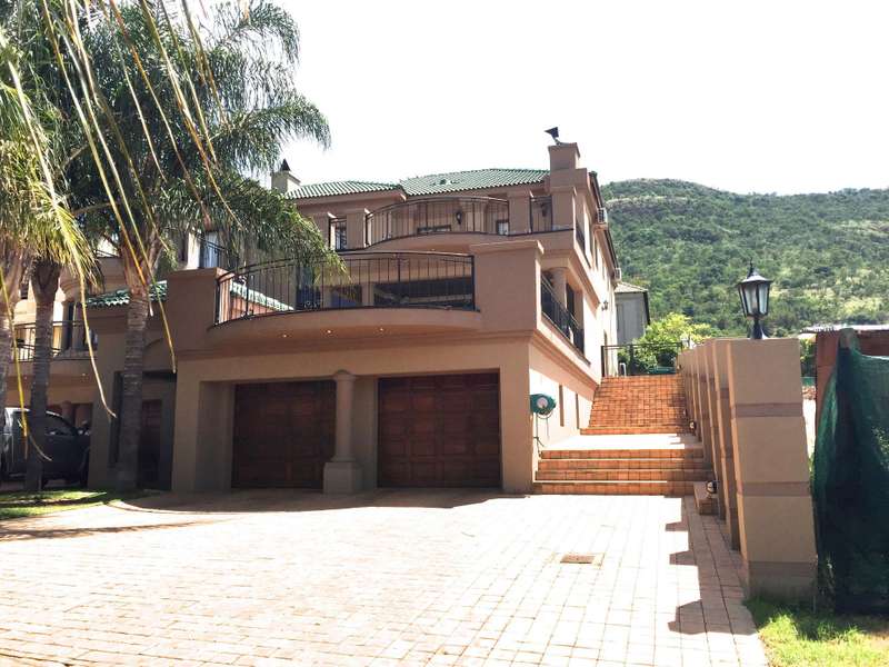 ELEGANCE AND SOPHISTICATION ARE BUT 2 WORDS TO DESCRIBE THIS LOVELY PROPERTY In the sought-after Kosmos Ridge Estate, you will find this elegant mansion. The three story building ensures panoramic views from all the rooms and large patio. Endless champagne sundowners or cocktail parties to be enjoyed here. Garages for 6 cars on the ground floor. Second floor has a warm and inviting kitchen with very large scullery and huge pantry. Open plan dining room flows towards the built-in bar and tv lounge with cleverly built-in cellar. Guest suite on this floor. Enclosed Jacuzzi with the most stunning views over the entire area. This area flows unto the 400sqm open-air patio equipped with the best braai equipment and serving facilities. On the 3rd floor, there are 3 en suite bedrooms with the master bedroom fit for a king and queen. A lounge area combines the 3 rooms together and a gym room. This is a very well conceived residence in absolutely idyllic surroundings.