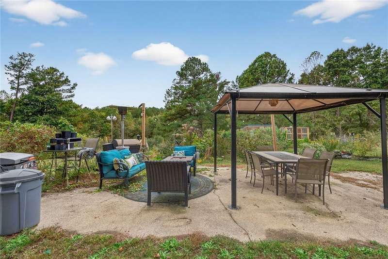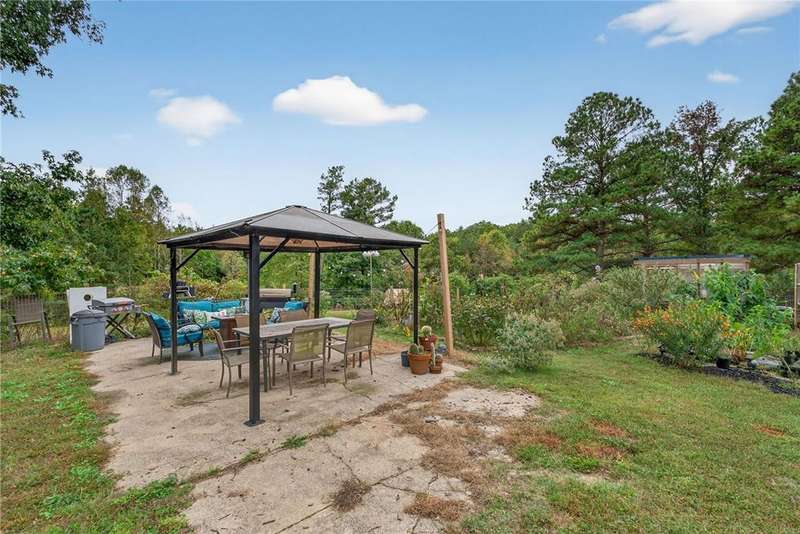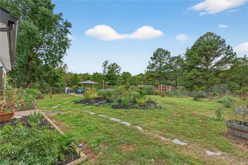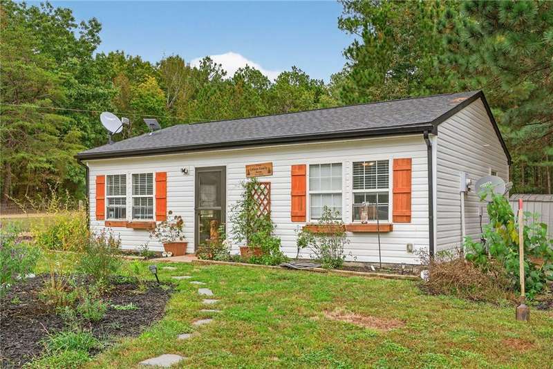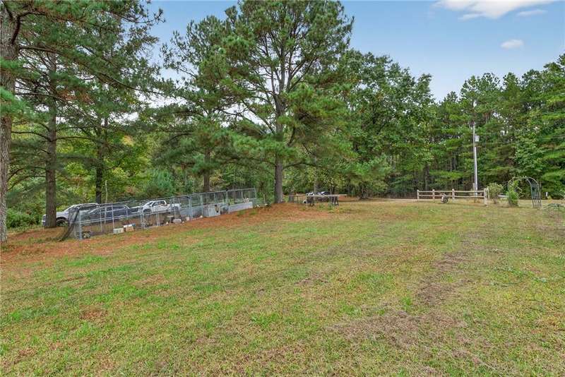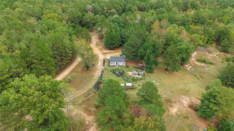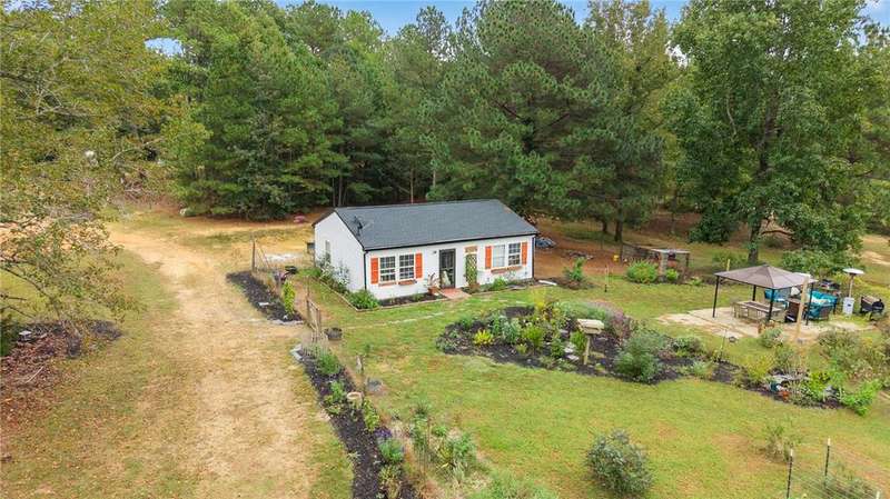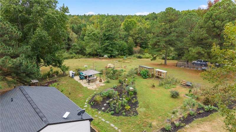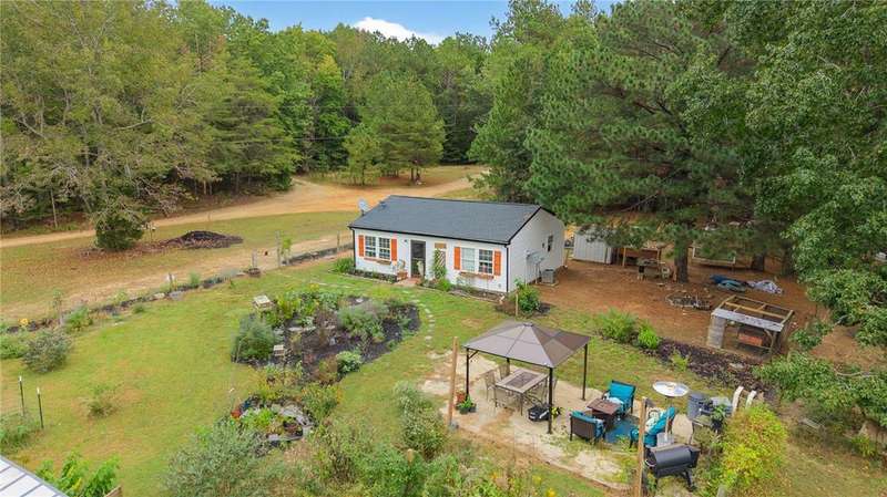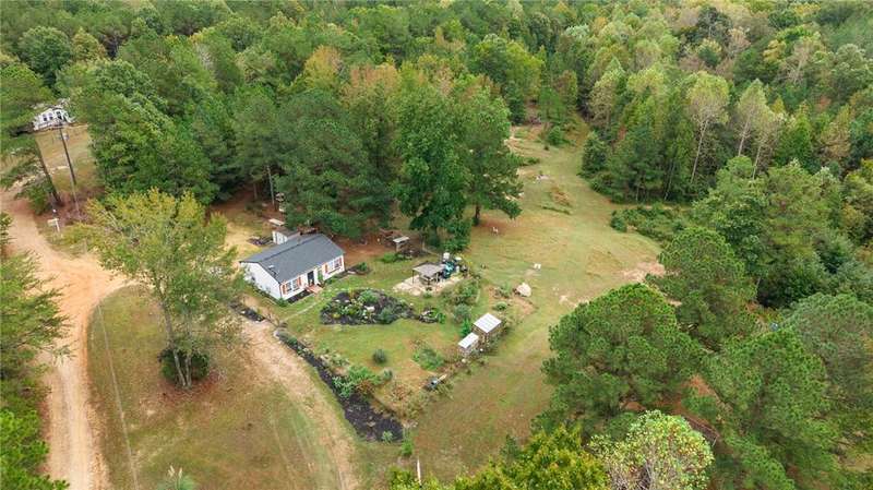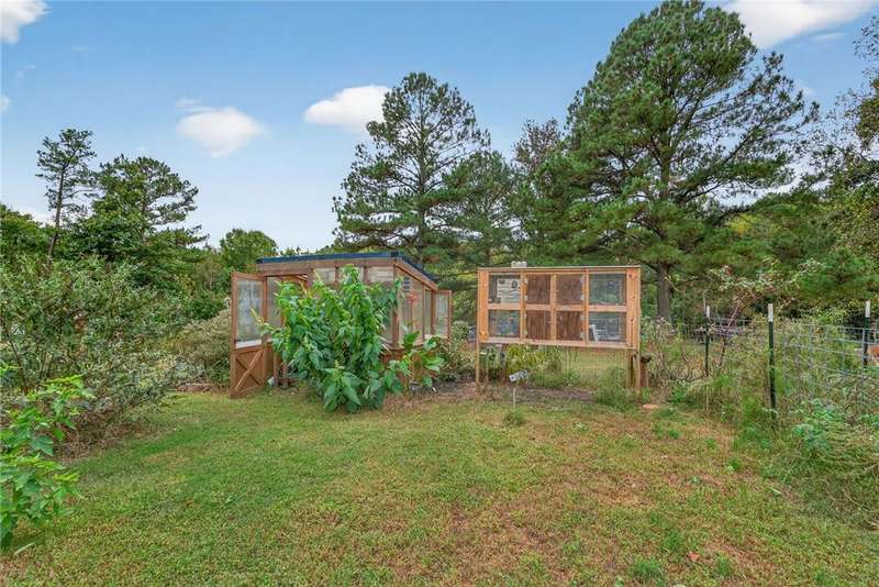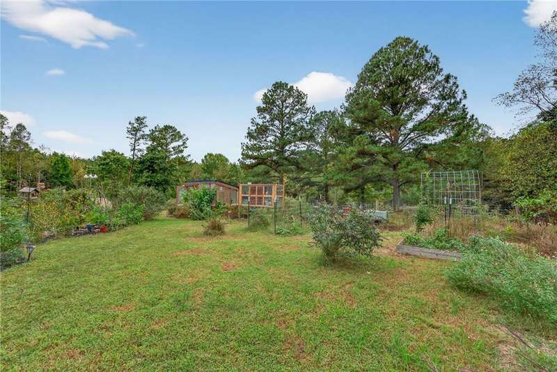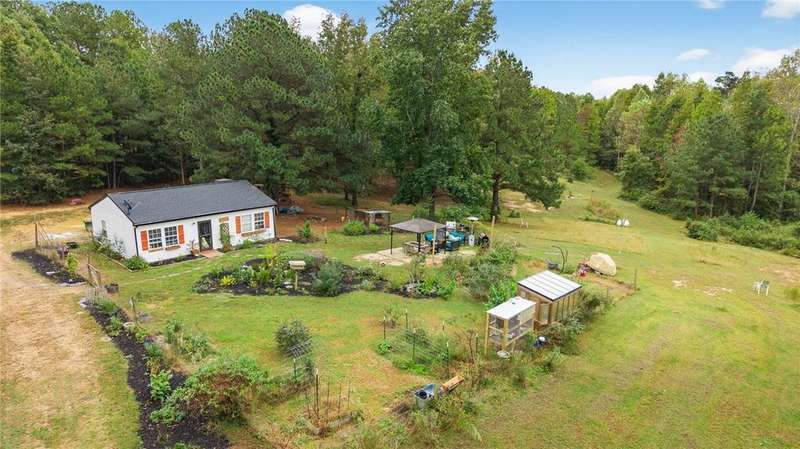 This TURN-KEY HOMESTEAD offers the perfect blend of charm, functionality, & breathtaking views. Nestled on over 8 Beautiful acres, the property features a Charming Ranch home surrounded by custom landscaping, 2 ponds w/ fountains and a waterfall, a fenced front yard, & a private patio w/ a pergola for relaxing or entertaining. Designed w/ self-sufficiency in mind, the land includes a custom pen w/ a run-in shelter for small livestock, a large chicken coop, & a brand new greenhouse. A creek runs through the property w/ the potential for a pond if the dam is repaired, while an established food plot & deer blind make it ideal for hunting or wildlife enthusiasts. The grounds also boast a young orchard w/ peach, apple, and apricot trees, blueberry bushes, & an established vegetable garden w/ raised beds & trellis. With a mixture of cleared acreage & hardwood pines that could be timbered in just a few years, plus recent upgrades Including Roof, HVAC ,Floors, Siding and much more this property is truly move-in ready. Whether you dream of starting a small farm, enjoying peaceful country living, or simply surrounding yourself w/ nature's beauty, this homestead offers endless possibilities.