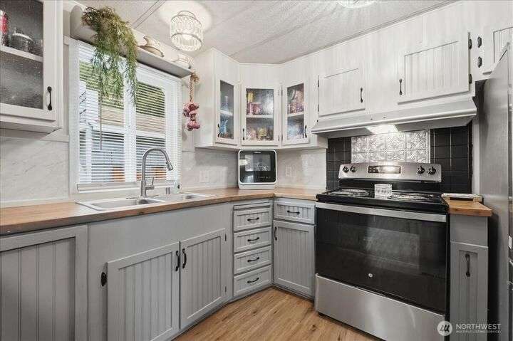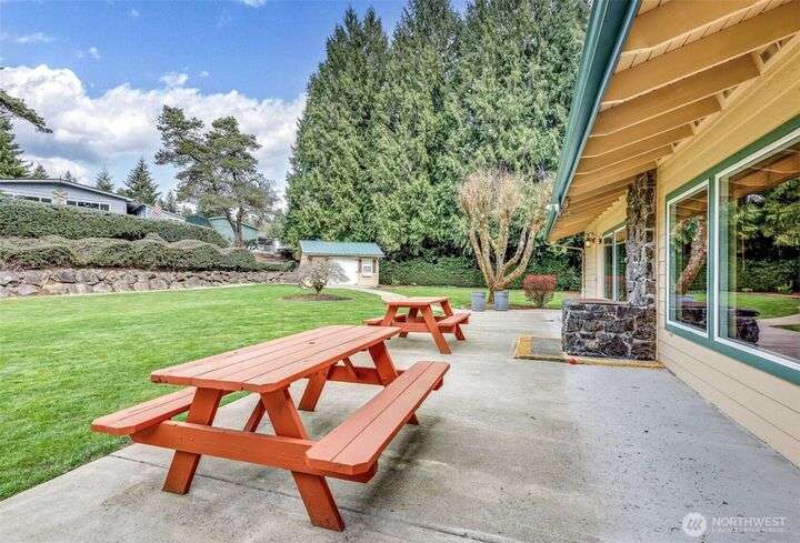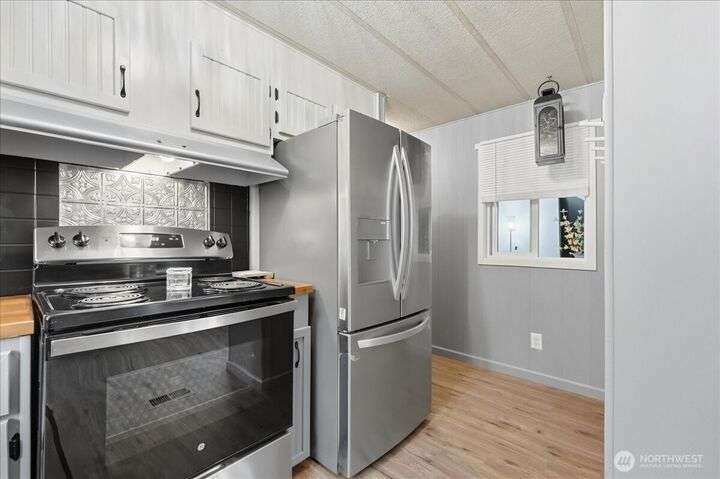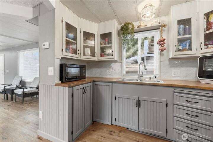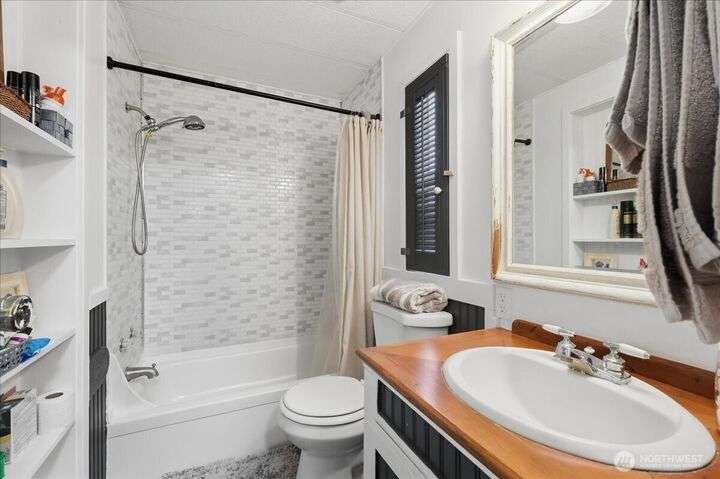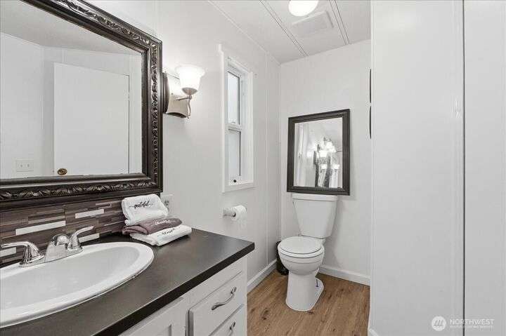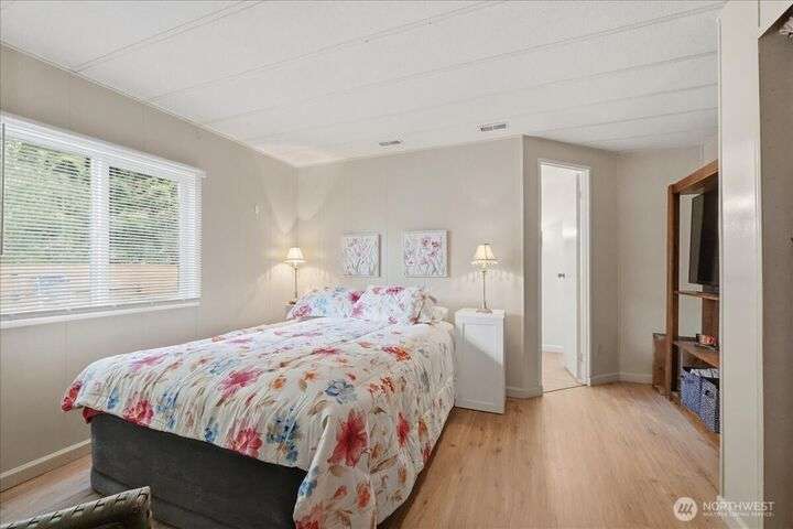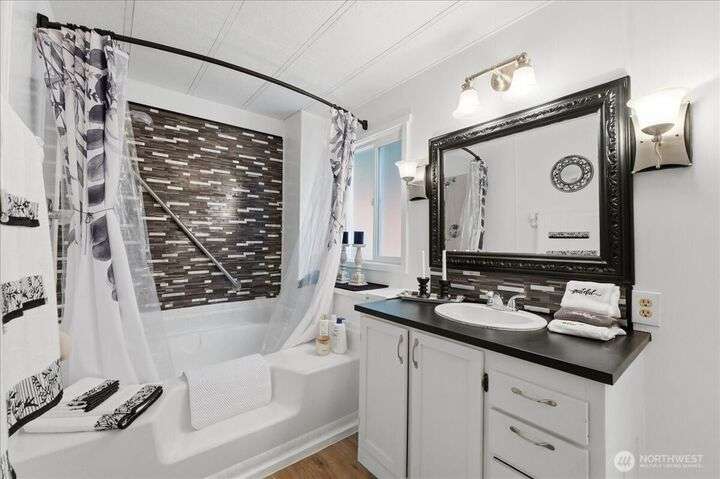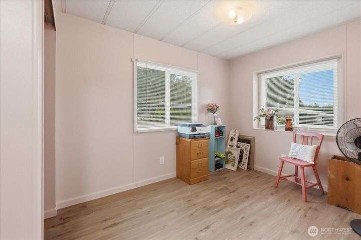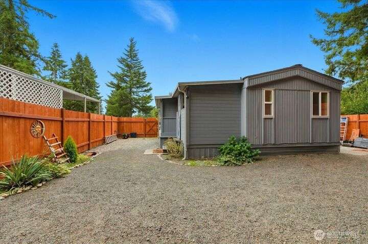 Truly a gem within Cedar Glen! Nestled in a quiet lot in The Cedar Glen 55+ Mobile Home Park, this charming home boasts a new composite roof and a fully-fenced & landscaped HUGE yard overlooking a forest of trees. The expansive entryway yields a bonus room for this inviting 2 bedroom, 2 full-bathroom home. Or, use the bonus space as a 3rd bedroom! The home has new paint, in and out, and new flooring throughout. Updated lighting and finishes make this home shine. All appliances included! A large storage shed, with electricity, sits at the end of the driveway- perfect for an office or studio space! Conveniently located close to the Highway and both downtown Poulsbo and Bainbridge Island- this quiet, updated unit, has it all. Tour today!