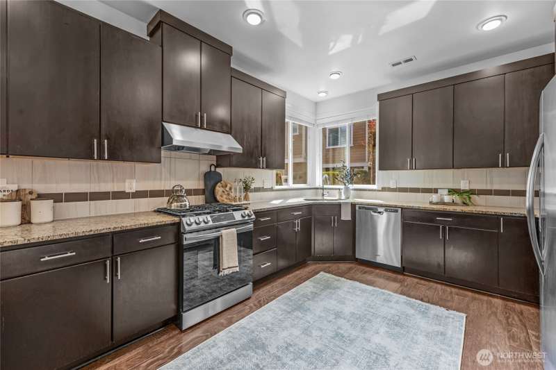 Live the lifestyle you’ve been waiting for in this Toll Brothers townhome at Kempin Meadows, where luxury meets everyday convenience. Sunlight fills the open living space with hardwood floors and a custom fireplace. The chef’s kitchen with granite counters, gas cooktop, and stainless steel appliances is ideal for gatherings. Upstairs has all new plush cozy carpet. The primary suite offers a serene retreat with a spa-like 5-piece bathroom and walk-in closet. A spacious garage with extra storage keeps life organized. Step outside and enjoy a private patio, community playgrounds and parks, top-rated schools, and nearby experiences from Woodinville Wine Country to South 47 Farm—all minutes from Microsoft, Google, Meta and Redmond Town Center.