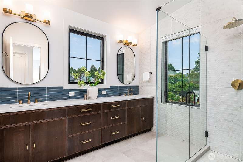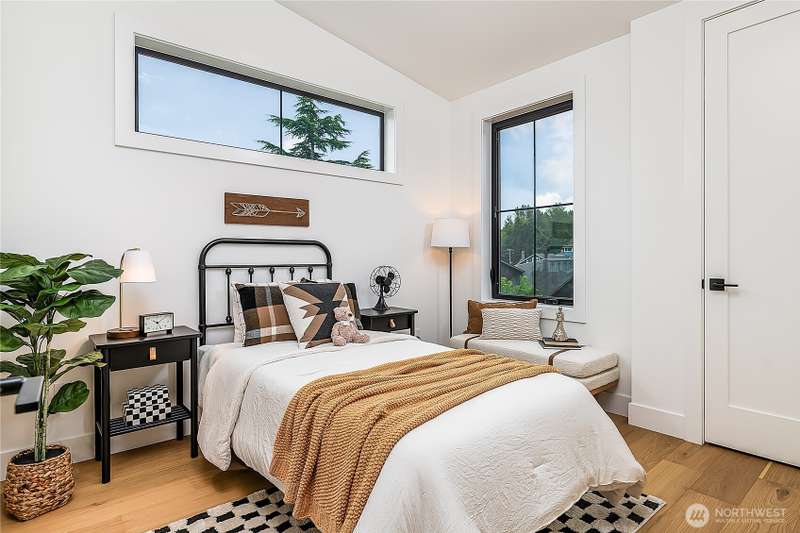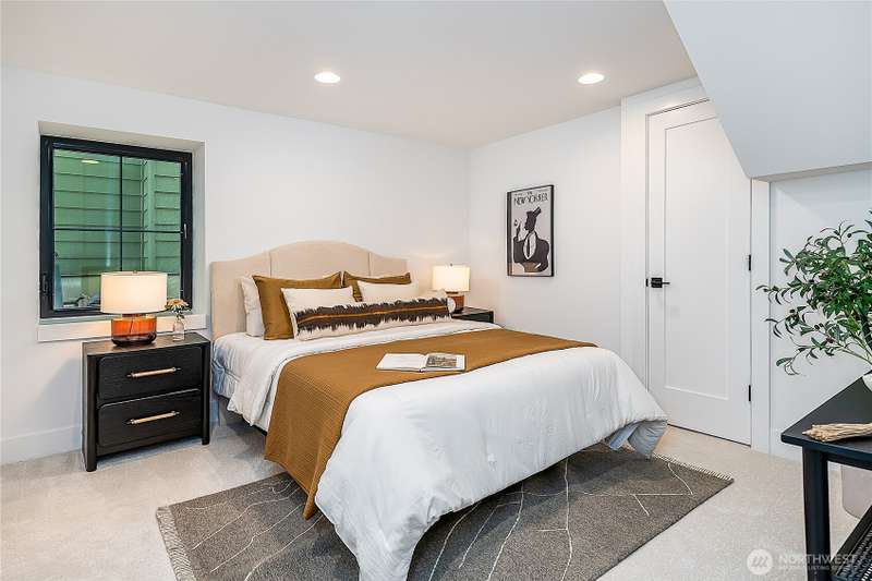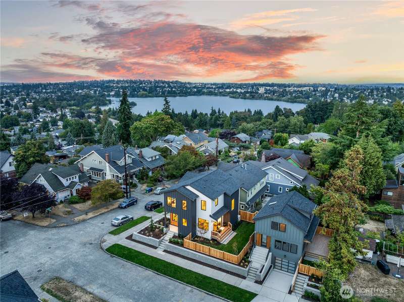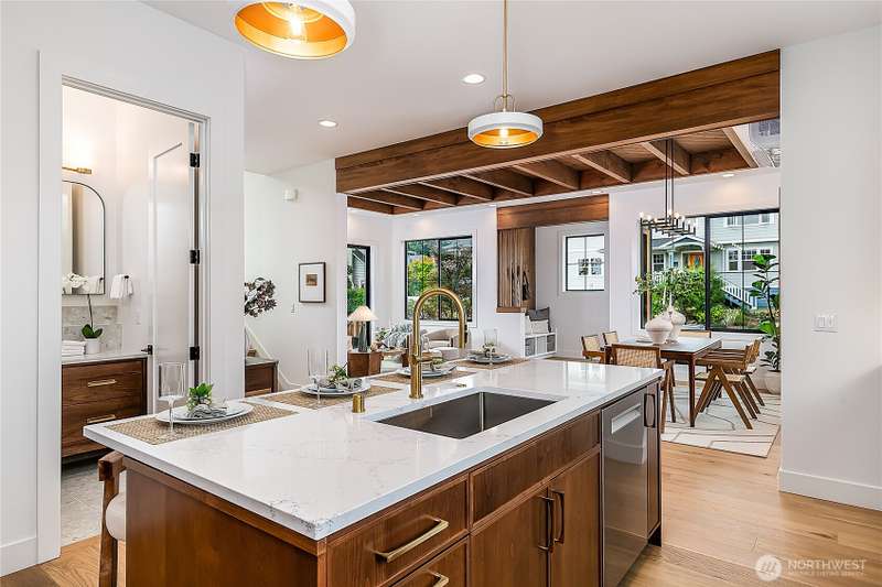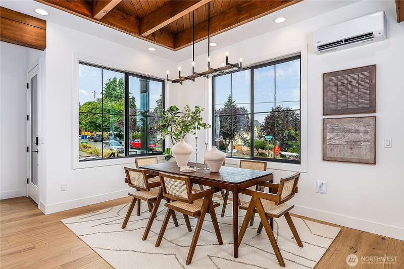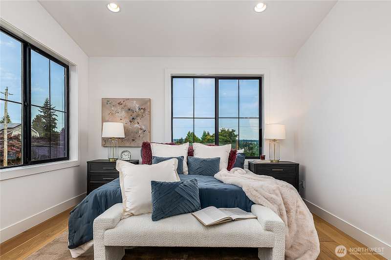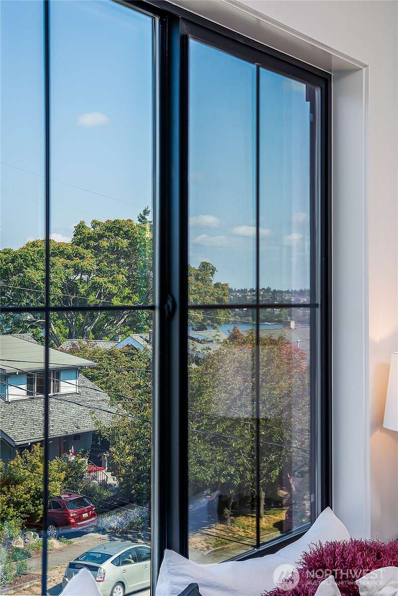 Stunning 5bd/4ba home in Green Lake/Phinney Ridge! This 2,300+ SF home sits on a quiet corner lot w/ standout curb appeal. Main floor features dining/living room, office/bed, full bath, & a stunning kitchen w/ Bosch appliances, quartz island, marble backsplash & wood range hood. Sliding doors open to a deck & fenced yard- perfect for indoor-outdoor living! Upstairs, a large family room (or bedroom) has lake views, & a primary suite offers spa bath, WIC & more views! Daylight lower level has a bed, bath, laundry, & garage. Other features include wide-plank hardwoods, 10’ open-joist ceilings, custom finishes, cat 6 network wiring, & efficient HVAC. Just steps to Woodland Park Zoo & minutes to Green Lake, Fremont, Ballard, & top schools.