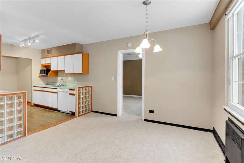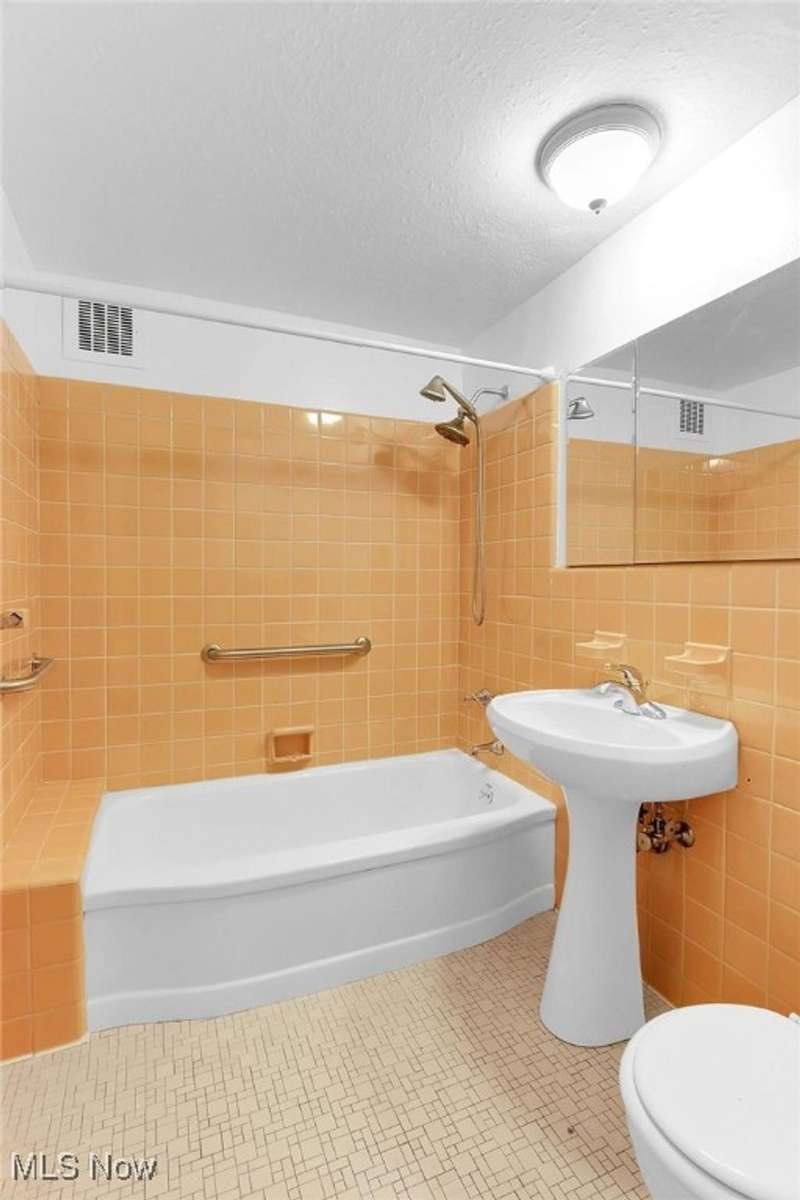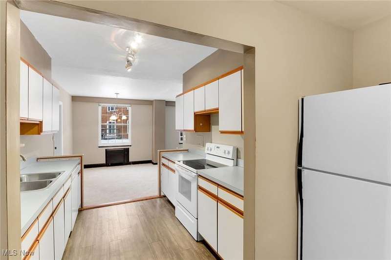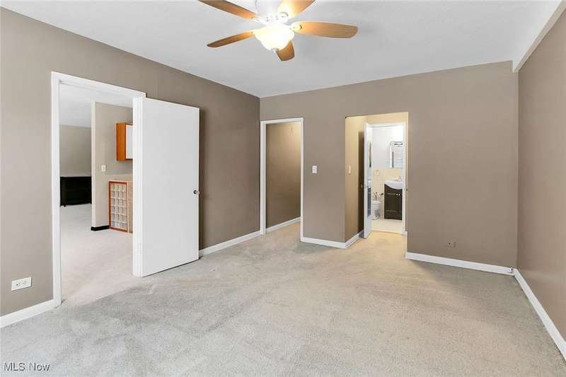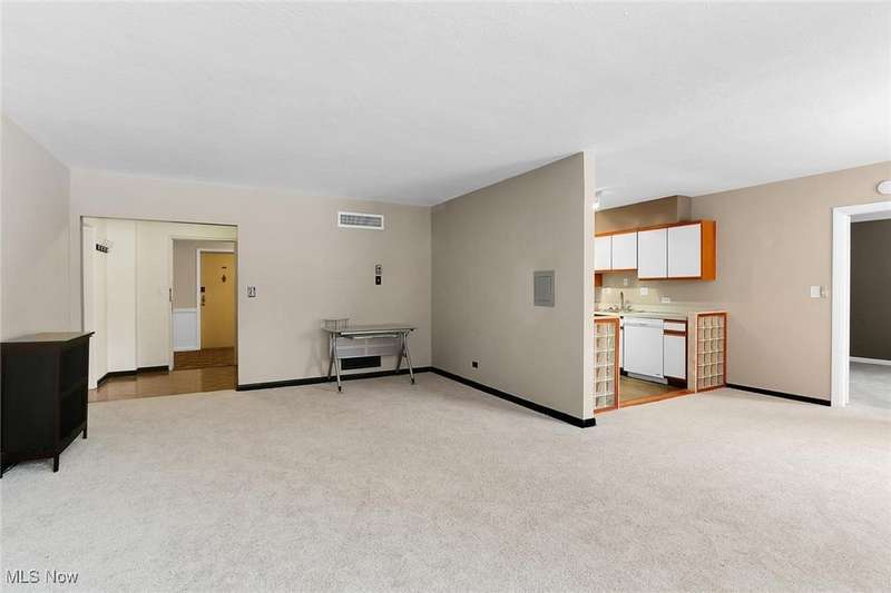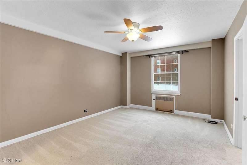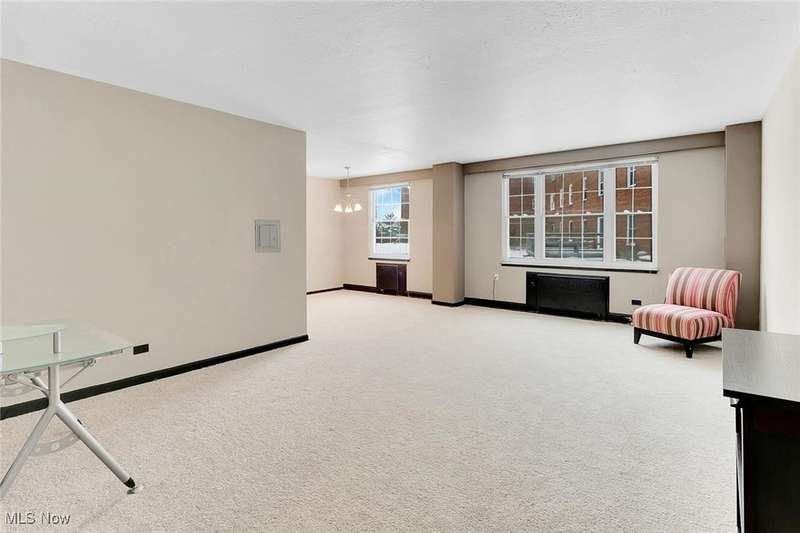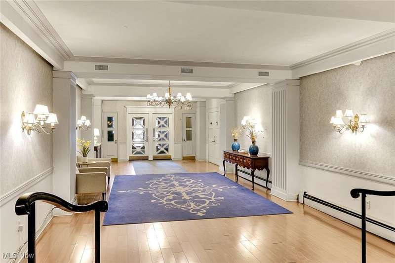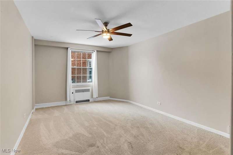 Centrally located condo is spacious as well as convenient! Enter into the foyer with parquet floors, built-in bookshelves from floor to ceiling that maximizes your storage space. The living room is spacious, overlooks green space outside, with younger paint and carpeting, many possible furniture configurations possible. The living room flows into the dining area and the galley style kitchen is adjacent to the dining area. The kitchen includes all appliances. There is space for a small breakfast table at the end of the kitchen, and also a pantry. The kitchen has younger vinyl flooring, and fresh paint. The primary bedroom is located near the dining area, and measures 15 x 11. The room is carpeted and has a ceiling fan and a walk-in closet. There is an en-suite bath with vanity and a walk-in shower. At the other end of the unit is the second bedroom (15 x 11), also with ceiling fan and walk-in closet. There is a second bathroom with a tub/shower combination in the hallway that services the second bedroom. Abundant closets make this unit very practical. Ideal location near University Circle, with award-winning hospitals, Cleveland's cultural destinations (Cleveland Orchestra, museums), restaurants, shops.