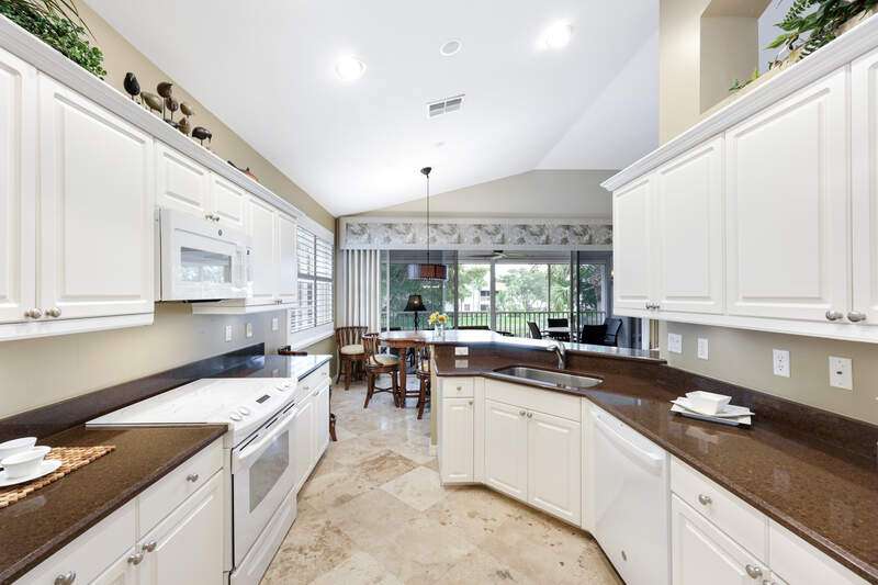 Welcome to exceptional living in the vibrant gated community of Bonita Bay. This luxurious residence offers views of the lake and the nature that enjoys it. This stylish corner, second-floor condo with volume ceilings, three bedrooms, and two bathrooms boasts marble floors that enhance the spacious great room design and relaxed dining room. The residence also offers a remodeled kitchen, bathrooms, plantation shutters, and Turnkey-Furnished. Enjoy peace of mind with newer installed A/C, Liftmaster garage door opener, Samsun TV, refrigerator, dishwasher, and microwave, all installed between 2022 and 2025. Also included is an attached one-car garage, a neighborhood swimming pool, spa, fitness room, and pavilion. The many amenities of Bonita Bay include tennis, pickleball, bocce, kayaking, canoeing, walking trails, playgrounds, a private beach club, golf courses and club dining, and a full-service marina. Located conveniently near Coconut Point Mall, The Promenade, RSW International Airport, theaters, and lively downtown Bonita Springs, this residence offers tranquility and city life's excitement. Come experience the ultimate blend of luxury and leisure in this remarkable property.