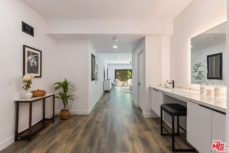 Experience a rare true gem in prime West Hollywood is 1210 N Kings Rd unit 101. A designer-crafted 2,500 sq ft showplace with an incredible oversized approximately 433 sq ft outdoor terrace. Every detail of this residence has been thoughtfully curated for style, comfort, and functionality. Flooded with natural light, the indoor outdoor open-concept layout flows effortlessly perfect for gatherings or evening entertaining. Warm tone floors, and designer-selected fixtures create a sophisticated vibe throughout. The living room features a sleek gas fireplace, a built-in wet bar, and expansive sliders that blur the line between indoor and outdoor living. The adjacent gourmet kitchen boasts custom cabinetry, premium stainless steel appliances, and ample counter space for a home chef. The primary suite is a serene retreat with a generous separate his and hers walk-in closet. Enjoy a spa-inspired ensuite bathroom complete with an oversized tub and glass-enclosed shower. Thoughtfully positioned within the building for maximum privacy, this unit offers two dedicated parking spaces. You're just steps from shopping, a diverse array of eatery, vibrant nightlife, and much more.