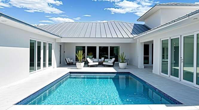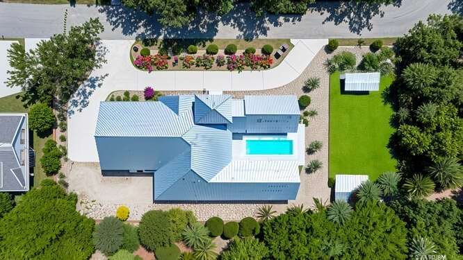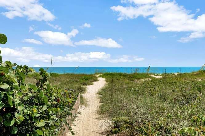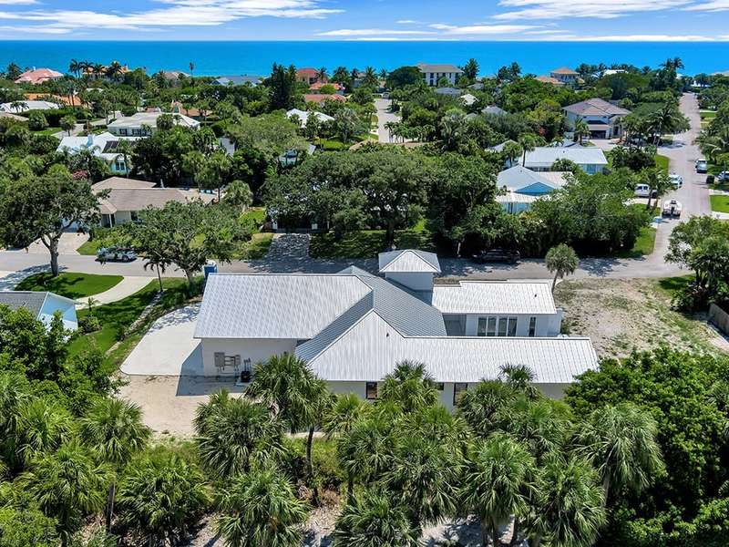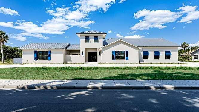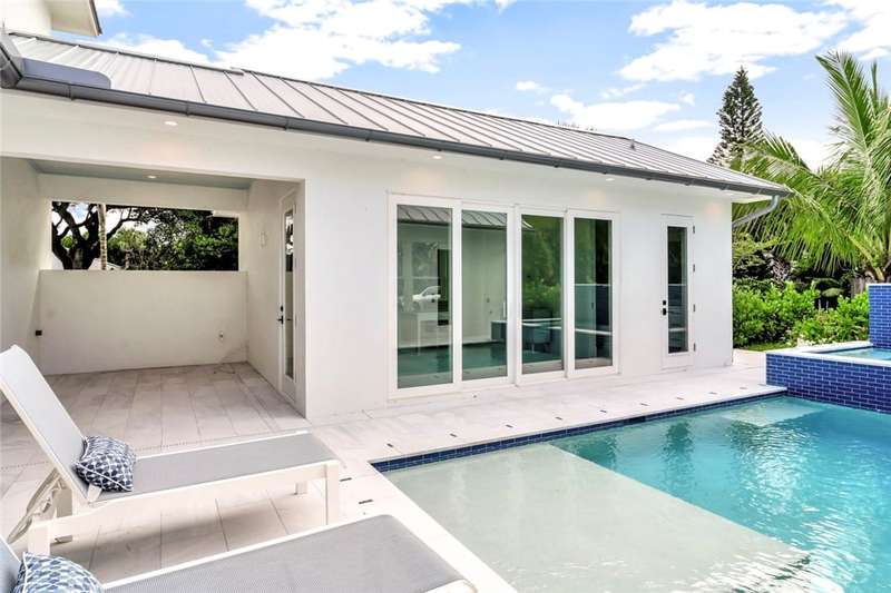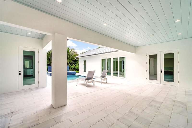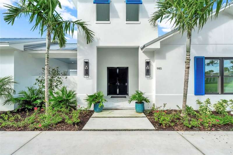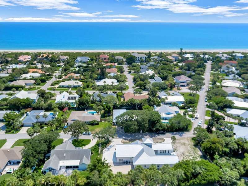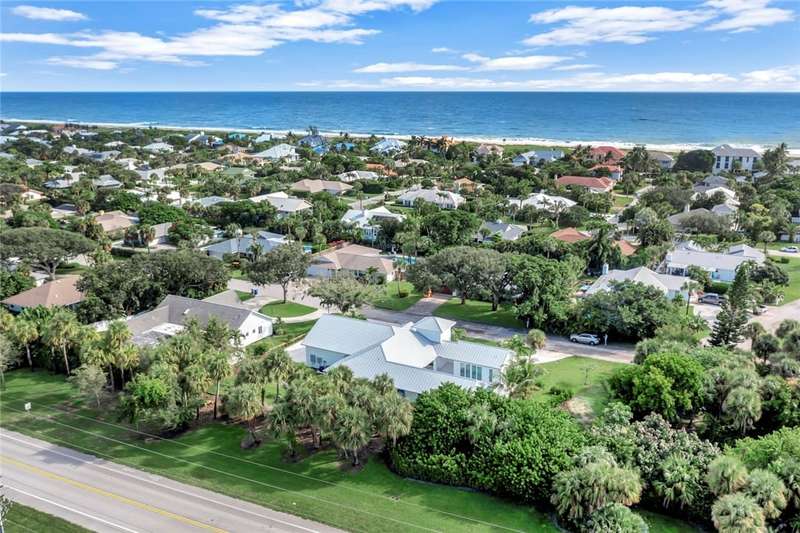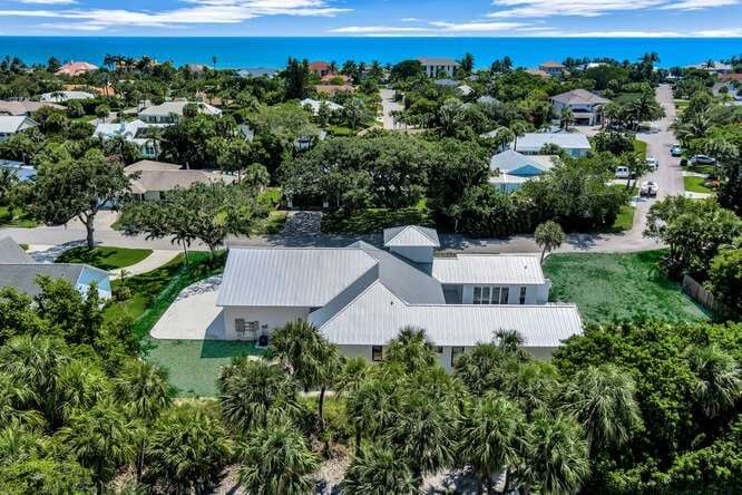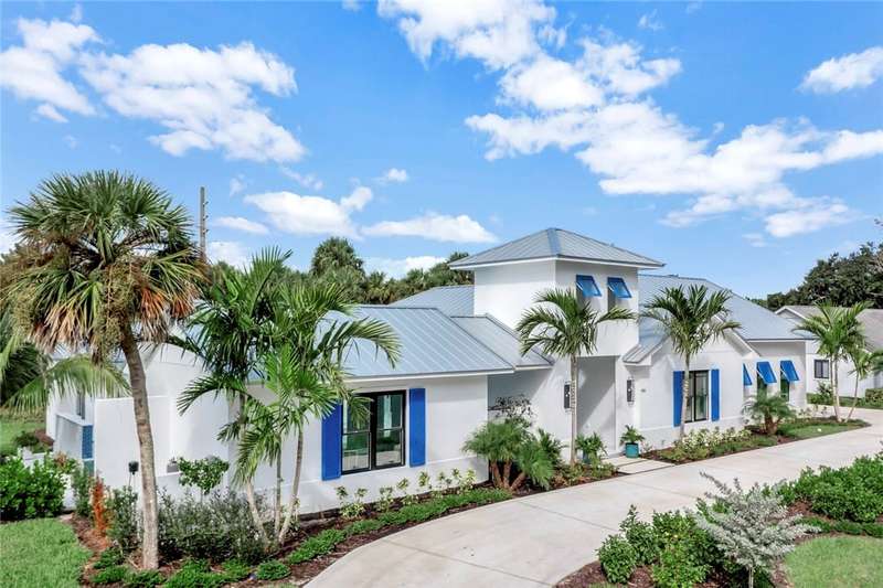 East of A1A & steps from Veros best beach. 3BR/3.5BA. 2025 CBK constr, metal roof & impact windows situated on .4 acre lot in gated south beach community. Walls of glass open home to outdoor oasis. Covered lanai & summer kitchen extend living area outside. Sun shines year-round on south exp heated saltwater pool w/sunshelf & spa. Light-filled, open plan designed for effortless living. Premium appointments - 10+ ceilings, tile flrs, quartz counters, large island kitchen & walk-in pantry. Private casita w/BR&BA. Bonus rm over 3CarGar possible 4thBR. Low HOA fee. Size are approx/subj to error.