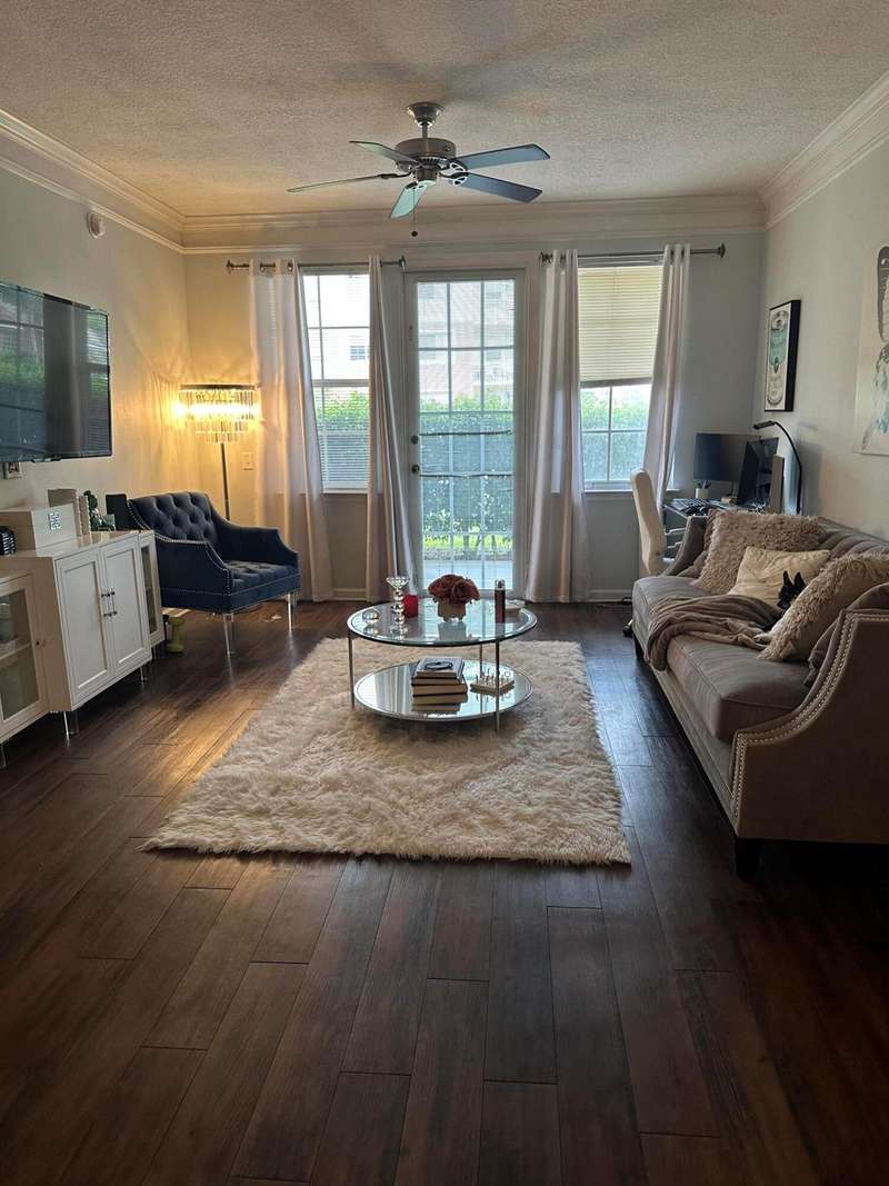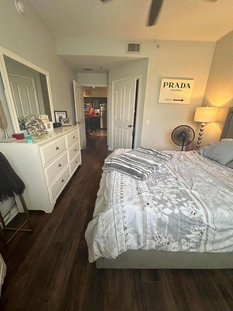 Simply Stunning!! Sought after 1 bedroom 1 bath patio model on the first floor in Resort Style Mezzano. Property features a bright and open floor plan, volume 9 ft ceilings, gorgeous renovated kitchen with stainless appliances and corian counter tops, wood like flooring , updated vanity in bathroom, garden tub, large walk in closets and property is located just steps to the pool and all of the amenities. Mezzano is a quaint and gated community with just nine buildings. Character Property at It's Finest!!! Rent includes water, sewer and trash!! Hurryyyy!!