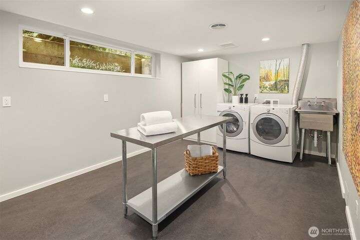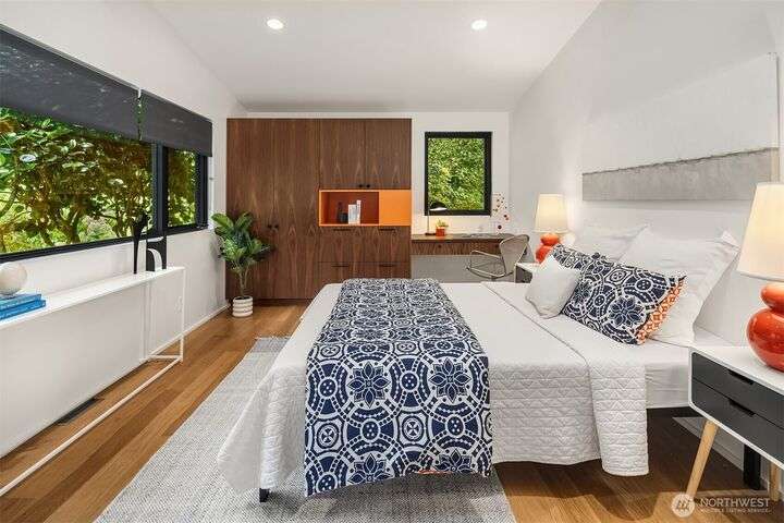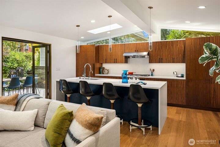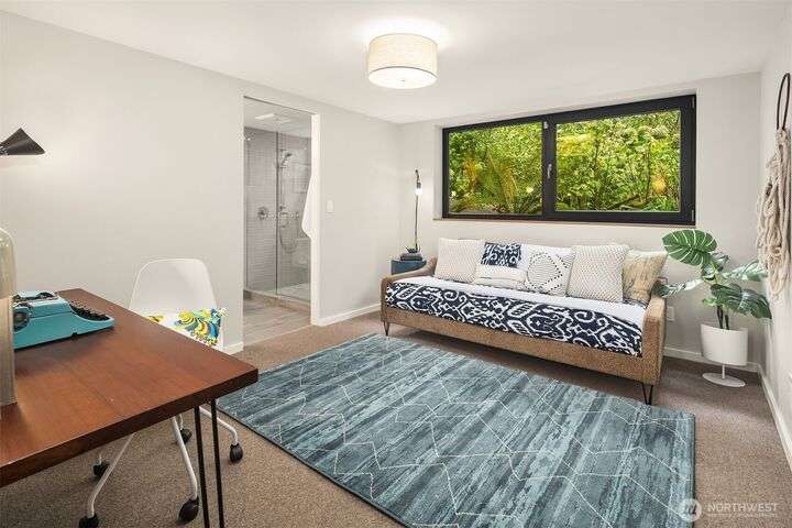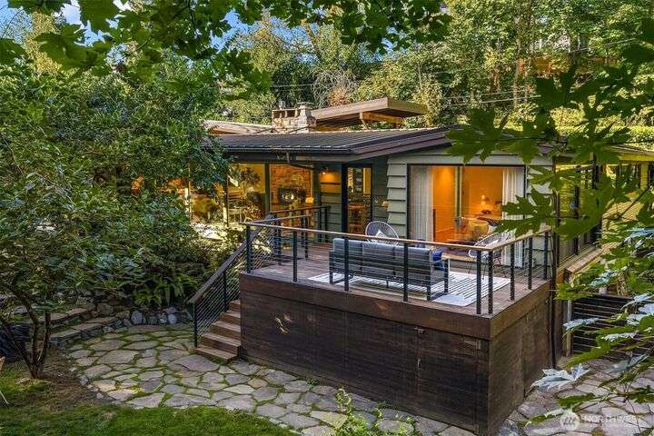 Nestled along a lush greenbelt between Magnolia Blvd and Perkins Lane, this Palm Springs–inspired midcentury modern has been reimagined with a studs out remodel in 2019. Inside, every detail is thoughtfully designed—from custom cabinetry with hidden coffee station and integrated charging ports to a dramatic wall of floor-to-ceiling windows that seamlessly connect interior living spaces to lush outdoor gardens with year-round blooming interest. Outside, bird enthusiasts will enjoy visits from the eagles, owls and Cooper hawks before retreating into the spa-like primary suite and sounds of the babbling brook just outside. BLISS! Just down the street, enjoy Elliott Bay beach walks and waterfront exploration. Come visit this magical setting.