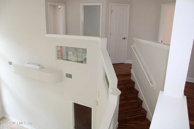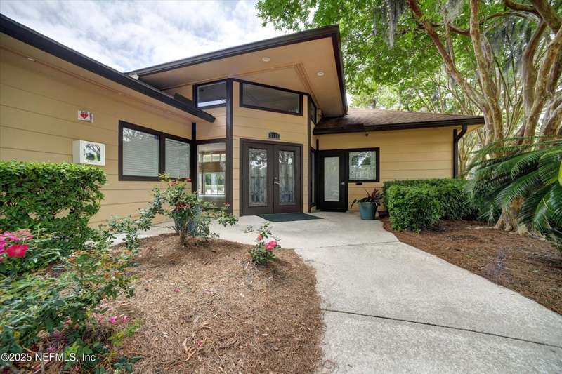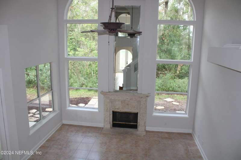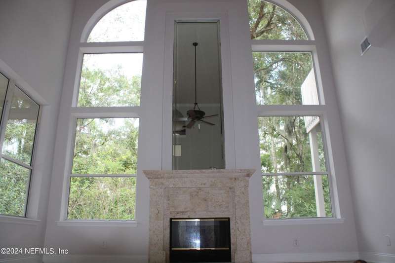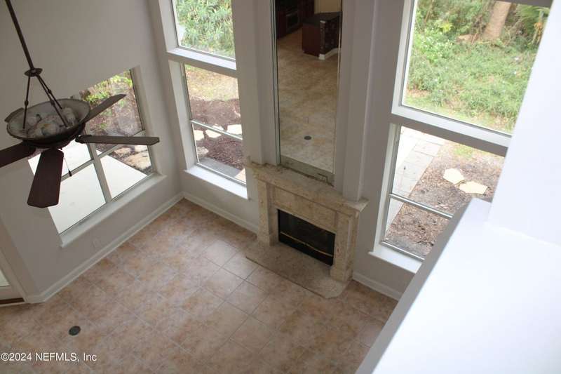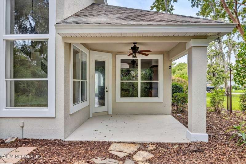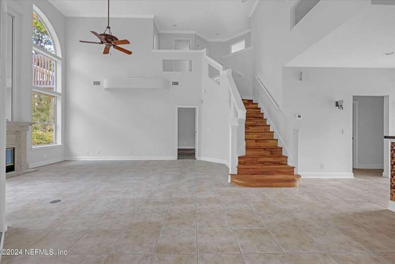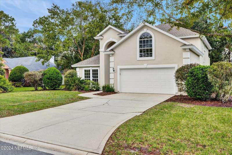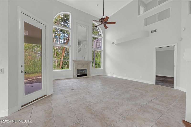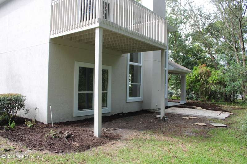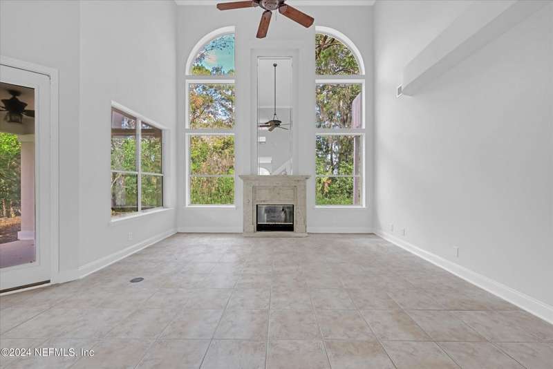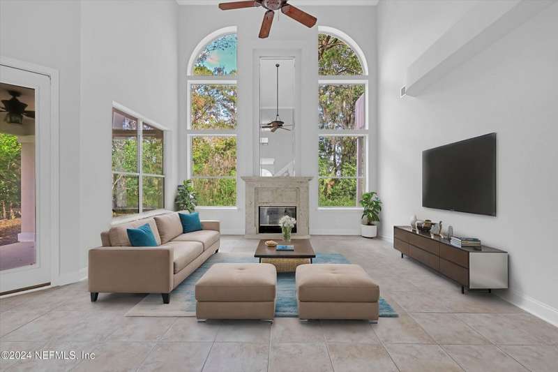 Favorite ''Savannah'' floor plan! Located in THE WOODS community w/pool, Tennis, sports fields and more! Bike and strolling on pathways that wind throughout the community, 1st class shopping is just out sides the Gates. 3 short miles to ocean & delightful beach villages. Home features sunny and bright living area w/ soaring ceiling. Dramatic Coquina Shell-2 story fireplace. Covered Patio overlooks woodsy, private back. 1st floor Primary Suite, Primary bath w/soaking tub and separate walk-in shower. Unique wood flooring through-out 2nd floor. Bedroom 2 has a large balcony, Bedroom 4th is spacious suite w/ private bath. In addition to the 4 bdrms, 5th room uses: den, play room, private guest room, office. Roof installed in 2021, New HVAC units August 2024. Oversized 2 car garage.