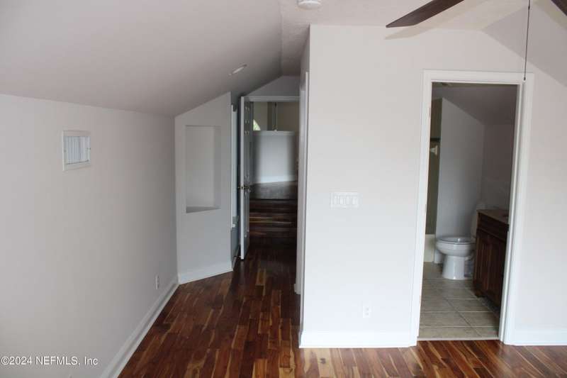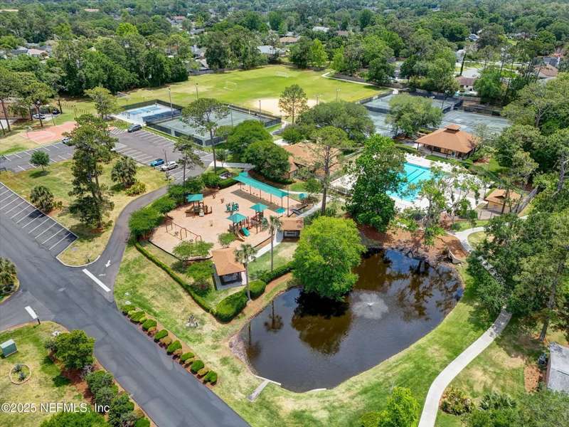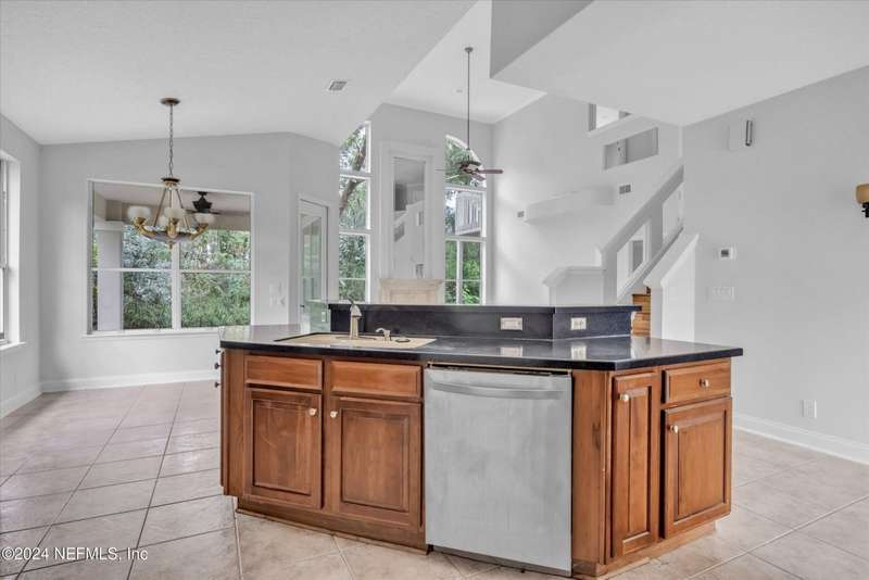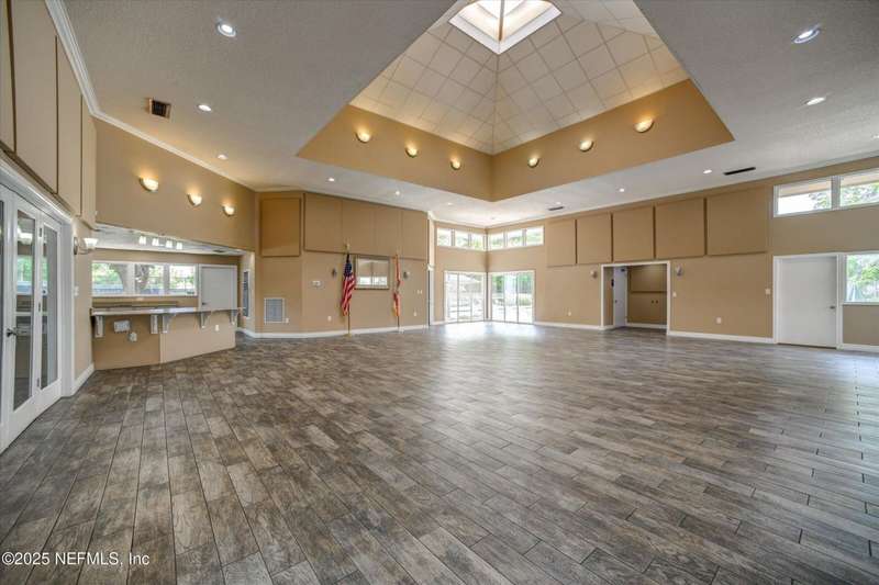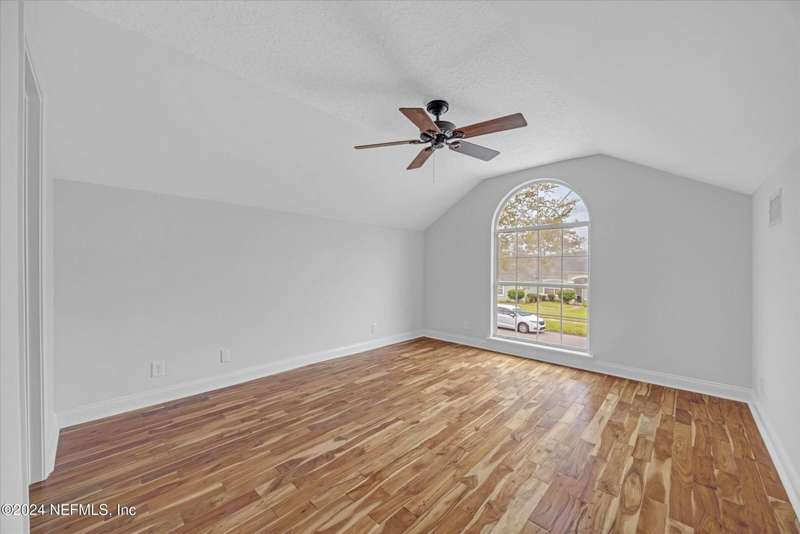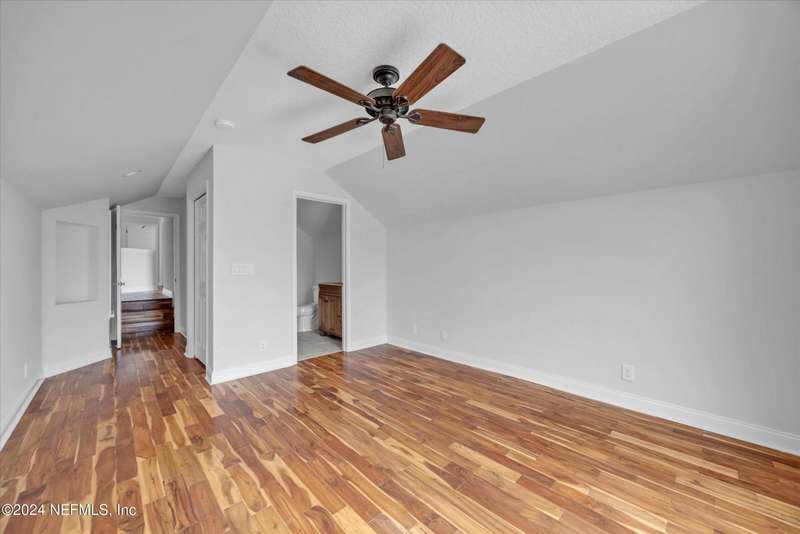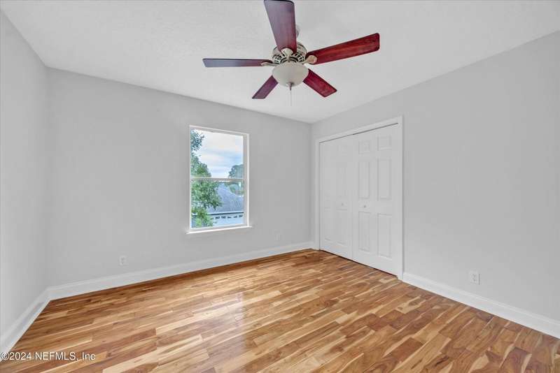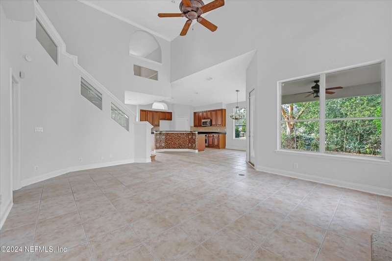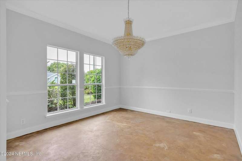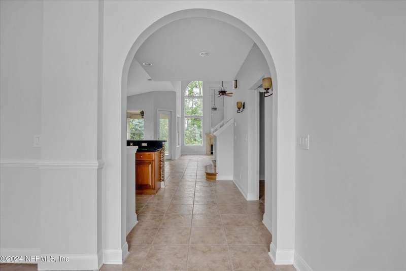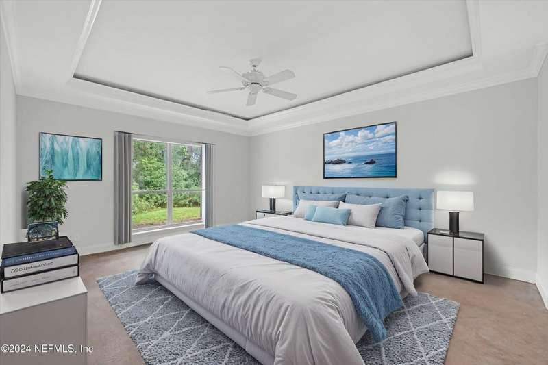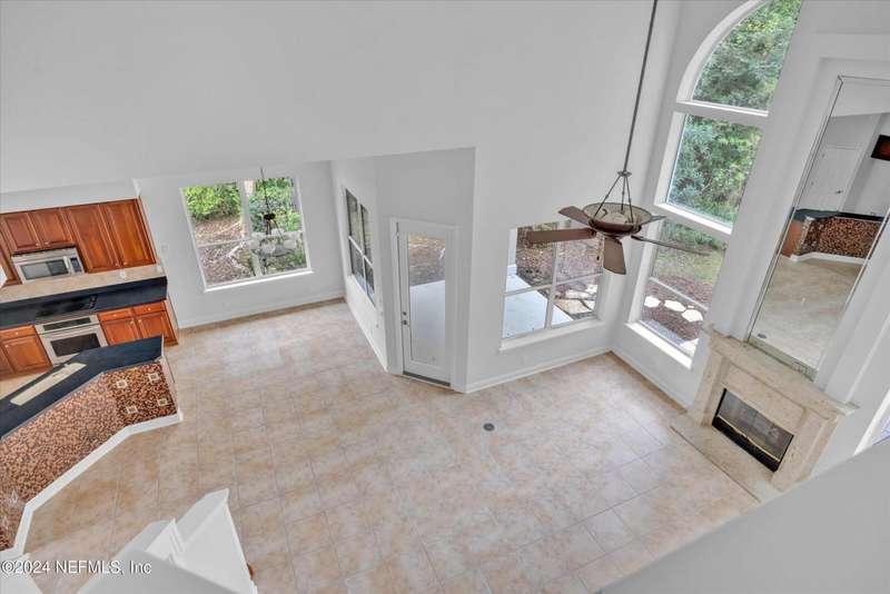 Favorite ''Savannah'' floor plan! Located in THE WOODS community w/pool, Tennis, sports fields and more! Bike and strolling on pathways that wind throughout the community, 1st class shopping is just out sides the Gates. 3 short miles to ocean & delightful beach villages. Home features sunny and bright living area w/ soaring ceiling. Dramatic Coquina Shell-2 story fireplace. Covered Patio overlooks woodsy, private back. 1st floor Primary Suite, Primary bath w/soaking tub and separate walk-in shower. Unique wood flooring through-out 2nd floor. Bedroom 2 has a large balcony, Bedroom 4th is spacious suite w/ private bath. In addition to the 4 bdrms, 5th room uses: den, play room, private guest room, office. Roof installed in 2021, New HVAC units August 2024. Oversized 2 car garage.