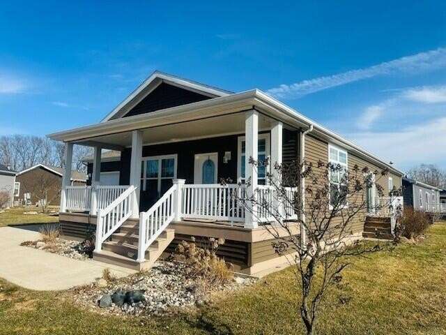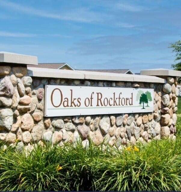 Welcome to the Beautiful 55 and over Community in the Oaks of Rockford. This home is handicap accessible, with a ramp in the garage and immediate occupancy-So you can get moved in and enjoy the the holidays in your new home. These are not just your ordinary manufactured homes; They are a cut above the rest. They come with tray ceilings and moldings, an open floor plan with a spacious kitchen and cabinets galore. The primary bedroom has a walk-in closet and a walk-in shower. The second bathroom has a tub and a shower. New patio door. If you want a sense of community there is always an activity taken place in the beautiful club house, which is cozy in the winter with their dual Stone fireplaces and the resort-like pool in the summertime. Golf cart and pet friendly. Buyer pays a 6% sales tax and a 90.00 title transfer fee that goes to Secretary of State. 350.00 Closing fee. Buyer to verify Sqft. This is a Pine model, made by Skyline