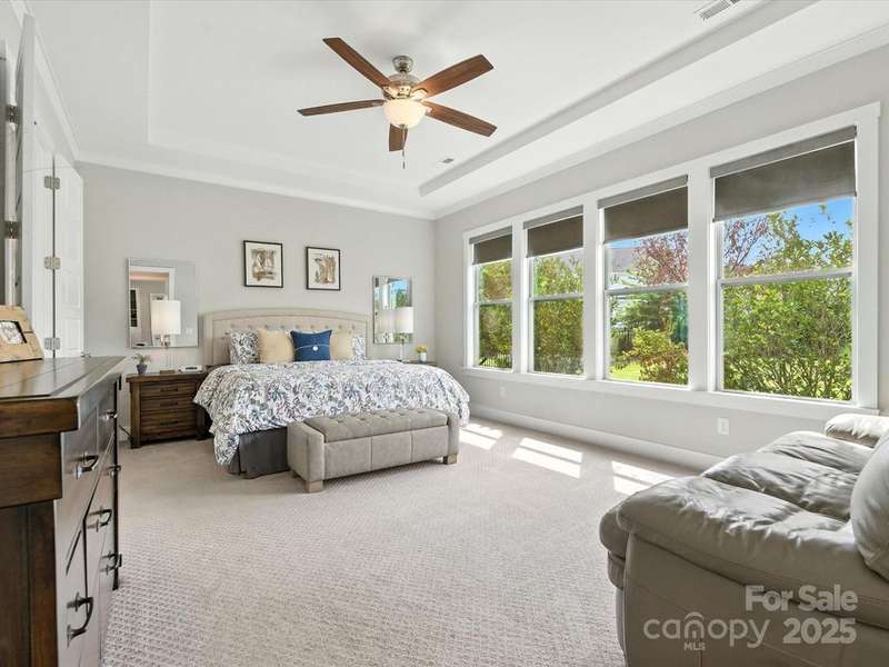 Welcome to your dream ranch home, where luxury meets comfort in this stunning home that shows like a model. This immaculate residence features a finished three-car garage, complete with sleek epoxy floors and one heated and cooled bay, perfect for your vehicles or hobbies.Step inside to discover a beautifully designed interior highlighted by custom cabinetry and closet systems, coffered ceilings, crown molding, raised panels, and power window shades that add an extra touch of elegance. The spacious screened porch offers a serene retreat, overlooking a meticulously landscaped, fenced yard equipped with an efficient irrigation system. Enjoy the added benefit of an adjacent common area, providing extra space and privacy between you and your neighbors.With its inviting covered front porch and an array of exceptional features, this home is truly a gem. Don't miss out?call now to schedule your private showing today! This stunning property won't last long!