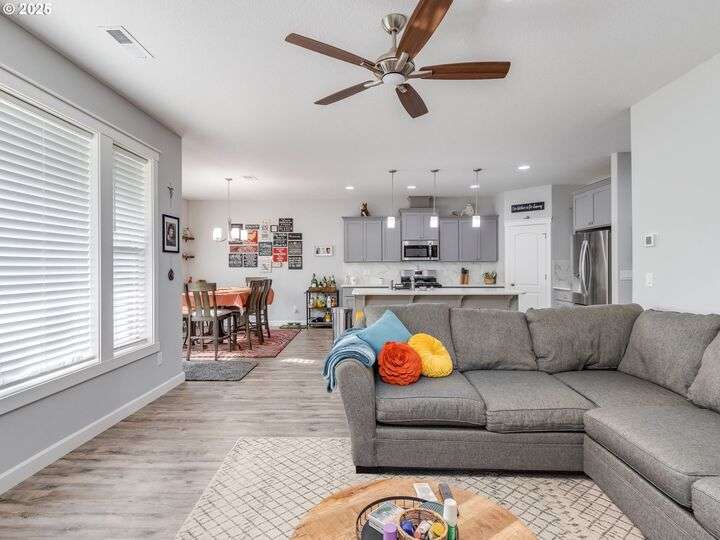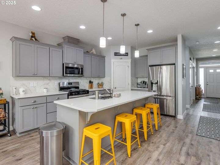 Truly move-in ready, this home includes thousands of dollars in upgrades already finished, unlike new builds that require costly add-ons. Such as an extended finished patio, stainless steel refrigerator, washer/dryer, mounted TV, and a fully landscaped, fenced yard. Welcome to this beautifully designed corner lot home in a desirable neighborhood, offering a great room, versatile den/office, and a chef-inspired kitchen with quartz counters, a large island, walk-in pantry, stainless steel appliances, and an eating bar. Upstairs you’ll find four spacious bedrooms plus a flexible loft perfect for a second living area, playroom, or study, while thoughtful details like a built in coat rack with bench/storage and a 3-car tandem garage add everyday convenience. This turn-key property is an incredible opportunity you don’t want to miss! Call for details, Seller concessions offered.
