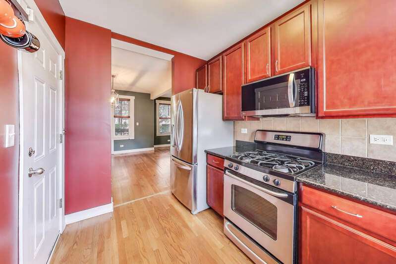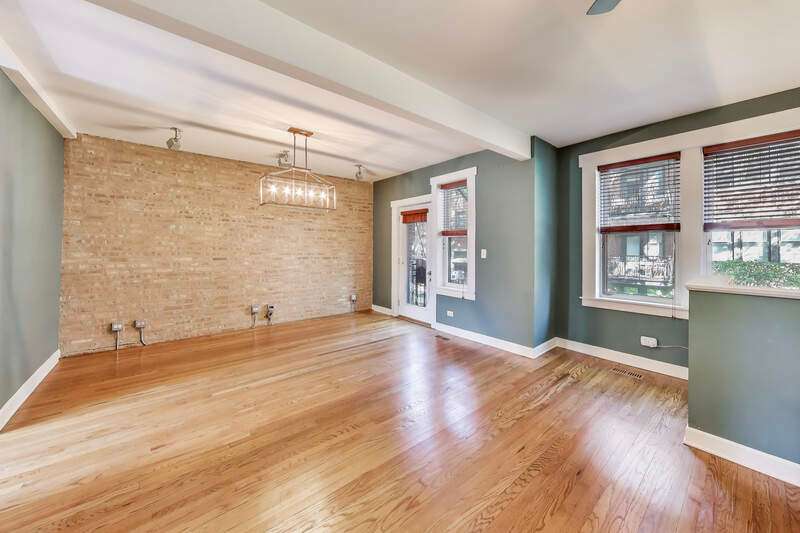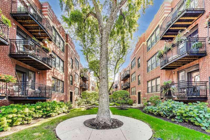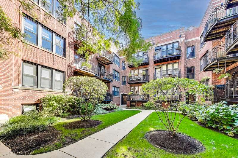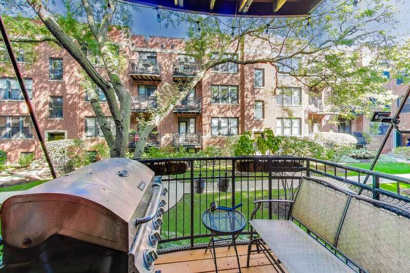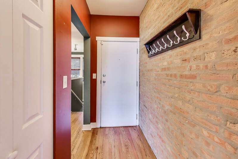 Unique and rare duplex down in a beautifully maintained brick courtyard building. This place has character and updates - hardwood floors throughout, exposed brick walls, wainscoting and tile floors in both bathrooms, stainless steel appliances and granite countertops in the kitchen. The main level has ample room for living and dining and includes a coat closet, surround sound speakers and balcony access. The main level bathroom has a full linen closet. The primary bedroom on the lower level has an en-suite bathroom and walk-in closet. Full size stacked laundry in unit. There are two large storage areas, one inside the unit under the stairs and the other just outside the lower level door. On the cusp of Edgewater and Andersonville this unit is steps away from the Peterson/Ridge Metra stop, Clark Street bus and Thorndale Redline but there is easy street parking in the neighborhood or a rental lot available nearby.