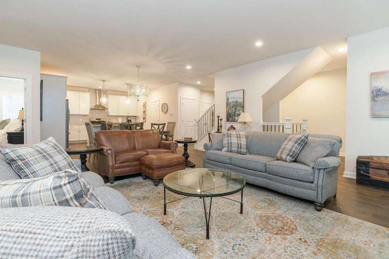 Step into luxury with this beautifully crafted custom home, showcasing premium finishes throughout. The heart of the home features a gourmet kitchen with quartz countertops, 42'' cabinets, under-cabinet lighting, wide plank hardwood floors, and all stainless steel appliances???perfectly suited for both everyday living and entertaining. Open to the kitchen is the eating area as well as the living room featuring a gas fireplace & custom wood surround. The spacious master suite is a true retreat, complete with a built-in closet system and a spa-inspired master bath, with quartz counters, upscale cabinetry, & shower with bench seat. The first floor also boasts a study with French doors, as well as a second bedroom and bathroom. Enjoy smooth ceilings, recessed lighting, custom woodwork, & solid wood doors that elevate the entire home. Step outside to a screened-in porch with an extended patio, offering a private backyard oasis ideal for your morning coffee or evening gatherings. Upstairs, the finished second floor includes a large bonus room, third bedroom, and a full bath - perfect for guests, teens, or a 2nd quiet home office. The expansive lower level is fully finished and includes a wet bar area, full bathroom, and egress windows, providing both functionality and flexibility. (A 4th bedroom can easily be added here in the lower level, and was an option for this floor plan) Additional features include an irrigation system and HOA coverage for water and exterior building insurance, giving you peace of mind and low-maintenance living. This home truly has it all!