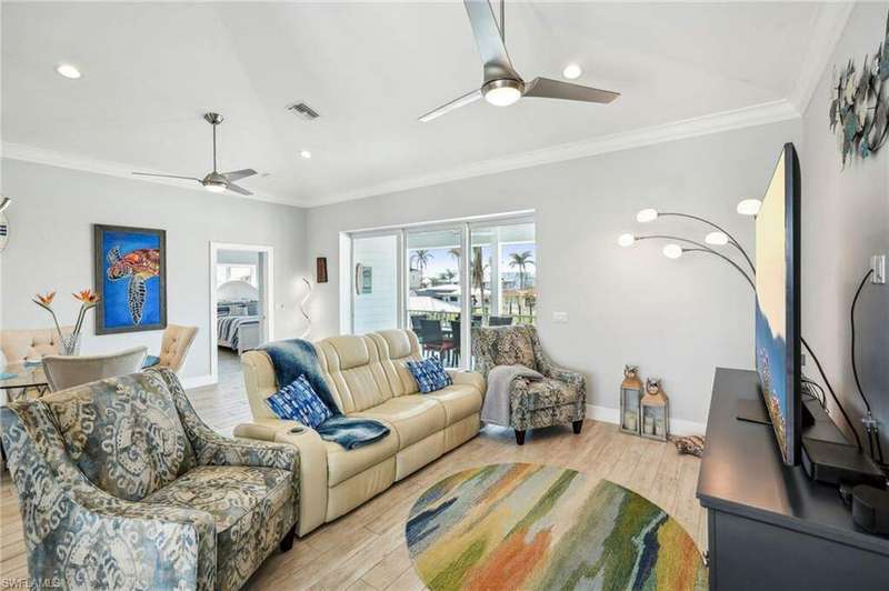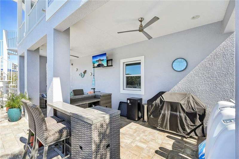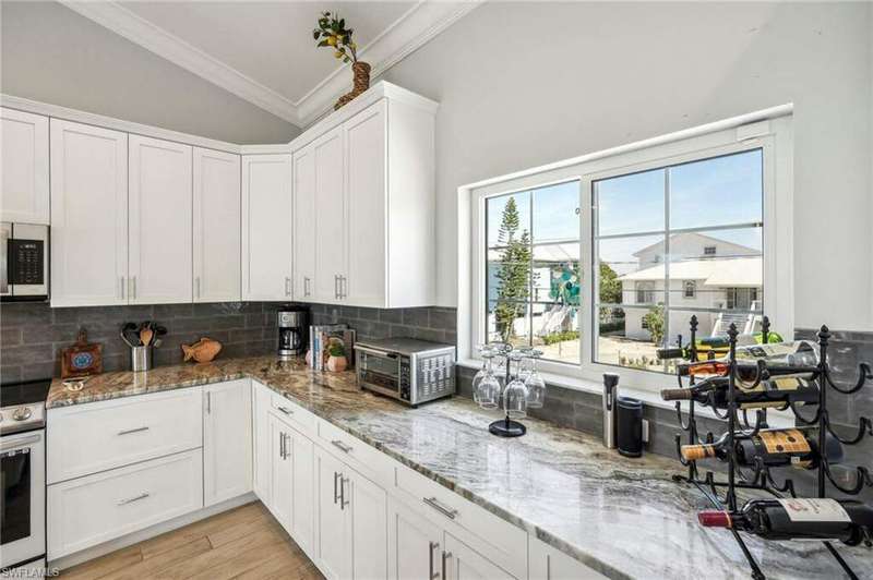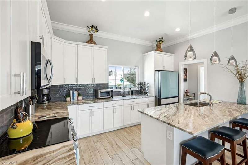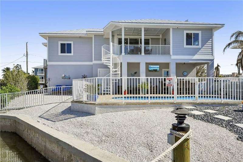 Welcome home to this gorgeous, elevated TURNKEY FURNISHED 3/2/2 direct gulf access pool home only steps to the white sands of the Gulf via your deeded Beach access. As you enter through the front doors you will be immediately wowed by the two-story entry way. The interior of this home features porcelain wood plank tile, soaring ceilings and an open floor plan. The beautiful white shaker kitchen with stainless appliances and stunning granite counter tops overlooks the main living area, great for entertaining. The ample sized master bedroom with walk in closet space also boasts an en-suite bath with dual sinks and a custom tiled walk-in shower. The second story enclosed balcony directly off the main living area is perfect for enjoying the serene canal views. In addition to the large 2 car garage on the main level there is an additional huge bonus area with so many possibilities. Step outside to your Florida oasis and enjoy relaxing by the pool, amazing fishing, or jump on your boat with your own private boat dock with a 14K lift to explore all SW Florida has to offer. Don't wait for new construction, you can move right into this 6-year young home! Huge price reduction!