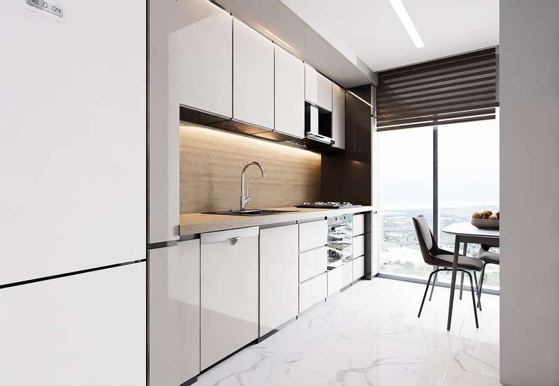 The shopping mall project covers a 2,620 m² construction area and features a 3,750 m² residential zone with 57 apartments, and 7,500 m² of commercial space housing 38 shops. The project offers different living options with 1+1 and 2+1 apartment types. On-site cafes provide a place to enjoy your coffee breaks, while restaurants just steps away offer convenient dining options.