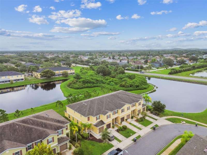 SERENE POND VIEWS! MAINTENANCE FREE LIVING! INCREDIBLE LOCATION! Welcome home to this BEAUTIFULLY MAINTAINED 3 bedroom + LOFT, 2.5-bathroom townhome with one-car garage offering 1,668 square feet of stylish living space. Recently built in 2017 with thoughtful upgrades, move-in-ready features and many amazing community amenities to enjoy! Step inside and feel right at home in the spacious great room featuring ceramic tile flooring, soaring ceilings, neutral color palette, and open layout that feels both bright and inviting. The kitchen is a showstopper with rich cabinets, crown molding, recessed can lighting, closet pantry, and convenient breakfast bar with adjoining dining space. All appliances stay!! Sliding glass doors lead outside to the covered, screened-in lanai with peaceful pond views making this a perfect place to relax and unwind after work or a great place to start your day. Downstairs also features a convenient half bathroom that is perfect for guests and handy storage closet. Upstairs, you’ll find 3 bedrooms along with a versatile loft and laundry closet all featuring BRAND NEW CARPET! The spacious primary suite features serene views of the backyard pond and offers a walk-in closet and a private bath with dual sinks and shower. Secondary bedrooms share a bathroom and are conveniently separated from the primary suite by the multi functional loft! This home is NOT in a flood zone and has hurricane shutters for added peace of mind! There’s NO CDD here! Low HOA includes reserves for roof replacement, exterior paint and grounds maintenance! Enjoy access to the Summerfield amenities with so much to enjoy: two pools, playground, dog park, tennis courts, pickleball courts, sand volleyball court and basketball courts! Excellent Riverview location offers grocery stores and restaurants within walking distance! Hospitals, school and shopping are all nearby along with quick access to I-75 for easy community to Tampa.