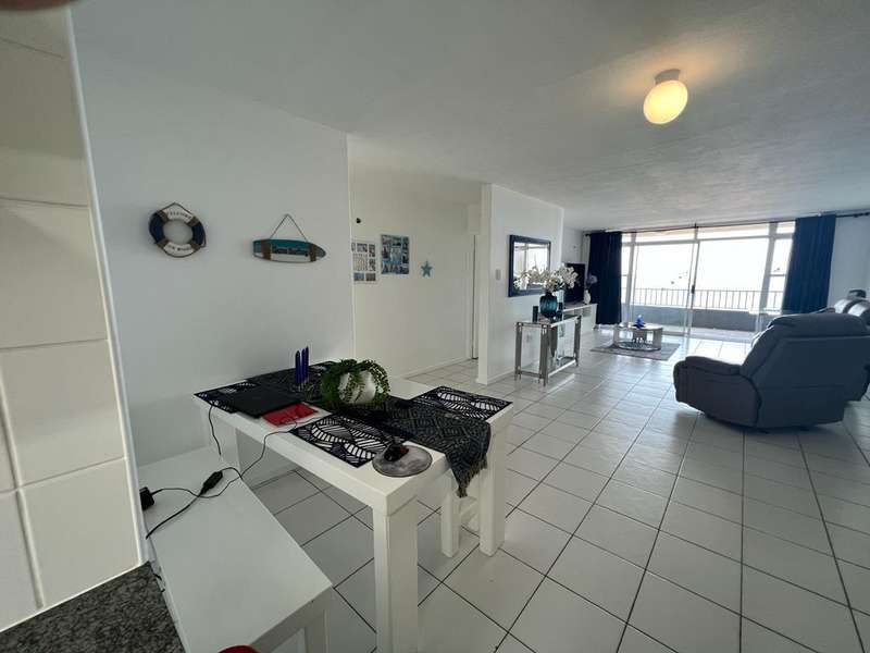 This unit on the 11th floor of one of the most popular Apartment blocks in Amanzimtoti. This Apartment boasts 3 Beautiful bedrooms and has 2 bathrooms with one being En-suite bathroom to the main bedroom. This is a perfect family unit with a sliding door leading onto the open balcony with a 180 degree view of the Indian Ocean. Open plan kitchen into the spacious lounge and dining room area. There is a communal pool and braai area with a secure parking. Situated in the heart of popular Beach Road, this really is a unit that puts you right in the action.