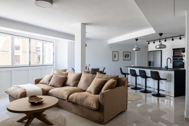 This exquisitely renovated apartment is situated in a prime location in the heart of Soho, adjacent to the port. Nestled within an exclusive community with concierge service, it does not permit touristic licenses. The apartment features three bedrooms, including one with an ensuite bathroom, and all rooms are bathed in natural light. Furniture not included but can be negotiated. There are 2 parking places for rent at 170 euros monthly in the parking below that can be transferred.