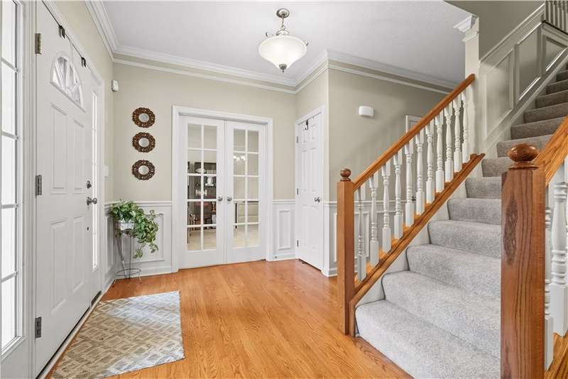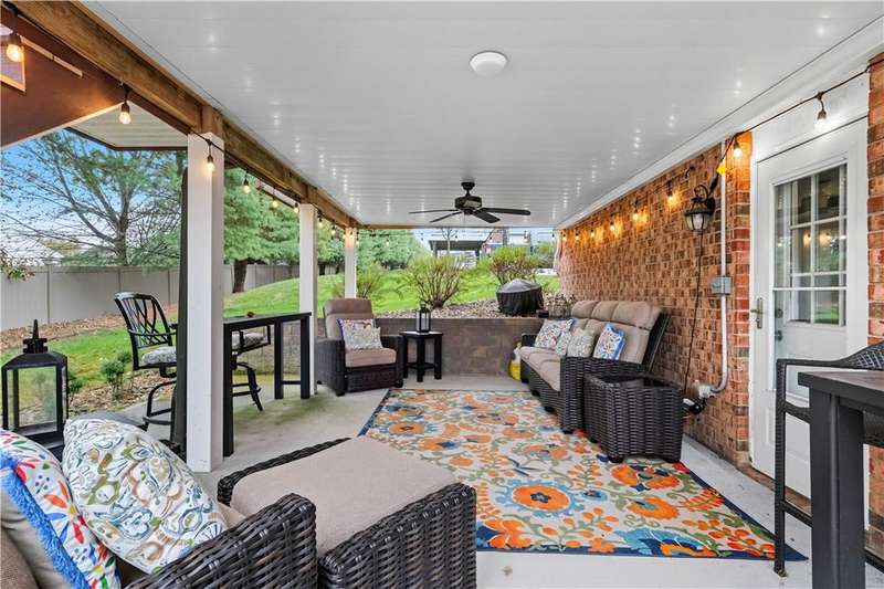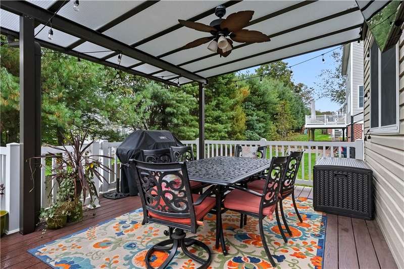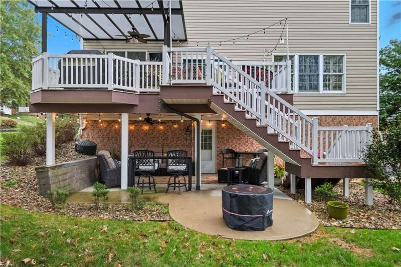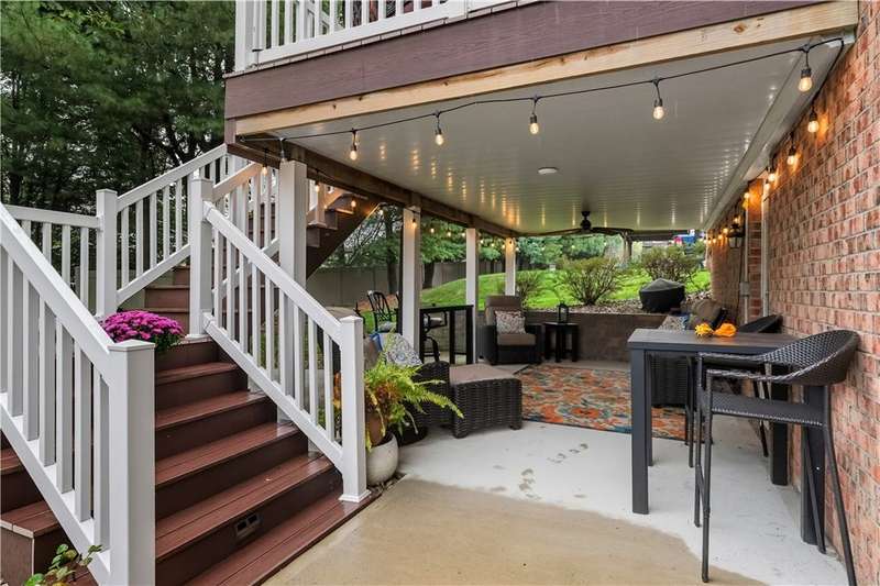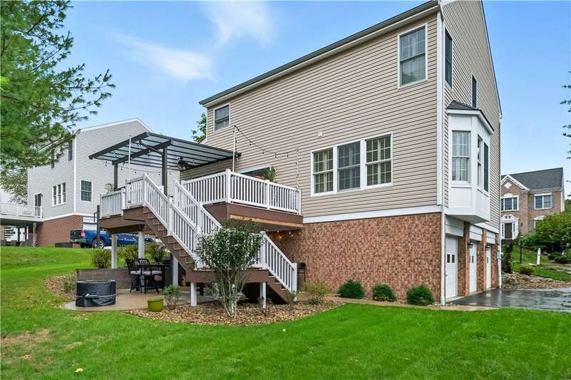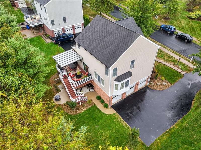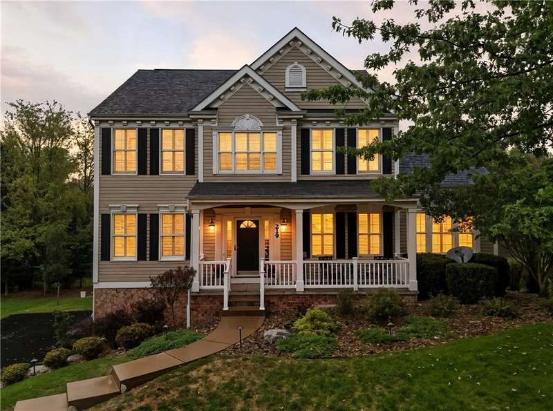 Beautifully maintained 4-bedroom, 3 FULL -bath colonial nestled in one of the most desirable Mars School District neighborhoods with low Butler County taxes and a lifestyle of comfort and elegance-Featuring gleaming hardwood floors, plantation shutters, and an inviting SUNROOM filled with natural light. The kitchen offers island seating and sliders to a covered back porch, perfect for entertaining. A private office with French doors, formal dining room, and 4 spacious bedrooms make this home ideal for everyday living and hosting. The finished lower level includes luxury flooring, a cozy fireplace, built-in area for a TV & a stylish bar perfect for movie nights or hosting friends. Outdoors, enjoy 3 inviting spaces for entertaining: The covered back deck area, the finished patio beneath the deck and the covered front porch -all overlooking a beautifully landscaped yard. A 3 car garage provides plenty of storage and convenience. This home is a perfect blend of functionality and location