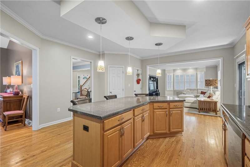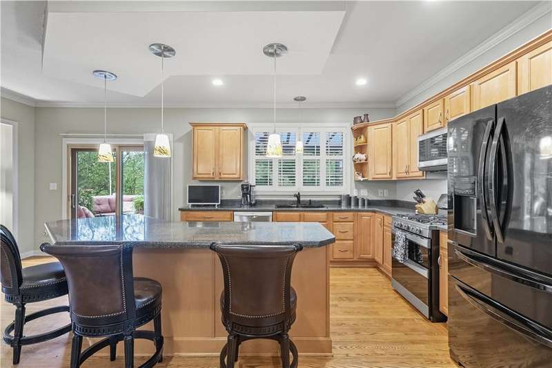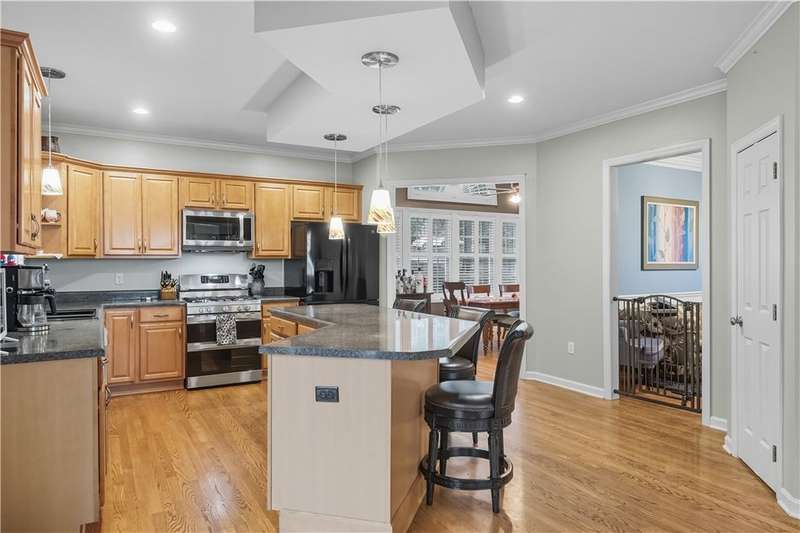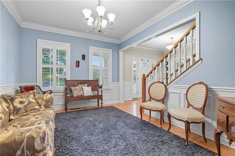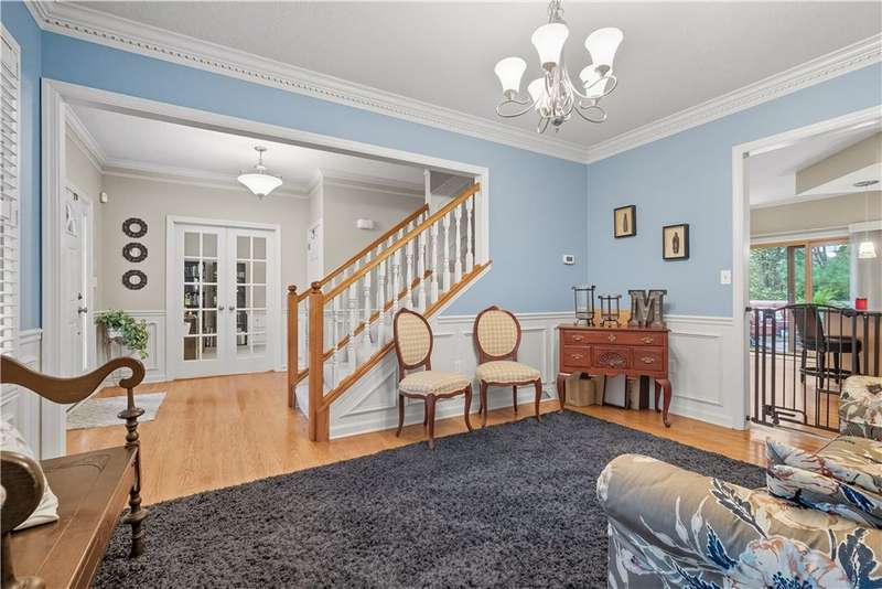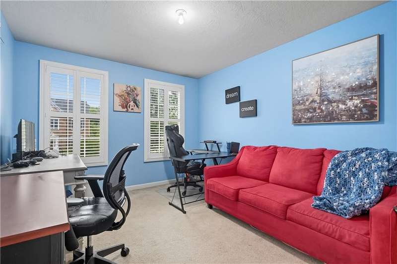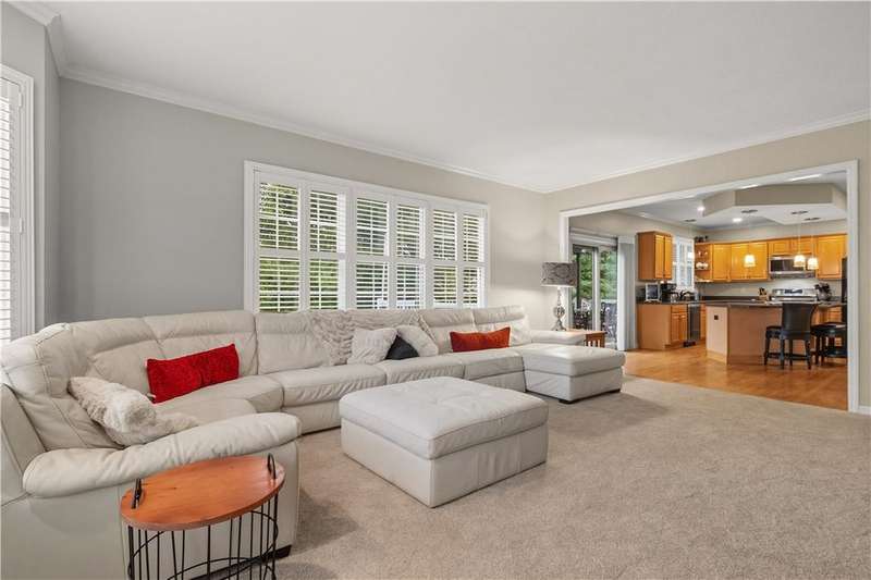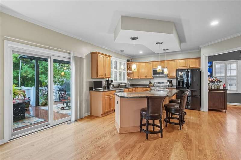 Beautifully maintained 4-bedroom, 3 FULL -bath colonial nestled in one of the most desirable Mars School District neighborhoods with low Butler County taxes and a lifestyle of comfort and elegance-Featuring gleaming hardwood floors, plantation shutters, and an inviting SUNROOM filled with natural light. The kitchen offers island seating and sliders to a covered back porch, perfect for entertaining. A private office with French doors, formal dining room, and 4 spacious bedrooms make this home ideal for everyday living and hosting. The finished lower level includes luxury flooring, a cozy fireplace, built-in area for a TV & a stylish bar perfect for movie nights or hosting friends. Outdoors, enjoy 3 inviting spaces for entertaining: The covered back deck area, the finished patio beneath the deck and the covered front porch -all overlooking a beautifully landscaped yard. A 3 car garage provides plenty of storage and convenience. This home is a perfect blend of functionality and location