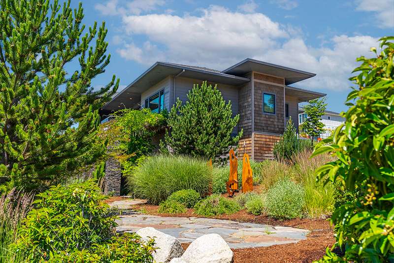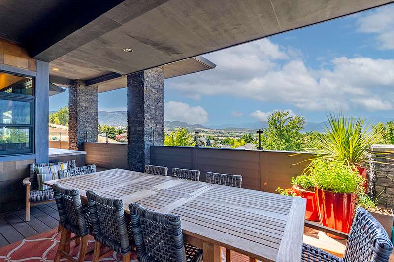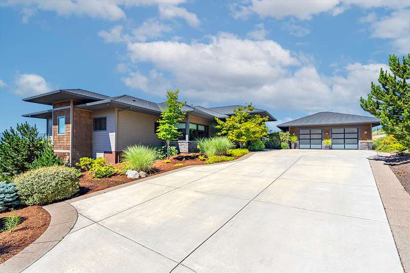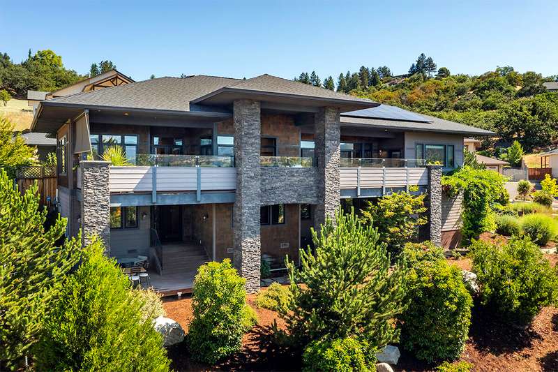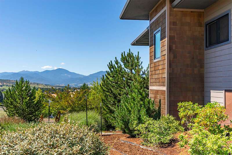 Architecturally striking and impeccably crafted, 280 Mary Bee Lane captures the essence of refined Northwest living. Designed by Ken Ogden and built by Michael Susi, this custom home is perfectly positioned to take in sweeping views of Mt. Ashland and the surrounding valley. Inside, rich Acacia hardwood floors, granite and marble surfaces, and extensive built-ins reflect a high level of finish and thoughtful detail. The main level features a spacious primary suite and subtle ADA features for long-term comfort. Outdoor living shines with a covered front deck, complete with a built-in kitchen and dining area, surrounded by beautifully selected native plantings. An oversized two-car garage, owned solar system, and optional two-family layout offer both flexibility and efficiency. A truly exceptional home in one of the area's most sought-after locations.