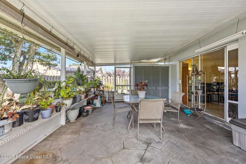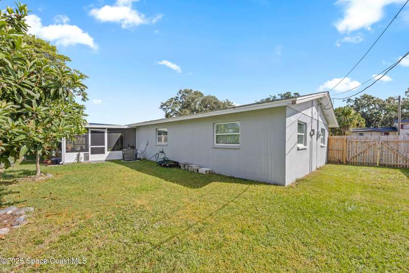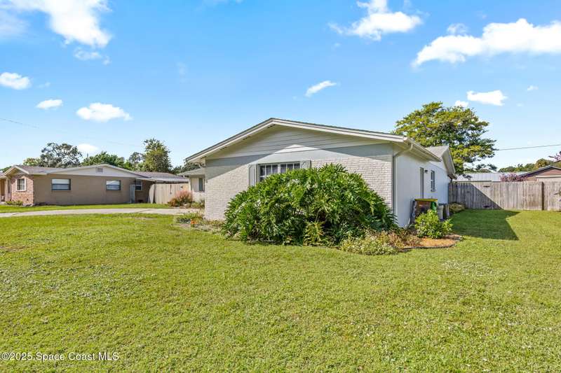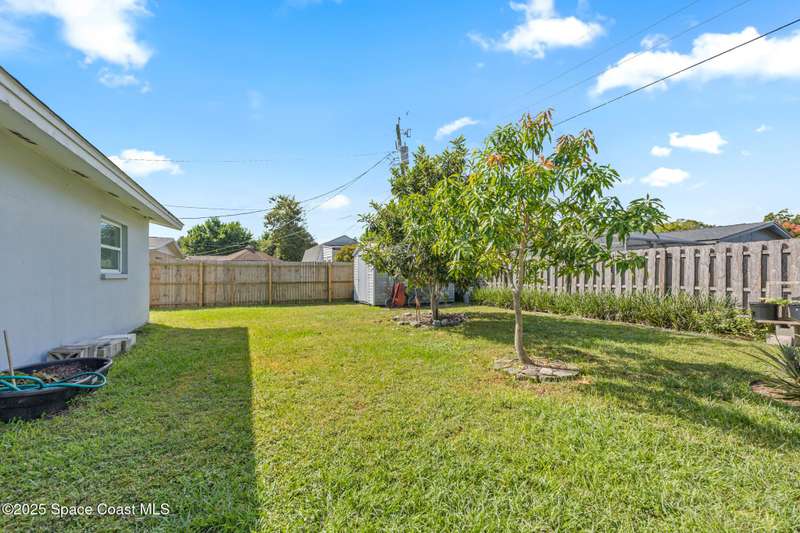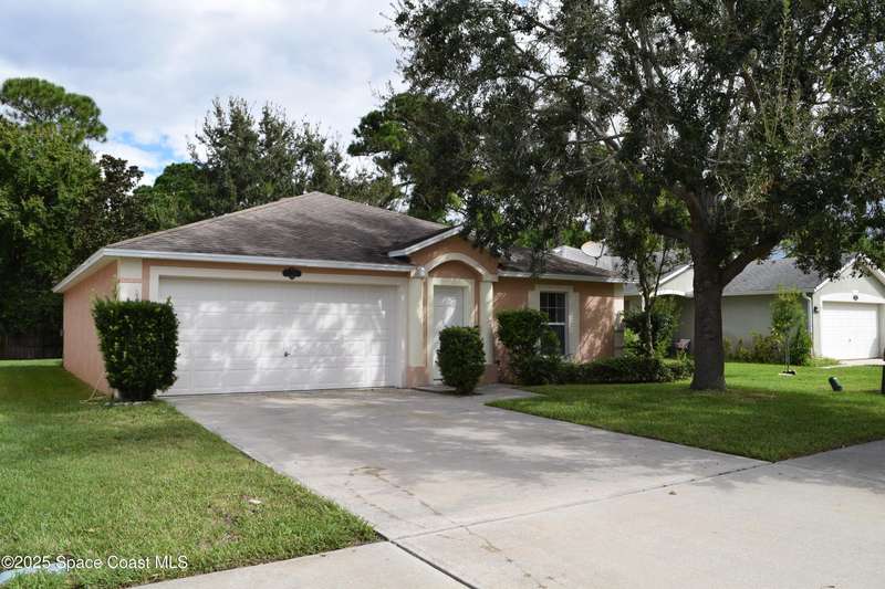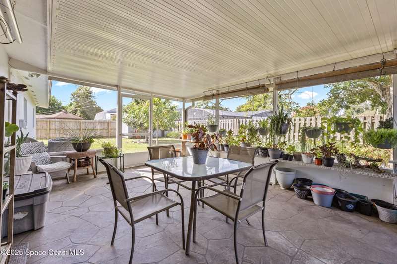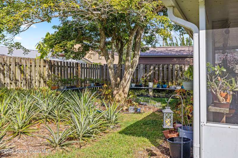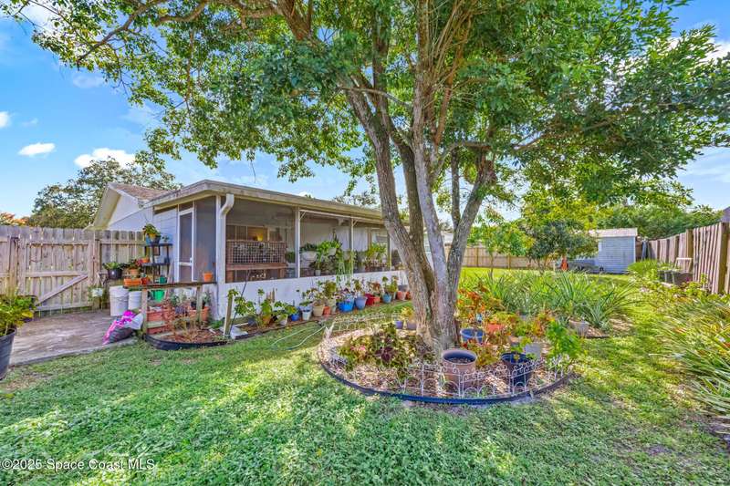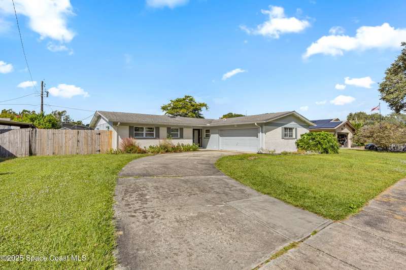 Well-maintained 3-bedroom, 2-bath home offering 1,612 sq ft of comfortable living space. Features include a 2-car garage, covered screened-in porch, and a fantastic, private and fenced backyard, with mature mango and loquat trees plus a producing pineapple garden. Interior layout includes good-sized bedrooms and two full baths with tubs. Located in a family-friendly neighborhood within the Oak Park Elementary school district. Convenient access to Kennedy Space Center, Enchanted Forest Sanctuary, and beaches are less than an hour away.