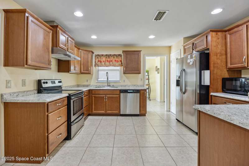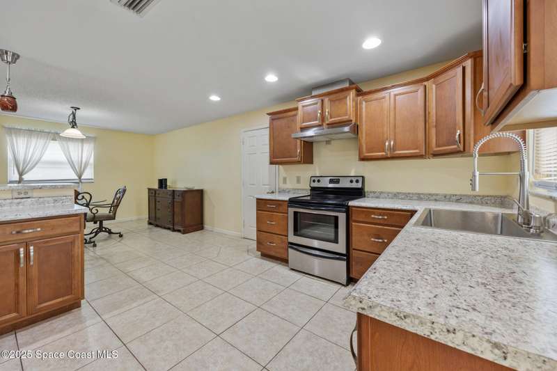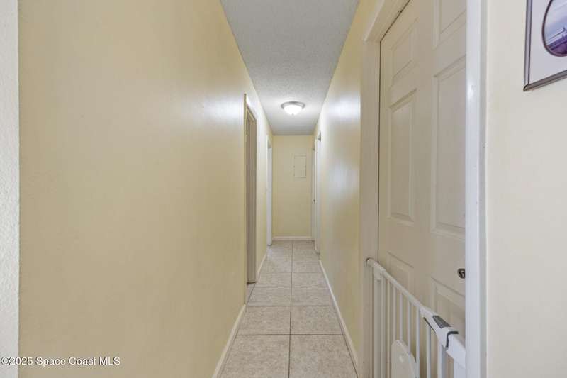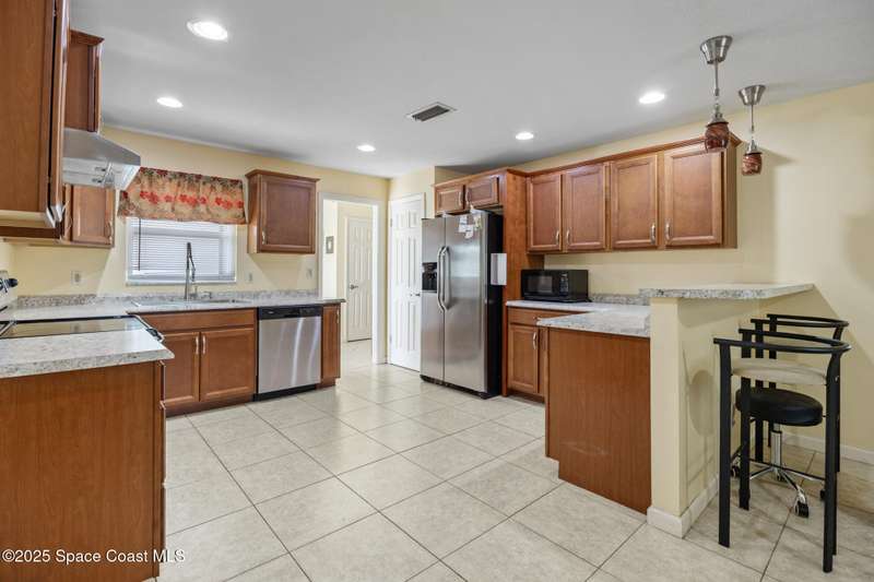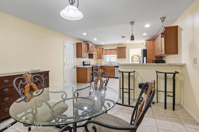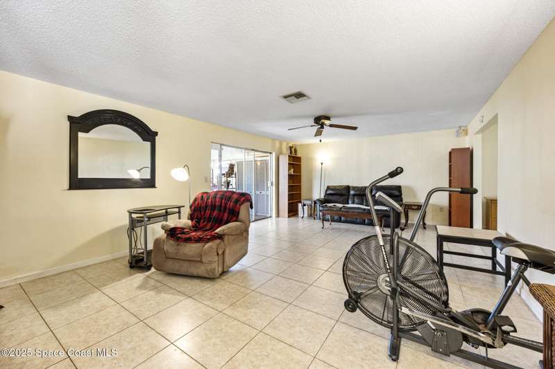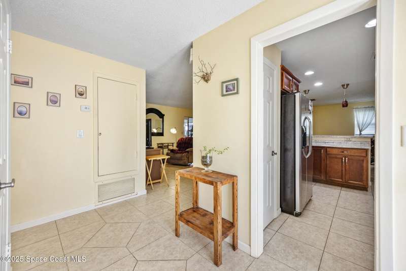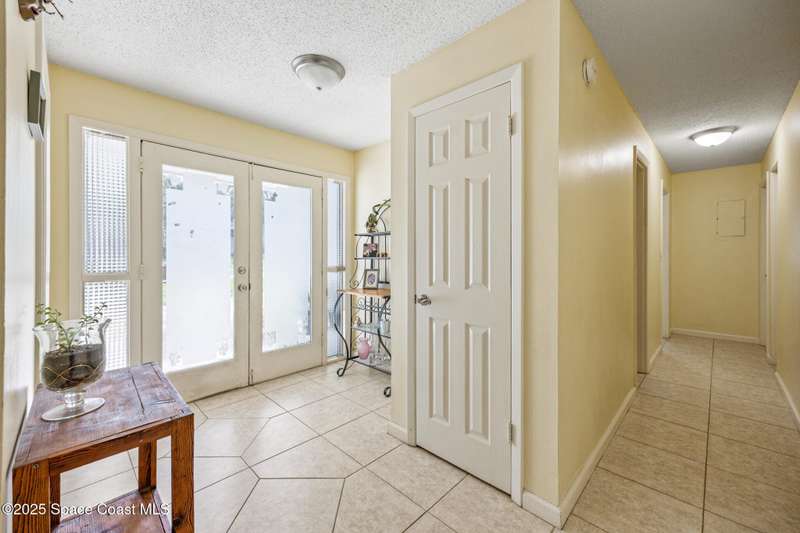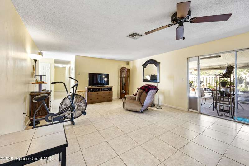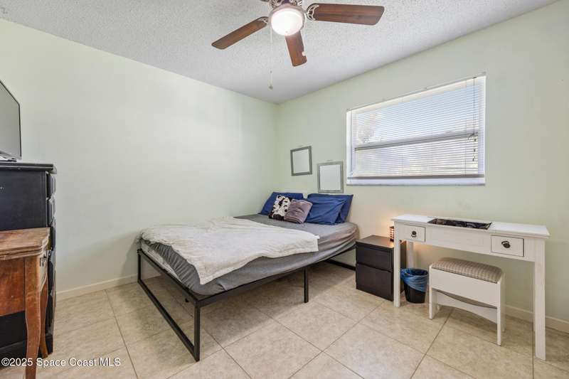 Well-maintained 3-bedroom, 2-bath home offering 1,612 sq ft of comfortable living space. Features include a 2-car garage, covered screened-in porch, and a fantastic, private and fenced backyard, with mature mango and loquat trees plus a producing pineapple garden. Interior layout includes good-sized bedrooms and two full baths with tubs. Located in a family-friendly neighborhood within the Oak Park Elementary school district. Convenient access to Kennedy Space Center, Enchanted Forest Sanctuary, and beaches are less than an hour away.