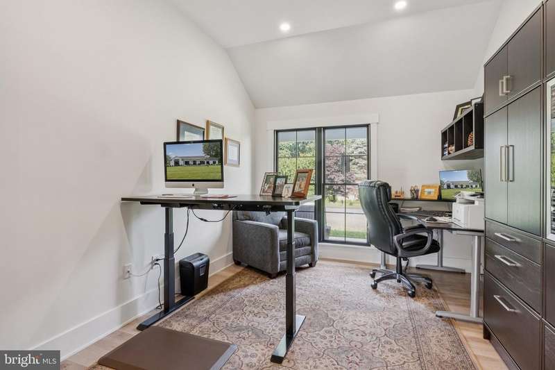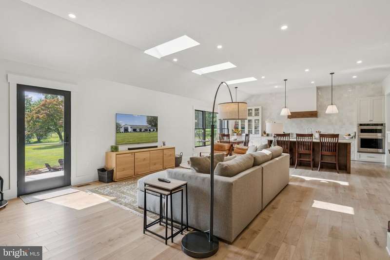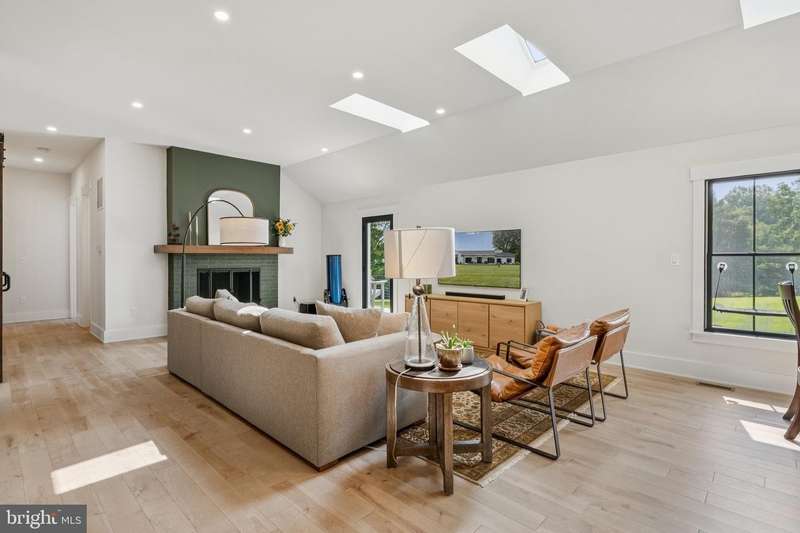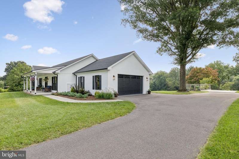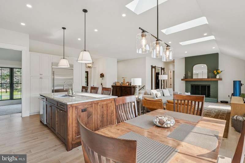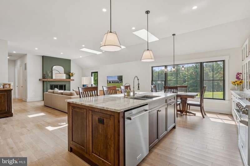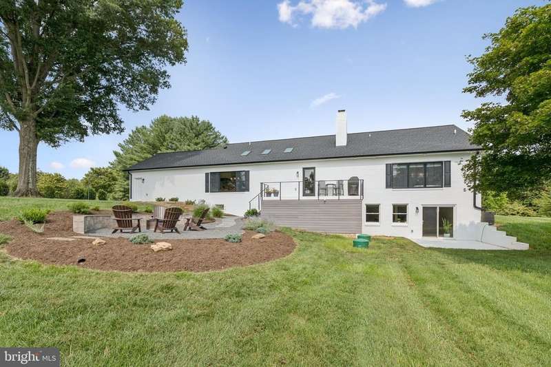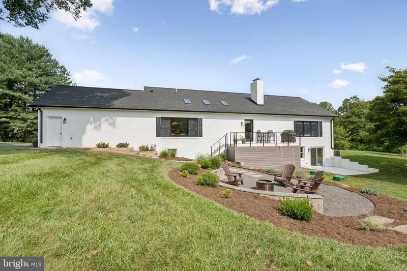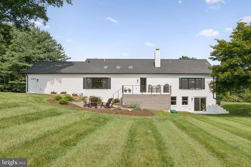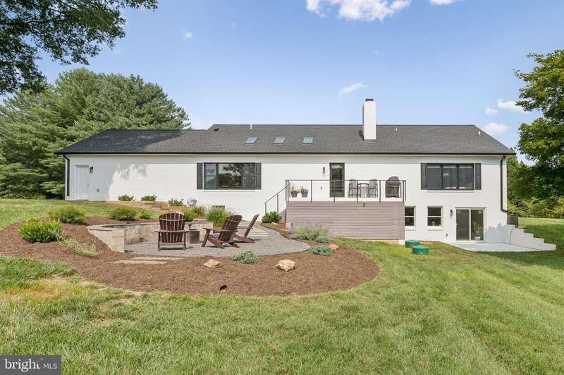 Welcome to this gorgeous, completely renovated one-level home with a finished walkout basement, perfectly situated in the desirable Woodmark community. Thoughtfully redesigned with high-end finishes and custom craftsmanship throughout, this home offers modern luxury, functionality, and serene living on two beautifully landscaped, rolling acres. Step inside to a light-filled great room featuring soaring vaulted ceilings, a cozy fireplace, and an open-concept layout ideal for everyday living and entertaining. The heart of the home is the show-stopping kitchen, boasting custom-built cabinetry, premium appliances, a spacious island, and a walk-in pantry that checks every box for the home chef. Adjacent, the custom laundry/mudroom is both stylish and practical, designed with custom cabinets for added storage and organization. The main level includes a luxurious primary suite complete with a spa-inspired bath featuring a floating tub, walk-in shower, and generous walk-in closets. An additional bedroom, a versatile office or third bedroom, and a beautifully appointed hall bath and powder room complete the main floor. The finished lower level offers incredible bonus space with a massive recreation room, a walk-out to the backyard, an additional bedroom and full bath-perfect for guests or multi-generational living-along with a utility room and ample storage. Outside, enjoy peaceful views and refined outdoor living. The backyard includes a stunning deck, an elegant seating area with firepit, garden space, and plenty of room to roam. The oversized 2-car garage and expansive driveway provide abundant parking. Every detail has been meticulously curated in this one-of-a-kind, custom-designed home. Don't miss this rare opportunity to own a truly exceptional property in a private, picturesque setting.