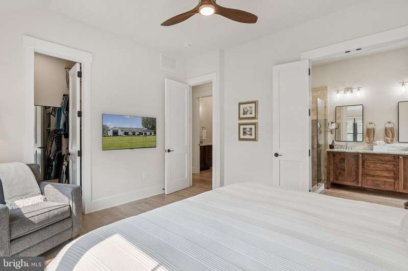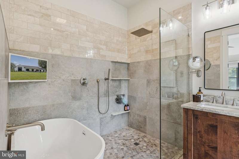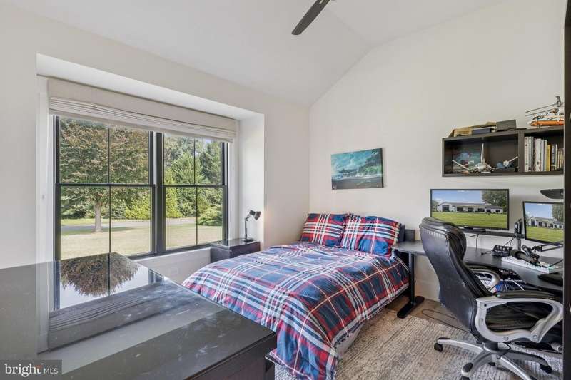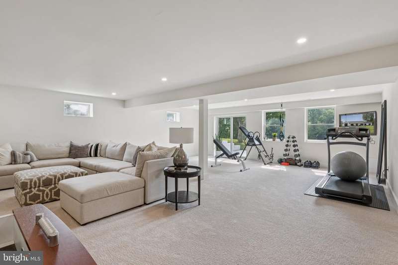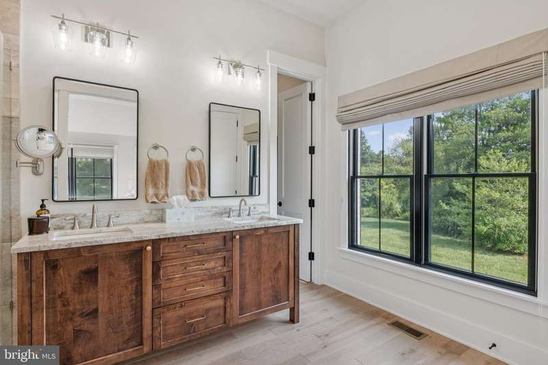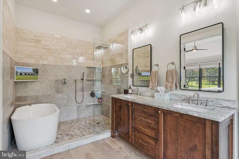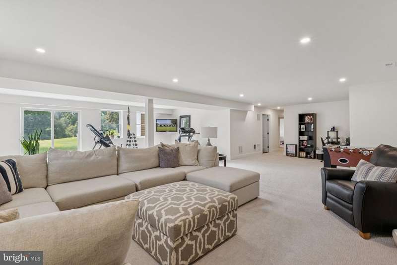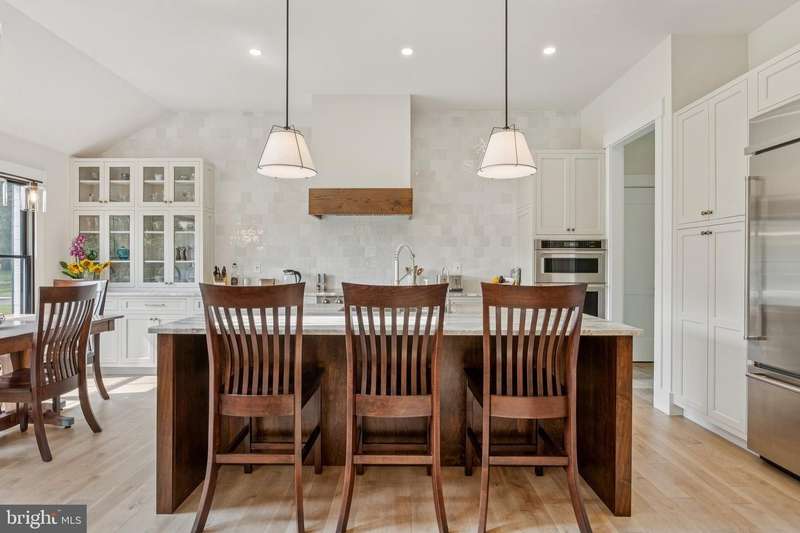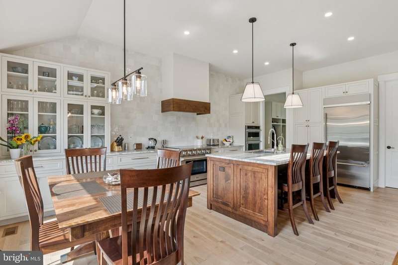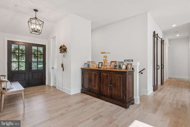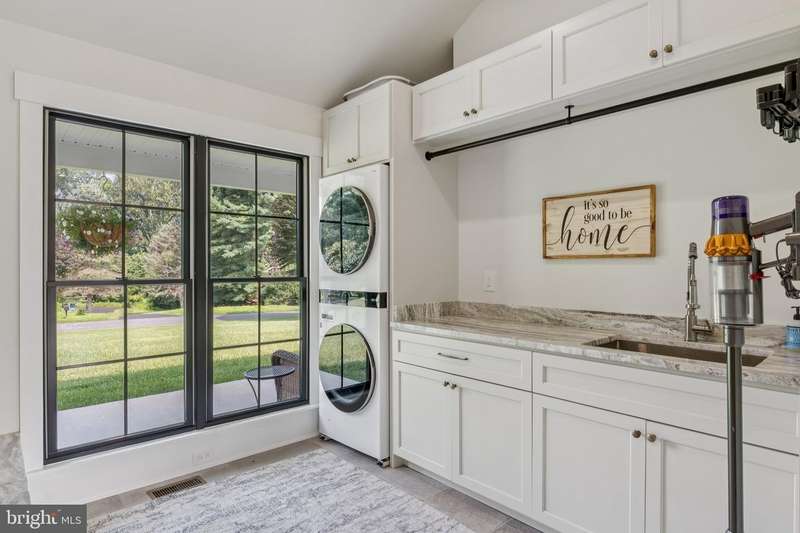 Welcome to this gorgeous, completely renovated one-level home with a finished walkout basement, perfectly situated in the desirable Woodmark community. Thoughtfully redesigned with high-end finishes and custom craftsmanship throughout, this home offers modern luxury, functionality, and serene living on two beautifully landscaped, rolling acres. Step inside to a light-filled great room featuring soaring vaulted ceilings, a cozy fireplace, and an open-concept layout ideal for everyday living and entertaining. The heart of the home is the show-stopping kitchen, boasting custom-built cabinetry, premium appliances, a spacious island, and a walk-in pantry that checks every box for the home chef. Adjacent, the custom laundry/mudroom is both stylish and practical, designed with custom cabinets for added storage and organization. The main level includes a luxurious primary suite complete with a spa-inspired bath featuring a floating tub, walk-in shower, and generous walk-in closets. An additional bedroom, a versatile office or third bedroom, and a beautifully appointed hall bath and powder room complete the main floor. The finished lower level offers incredible bonus space with a massive recreation room, a walk-out to the backyard, an additional bedroom and full bath-perfect for guests or multi-generational living-along with a utility room and ample storage. Outside, enjoy peaceful views and refined outdoor living. The backyard includes a stunning deck, an elegant seating area with firepit, garden space, and plenty of room to roam. The oversized 2-car garage and expansive driveway provide abundant parking. Every detail has been meticulously curated in this one-of-a-kind, custom-designed home. Don't miss this rare opportunity to own a truly exceptional property in a private, picturesque setting.