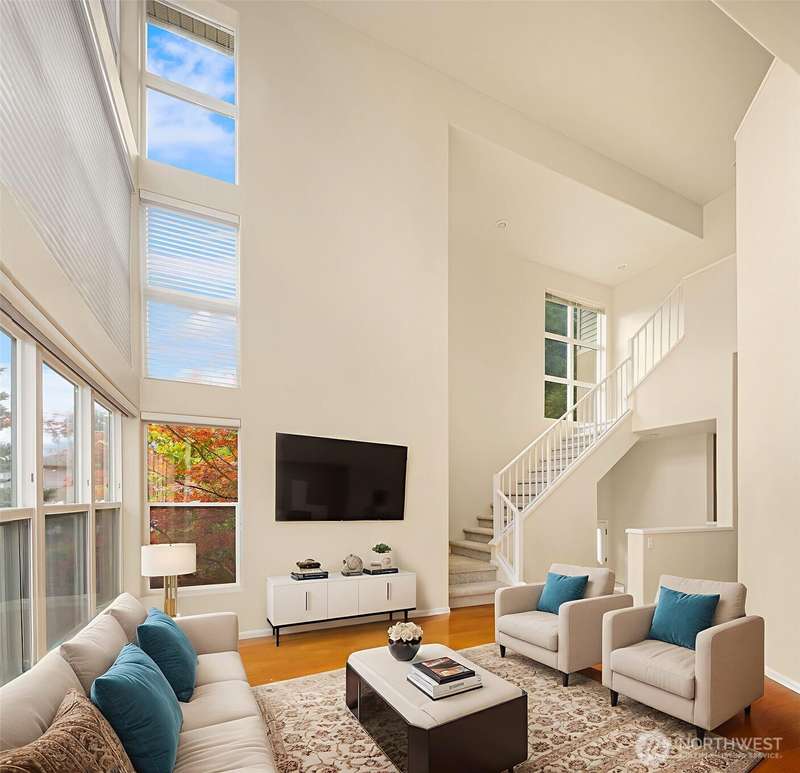 Rare Renaissance Resale in Bellevue. 3 Bedrooms+Loft/Den, 3.25 baths, in 2,020 Apx SqFt of quality living space. Refinished hardwoods, fresh interior paint, new carpet. High vaulted ceilings. Lots of windows bring in a ton of natural light. Wonderful kitchen with granite island, lots of built-ins & nook area. Family room with warm gas fireplace. Primary suite with 5-piece bath. Convenient lower bedroom with its own .75 bathroom. Back patio area with mature landscaping is great for entertaining. A/C for those hot days! Easy access to I-90, 405, Factoria & Downtown Bellevue. Award winning Bellevue School District.