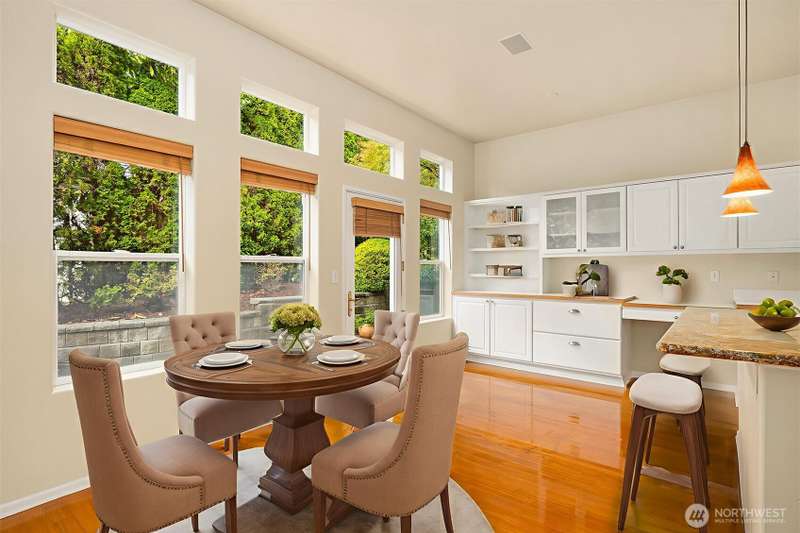 Rare Renaissance Resale in Bellevue. 3 Bedrooms+Loft/Den, 3.25 baths, in 2,020 Apx SqFt of quality living space. Refinished hardwoods, fresh interior paint, new carpet. High vaulted ceilings. Built-in speakers. Lots of windows bring in a ton of natural light. Wonderful kitchen with granite island, lots of built-ins & nook area. Family room with warm gas fireplace. Primary suite with 5-piece bath. Convenient lower bedroom with its own .75 bathroom. Back patio area with mature landscaping is great for entertaining. A/C for those hot days! Easy access to I-90, 405, Factoria & Downtown Bellevue. Award winning Bellevue School District.