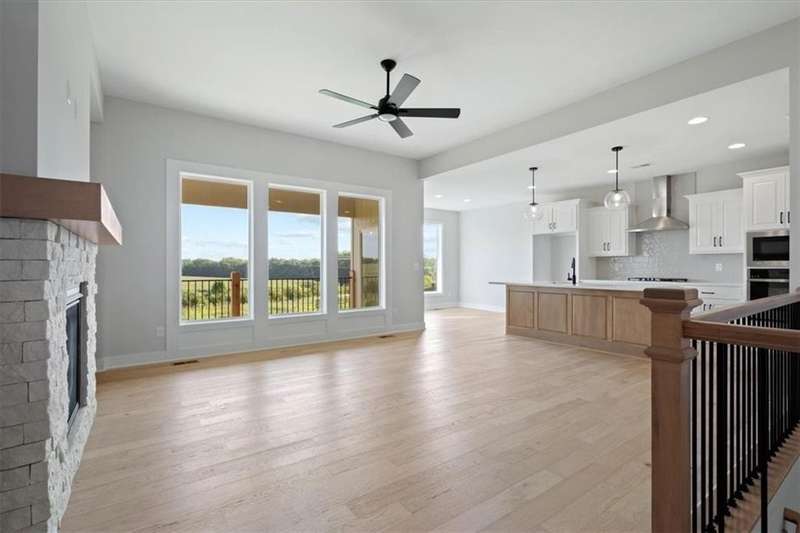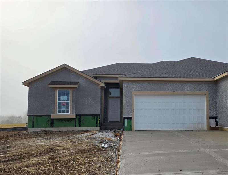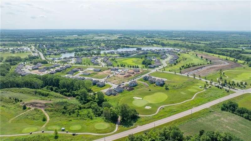 Highlands Lot 25L - The Kendyl by New Mark Homes. Enjoy GOLF COURSE LIVING and care free living in this luxury paired villa home. HOME UNDER CONSTRUCTION. Estimated completion Feb 2026. Finished photos and tour are of a previous model. Beautiful open plan with primary suite located on the main level. Primary bath has tiled shower, dual vanities and generous 10 1/2' by 9' master closet with laundry connected! Home has 9' and 10' ceilings, an office, a covered patio, and a gas fireplace. Finished lower level includes a rec room, two bedrooms, and a full bath. HOA provides lawn and landscape maintenance (including weed and feed, sprinkler winterization and spring testing), snow removal over 2 inches, and replacement of roof, gutters and paint as needed. Neighborhood pool, play area and basketball and pickleball/tennis courts included as well. Excellent schools, good highway access for easy commute to all parts of the city! 10 minutes to The Legends and 30 to the airport, downtown and Lawrence!