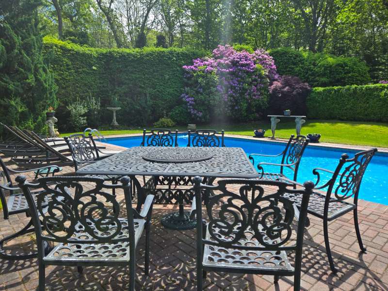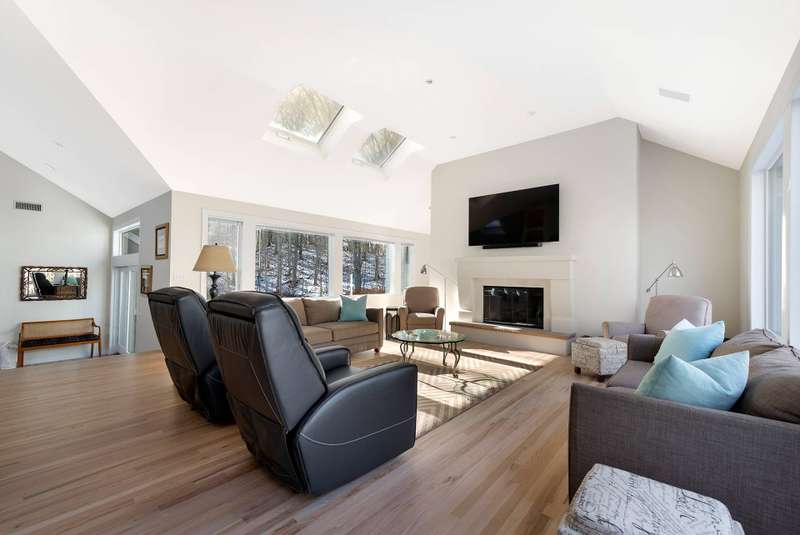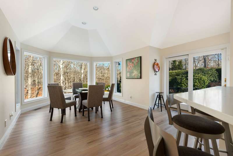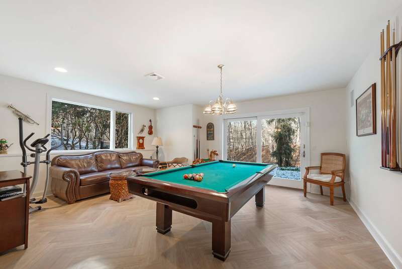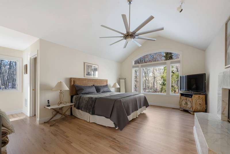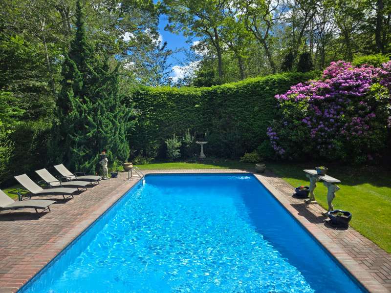 Rental Registration#: 24-1087. This recently renovated post-modern home is surrounded by beautiful Beech tree woodlands, specimen shrubs and flowers with rolling lawn. Located on two secluded acres at the end of a quiet cul-de-sac in the desirable Bell Estate section of Amagansett - fully gated property. This spacious home with oversized windows and skylights throughout, makes you feel like you are part of the outdoors. A grand entrance leads to the main floor that is open and spacious, with high ceilings and huge windows. The large living room has a gas fireplace and flows into the dining area and recently renovated kitchen, all flooded with light. There is a patio off the kitchen/dining room that leads down to the heated pool area. The king size primary suite is separated from the other bedrooms and has a gas fireplace, a spacious closet and a large master bath with a soaking tub with views that go on forever! The lower level (above ground) has a junior suite with bath (queen bed); two additional guests bedrooms (one queen and two twin), another full bath. Bonus room: Large playroom with Pool Table and direct access to the lawn and gardens. Enjoy quiet time by the small meditation pond after a day of activities. The house is fully equipped with WIFI, central vac, central a/c, an irrigation system, and an alarm. All of this is conveniently located just biking distance or a quick drive to the most beautiful ocean beaches, the local farm stands and top rated restaurants. Call for availability. Now available July, August-LD or July and August-LD 2026. Listing ID 756029
