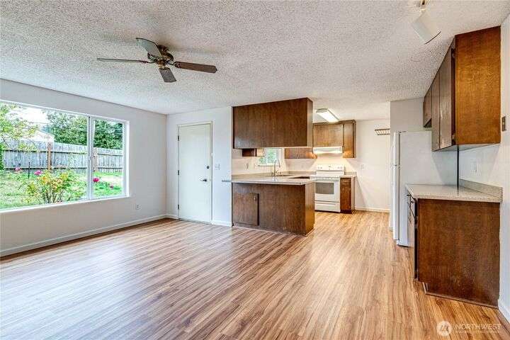 Charming one level home amongst the trees and directly across the entrance to Hurricane Ridge, close to multiple trail systems and only minutes from town. Southern exposure floods the fully fenced backyard with ample space for boat/RV storage, garden beds, fruit trees and plenty of room to expand. Layout with separate living room/dining area and additional bonus room off the kitchen for all your entertaining needs. Generous sized bedrooms with 3/4 bath off the Primary Bedroom. Freshly painted interior, newer roof and overall well kept home....don't miss out on this gem!