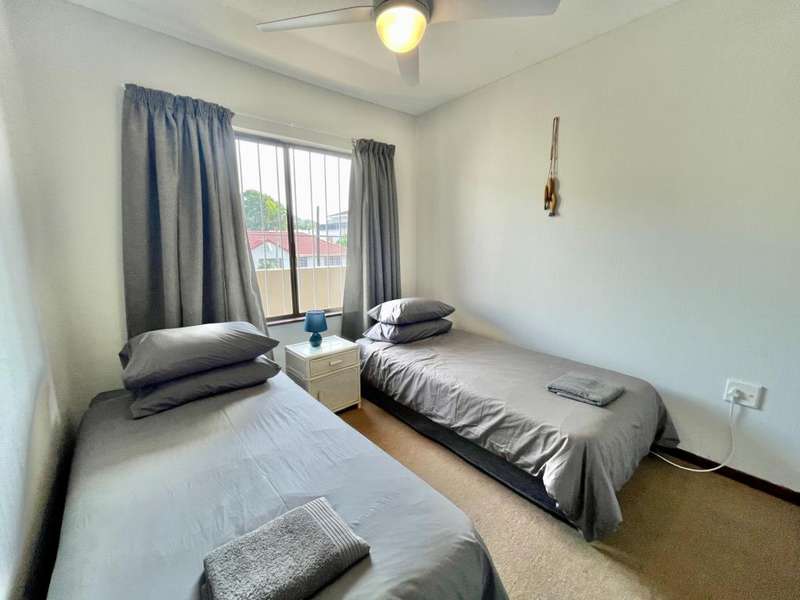 This stunning property has a lovely and unique floor area which is spacious and also flows for easy access throughout the apartment. The living area consists of an open planned kitchen, lounge , dining area and a covered patio which leads to the main bedroom and around to the rest of the apartment. There are 3 generous sized bedrooms, one of which has an en-suite bathroom, the balcony for the apartment has plenty of natural light entering the property and there is a lovely view of the river and ocean from the apartment. The complex has a communal swimming pool, designated garage parking for this unit, fibre connection and visitors parking for additional vehicles. Walking distance to Margate main beach and merely a 5 minute drive to the shopping centre. Call me today to view this beautiful property.