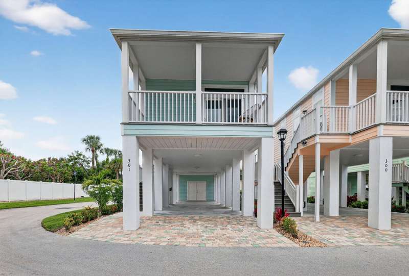 Beautiful fully furnished, turn-key 2 BR - 2 BA practically brand new. What a GREAT location - SO many amenities - so close to downtown Jensen Beach. This active 55+ community is much sought after. This unit has a pad that will hold an elevator - We have 2 units next to each other - so buy both and have a family compound! Check out 300 NE Coastal. NO taxes - Land lease covers water, sewer and trash and all amenities. SELLER FINANCING AVAILABLE!
