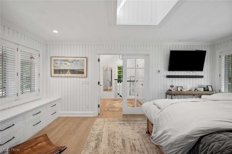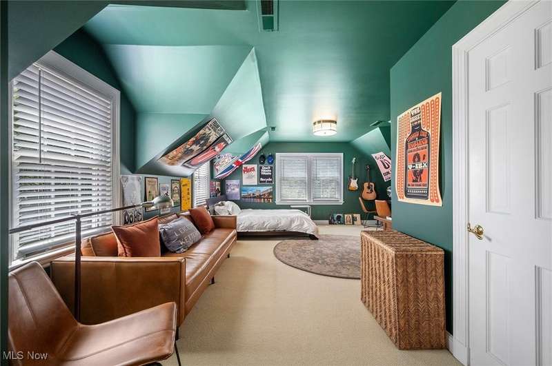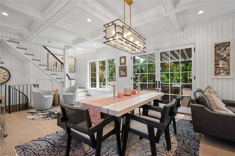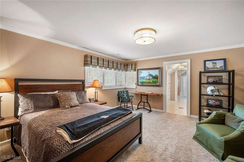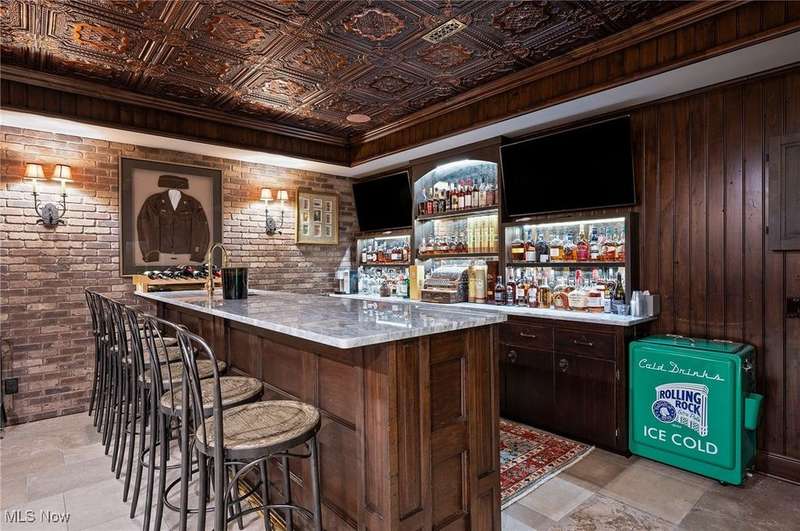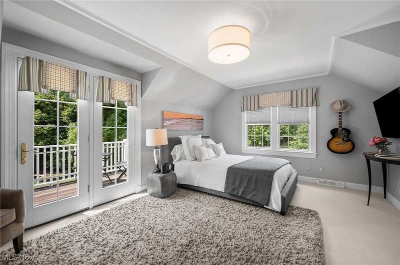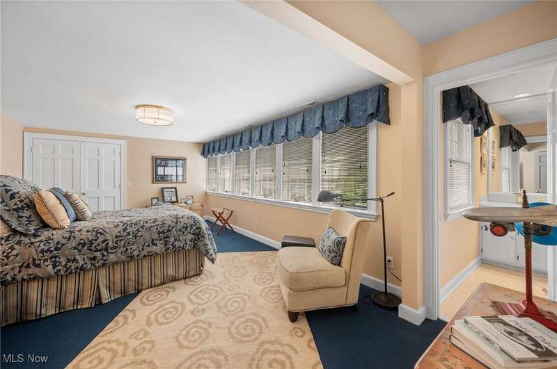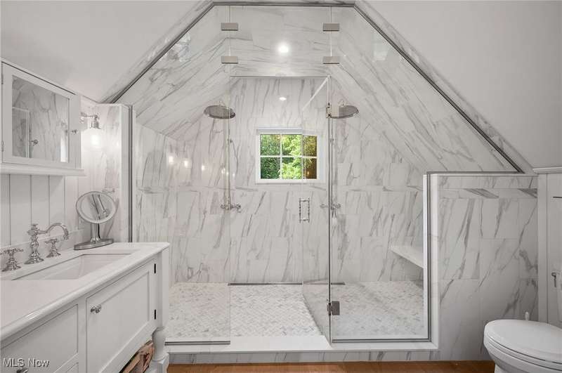 Set on 24 scenic acres of sweeping lawns & woodlands with 3 stocked fishponds, this magnificent English country estate, reimagined by renowned Cleveland architect Anthony Paskevich, offers an unparalleled living experience. A long, illuminated drive winds past original farmhouse & barn complex, leading through a tree-lined allee flanked by stunning gardens to the impressive main residence. A turreted entrance welcomes guests. The stone & clapboard exterior gives way to magnificent millwork, vaulted ceilings, arched doorways, oversized windows, and carefully selected stone & wood flooring. Designed for everyday living and grand entertaining, the generously sized gathering areas incl. a great room, formal dining room, family room, and solarium, all with fireplaces. A tranquil haven, the primary bedroom suite has dual baths and 4 additional suites incl. private baths. Enclosed by walls of glass, a spectacular pool pavilion opens to a stone patio overlooking breathtaking scenery and the exercise room, incl. sauna and steam room, epitomizes luxury & relaxation with a view. Approached by a brick courtyard, the custom-built, 1-bedroom guesthouse has an expansive brick terrace with geothermal heat, a fireplace and outdoor kitchen & pizza oven. With the richness & warmth of stone, brick, and wood, the bar room on the walk-out lower level exudes the charm of a traditional Scottish pub. The 2-car garage has an additional 1-bedroom, 1-bath guest suite on its upper level. Original farmhouse and one-room schoolhouse, moved to the property in the 1930s, are fully updated with modern amenities. The farmhouse has 3 bedrooms, 1.5 baths, wraparound porch, A/C and whole-house generator. The estate also has a fully restored, authentic barn complex - 4 frame buildings connected by a covered walkway: barn with 4 stalls & hayloft, greenhouse/studio, and detached 2-car and 4-car garages. Open fenced pastures with loafing sheds have ample space for horses, alpacas, or sheep to graze freely.