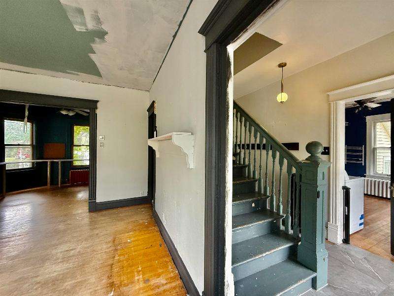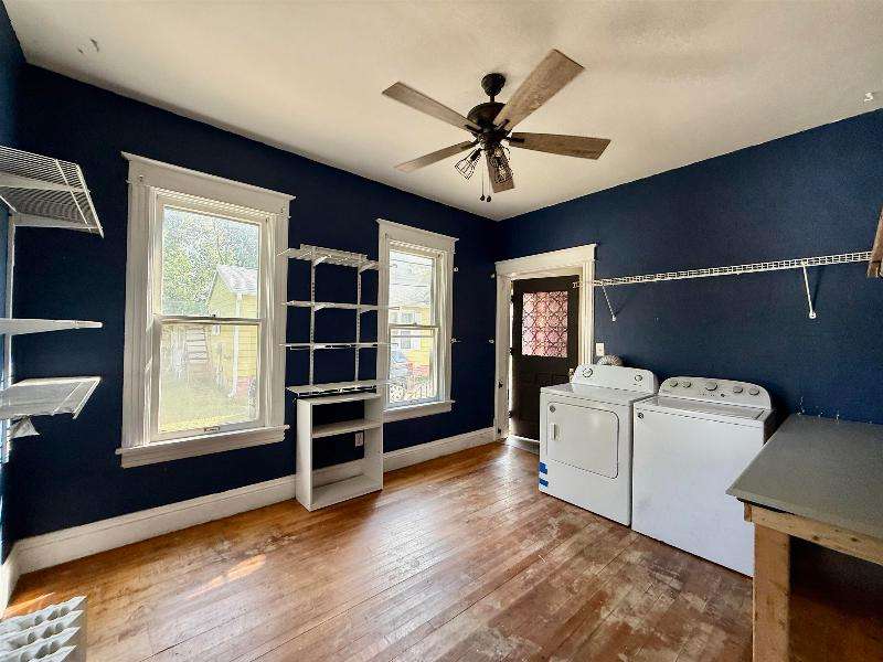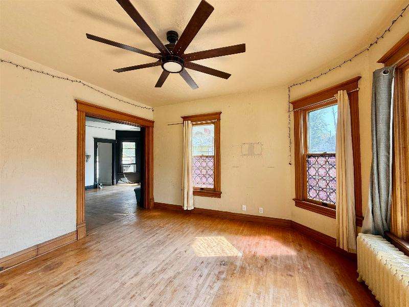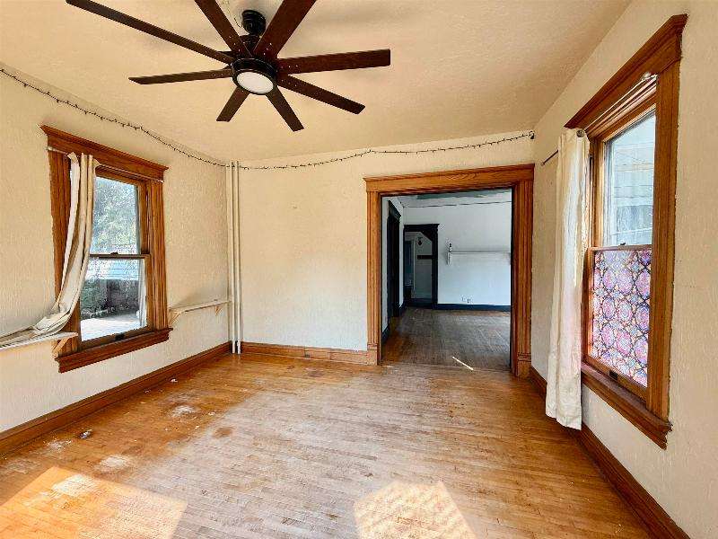 This spacious home is situated on an 0.37 acre, double lot, Conveniently in walking distance to businesses, public schools and parks. Home boasts natural light and has plenty of space throughout. Main level offers Living room, office/den, laundry, formal dining, and kitchen. Up the staircase you have a unique primary bedroom with walk in closet and loft storage, full bath and 3 additional bedrooms. Outside you have a spacious yard, detached 1 car garage and detached 3 car garage. Additional fenced in area too. Home is in need of updates and repairs. Being sold "as is" Bring your ideas and restore the beauty and character and beauty that lies beneath (There are pocket doors).