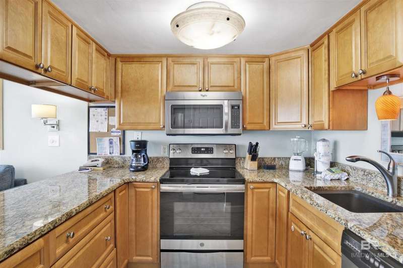 Island Winds E 806 features significant differences from other 1BR condos. This nonsmoking unit features a reconfigured layout /w enlarged kitchen, altered bar for improved space and reconfigured closets. Updated with all tile flooring (including underneath cabinetry/water heater). HVAC was replaced 2011; kitchen cabinets & granite counters were new in 2013 & all appliances are no older than that. There's a hall closet that can be made into an owners' closet /w the addition of a lock. Although the reconfigured utility closet contains a stacked W/D, it can accommodate a full-size W/D. All doors are swing (no bifolds). The LR features a reversed layout with easy access to beachfront balcony, double crown molding, ceiling fan, wall sconces and a 65 Samsung UHD curved screen TV /w hidden cable/internet wiring. Sofa & armchair are new (Nov 2024). Island Winds E is a modular concrete structure /w 6 walls built by Brett Robinson. This low density complex has a lg Gulf-front footprint; the building was significantly updated via extensive $1.4 million dollar renovation (2016) which replaced the entire beachfront wall with an EPCO full glass system. The cut-away balcony walls (unique to Island Winds E) provide some of the most panoramic views on the Coast. 806 is a premier unit with $35,824 gross income (2024). Buyer to verify all information during due diligence.