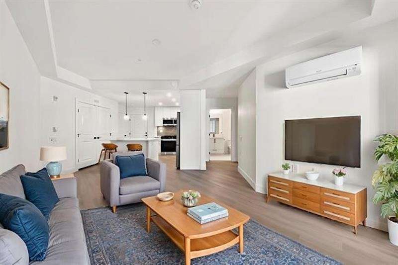 A brand new King and Crescent home, Brought to you by award winning Zenterra Developments. Located in Beautiful South Surrey. A thoughtful layout with an open Kitchen with Samsung appliances, Gas stove, quartz countertops and sleek back splash and fixtures. 9 foot ceilings in both main living area and bedrm. This unit is upgraded with A/C. The Development when complete will feature over 9700 SQFT of amenities, from private lounges, fitness centre, spin and yoga room and a guest suite for out of town guests. Easy access to King George Blvd and Highway 99. The area will soon be able to enjoy the Nicomekl Riverfront Park, offering nearly 3 km of scenic riverfront, coming soon!