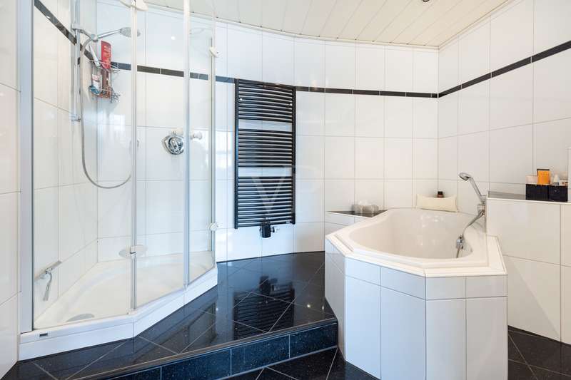 This modern semi-detached house offers a unique opportunity for those looking for a stylish and well-maintained home. Situated on a communal plot of approx. 468 m², the property impresses with its well thought-out room layout and high-quality fittings. Built in 2000, this property offers a generous living space of approx. 196 m², which is divided into a total of five rooms, including three spacious bedrooms that offer plenty of room for individual design options. Two modern bathrooms emphasize the upscale living comfort and contribute to the attractiveness of the house. A particular highlight is the installed underfloor heating, which provides cozy warmth and is supplemented by resource-saving gas operation. This unit also has a further bedroom or living area with balcony on the 2nd floor, which offers additional comfort. There are also further kitchen connections in this area, which makes this area potentially usable as a separate residential unit. A special highlight is the in-house sauna, which has direct access to the bathroom - a place of relaxation and comfort that allows you to enjoy wellness moments within your own four walls. The architecture of the semi-detached house features a four-shell sand-lime brick masonry construction with additional intermediate and solid clinker brick insulation, which ensures both energy efficiency and a pleasant indoor climate. An allergy-friendly ventilation system with heat recovery provides fresh air and contributes to the quality of life. The open-plan living area is complemented by an elegant designer fireplace from Rüegg, which not only creates a cozy atmosphere in winter, but is also a visual highlight. The officially designated living space is 196 m². A subsequently allocated room on the second floor currently increases this to 212 m² - this room will be removed when the property is sold, but can remain if desired; in this case, the purchase price increases to 647,000 euros. Pictures of the room mentioned are not included in the exposé, but can be made available on request. Both semi-detached houses are owned by the same vendor and can also be purchased together if interested. The south-facing sun terrace invites you to relax and offers direct access to the lovingly landscaped garden. A spacious party cellar with its own garden access provides an additional leisure area and is perfect for social gatherings. The integrated garage, which is accessible from the basement, completes the high-quality offer of this house. This property is an excellent option for families looking for a long-term home as well as for investors considering the purchase of both semi-detached houses. The house combines modern elements with durable construction quality and offers an environment that optimally harmonizes comfort and functionality. We recommend that you arrange a viewing appointment to experience this compelling offer in person. We will be happy to provide you with further information and arrange an appointment.