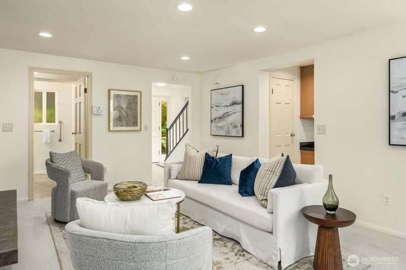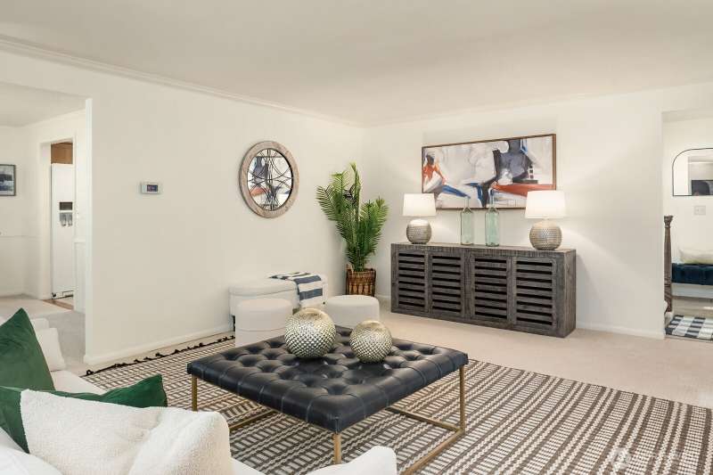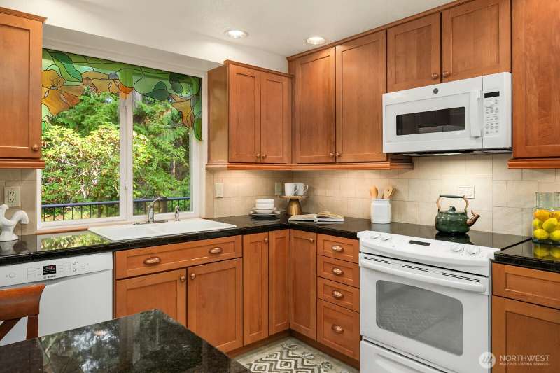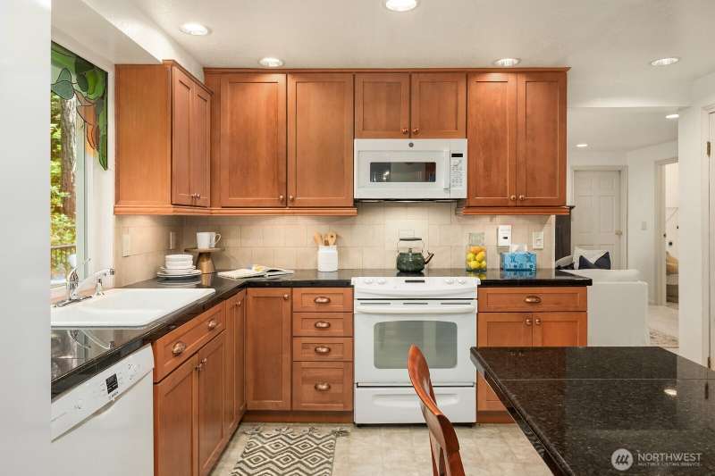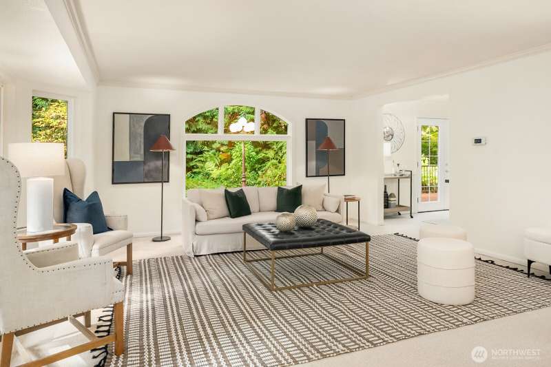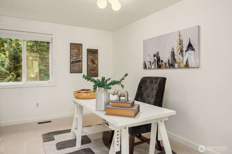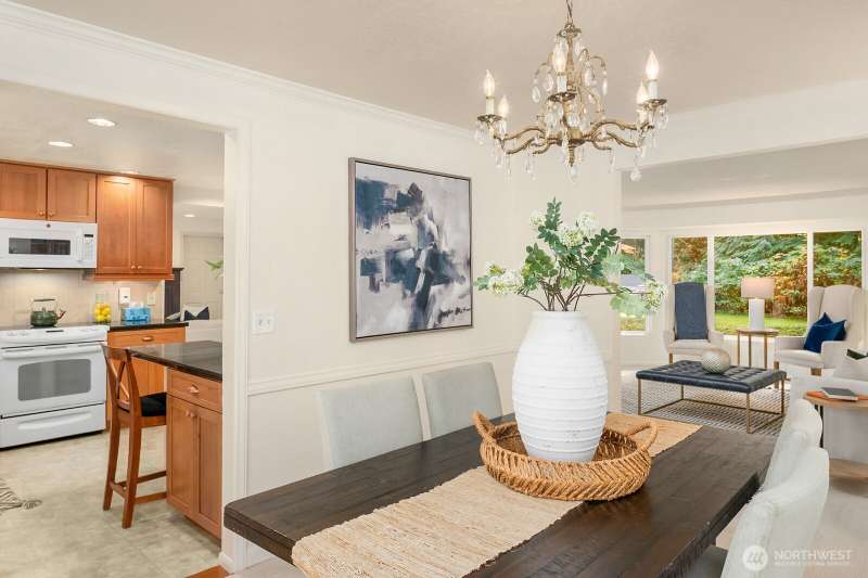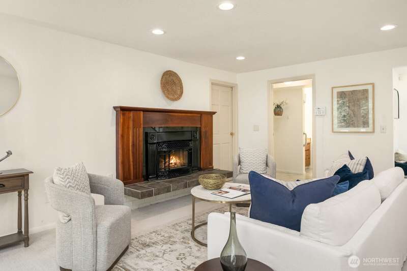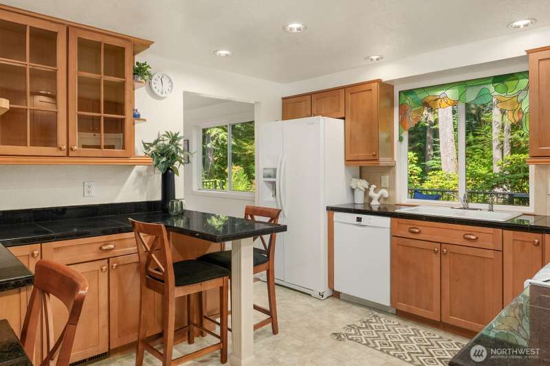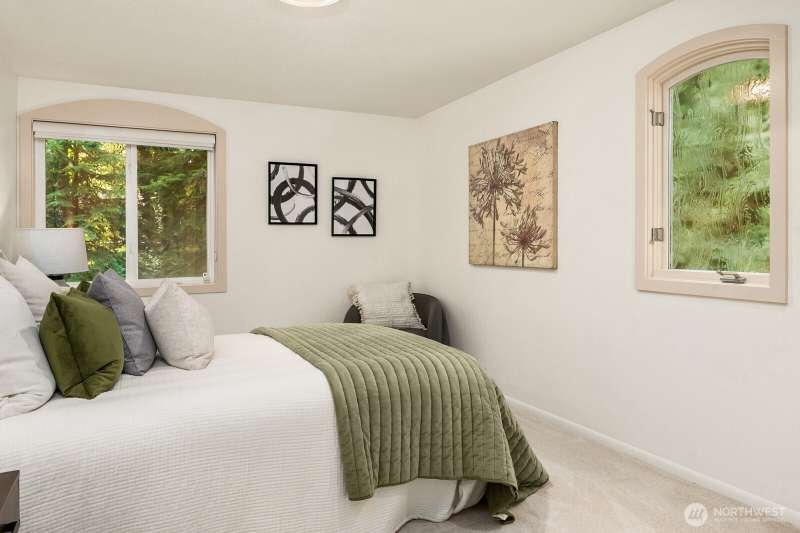 Stunning secluded tree-lined street leads you to a small community of homes where you will find this beautiful 4BR residence on 1.58 acres in Woodinville. Move-in-ready with brand NEW ROOF & skylights, also brand-new carpet & interior paint + refinished large deck! Inside you’ll find a circular floorplan with gorgeous bay windows in the spacious living room, French doors to deck from Dining & Family rooms. Beautiful kitchen offers plenty of storage & counter-space, views to the trees in back, + walk-in-pantry. Cozy gas stove. Extra-large Primary Suite with walk-in-closet, attached Bath + door to 4th bedroom—perfect for nursery or office. Private, lush green views out every single window. Garden areas, & lots of parking. Northshore Schools.