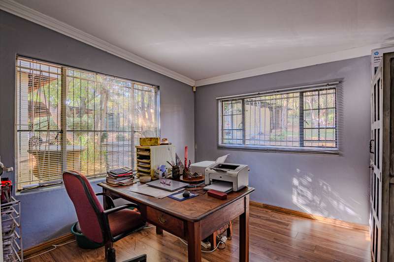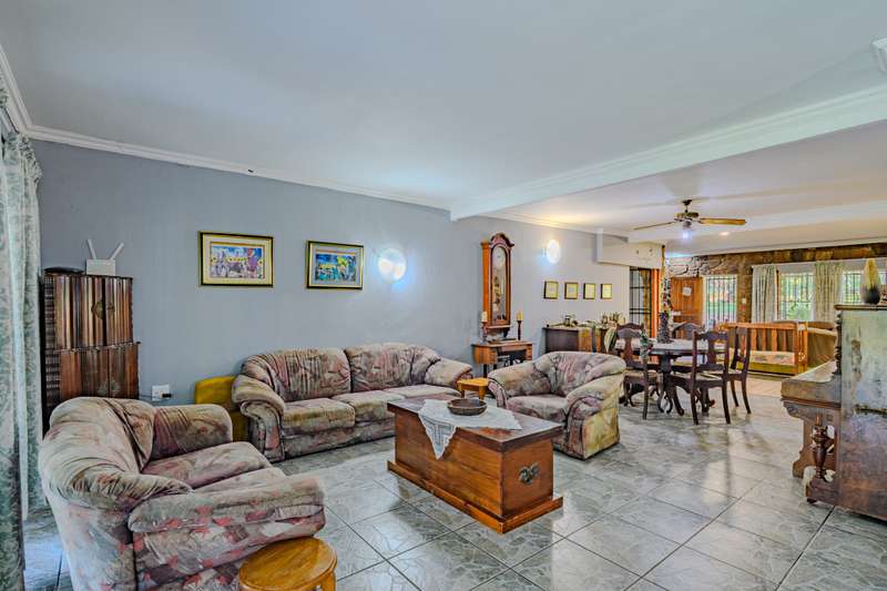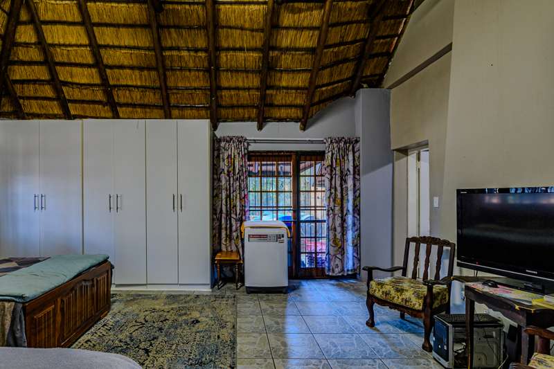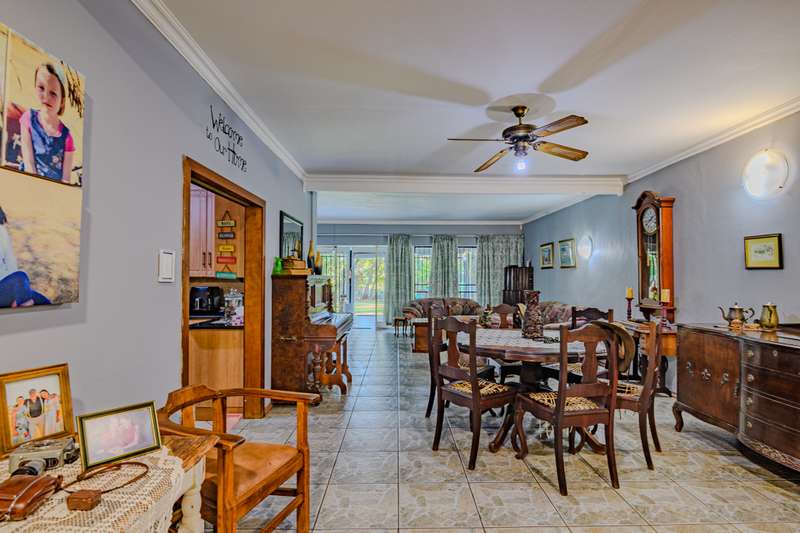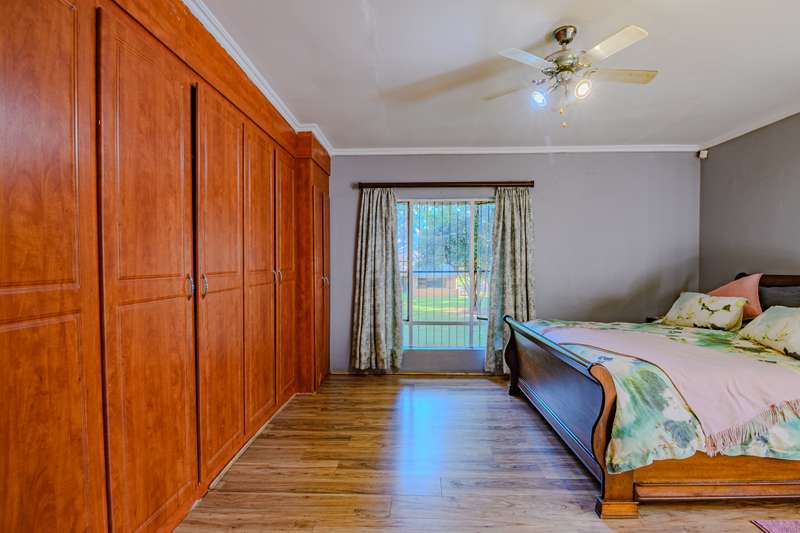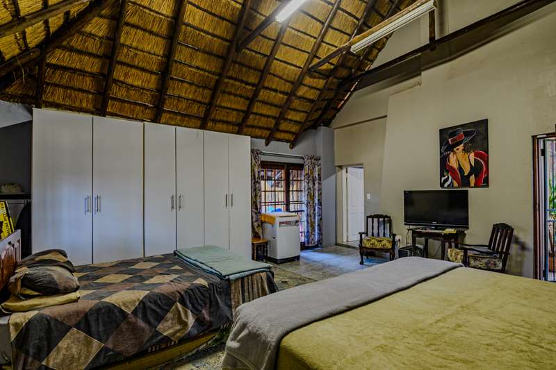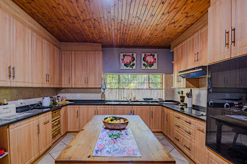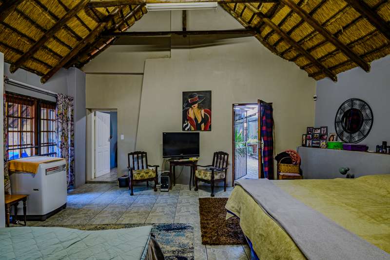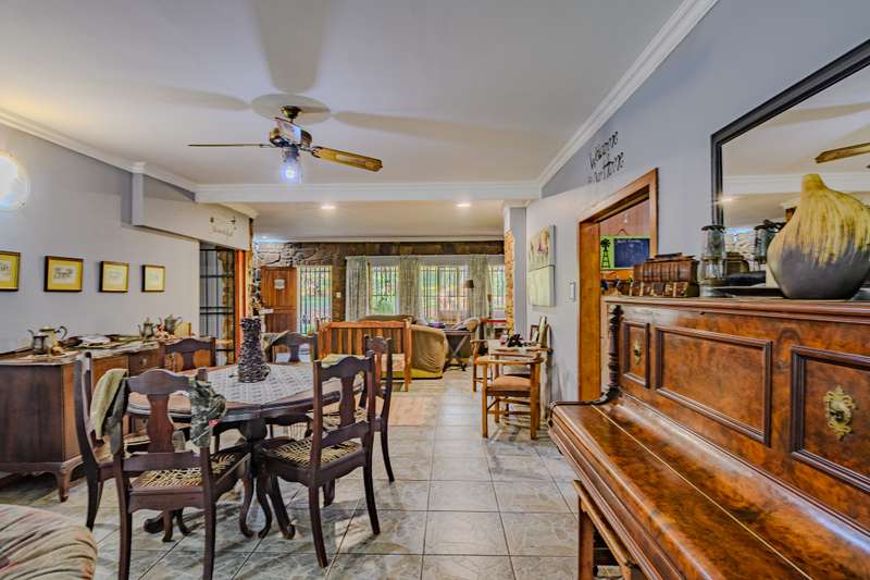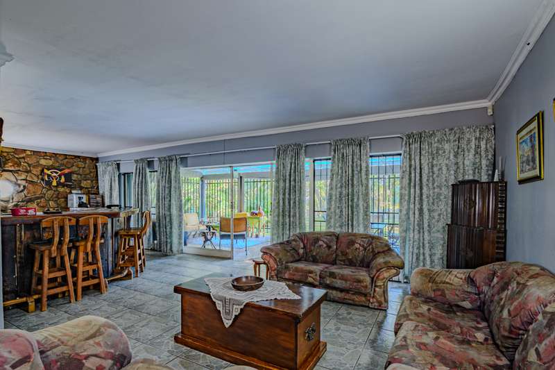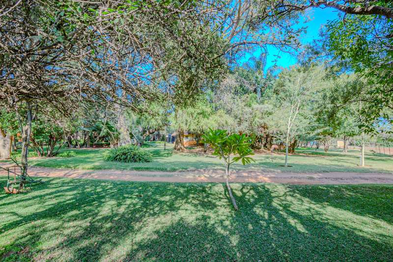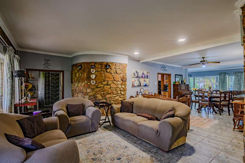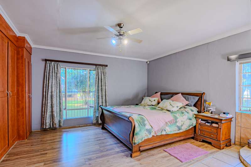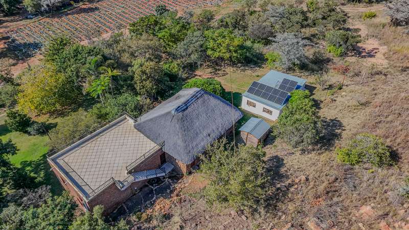 Escape to country living on this fully fenced 5.89-hectare farm, ideal for large families, dual-living, or those seeking a self-sufficient lifestyle. Surrounded by tall trees and lush gardens, this property combines comfort, functionality, and sustainability. MAIN HOUSE – Spacious and Designed for Entertaining This home offers generous living spaces with charming features: • Four large bedrooms with built-in cupboards. • Three well-placed bathrooms, neat and functional. • Open-plan lounge, dining room, and bar area that flow onto an enclosed front patio. • Separate TV room for family relaxation. • Back patio for year-round indoor-outdoor living. • Large kitchen with breakfast table, separate scullery, and laundry room. • Four covered carports for family and guest parking. SECOND HOUSE – Comfortable and Private Perfect for extended family or rental income: • Two spacious bedrooms and two bathrooms. • Open-plan lounge and dining area with plenty of natural light. • Functional kitchen with scullery. • Covered veranda (stoep) for relaxing outdoors. • Roof deck with scenic views, ideal for a rooftop garden or stargazing. • Carport for at least three vehicles. ADDITIONAL FEATURES • Enclosed lapa for year-round entertainment and social gatherings. • Sparkling swimming pool for family enjoyment. • Solar system with 14 panels and 2 inverters (12 kVA) to reduce grid reliance. • Five water storage tanks (3 x 5000L and 2 x 5000L) for secure water supply. • Two boreholes delivering approx. 5000L/hr and 3000L/hr. • Septic tank system for eco-friendly waste management. • Secure storage areas for tools and equipment. • Three-room staff quarters. • The entire property is securely fenced for privacy and peace of mind. Located next to a tarred road, the property offers easy access while maintaining a quiet rural atmosphere. There is ample space for keeping chickens, starting a vegetable garden, or living more sustainably. With excellent infrastructure and the potential to go fully off-grid, this farm presents a unique opportunity to embrace a peaceful, independent lifestyle.