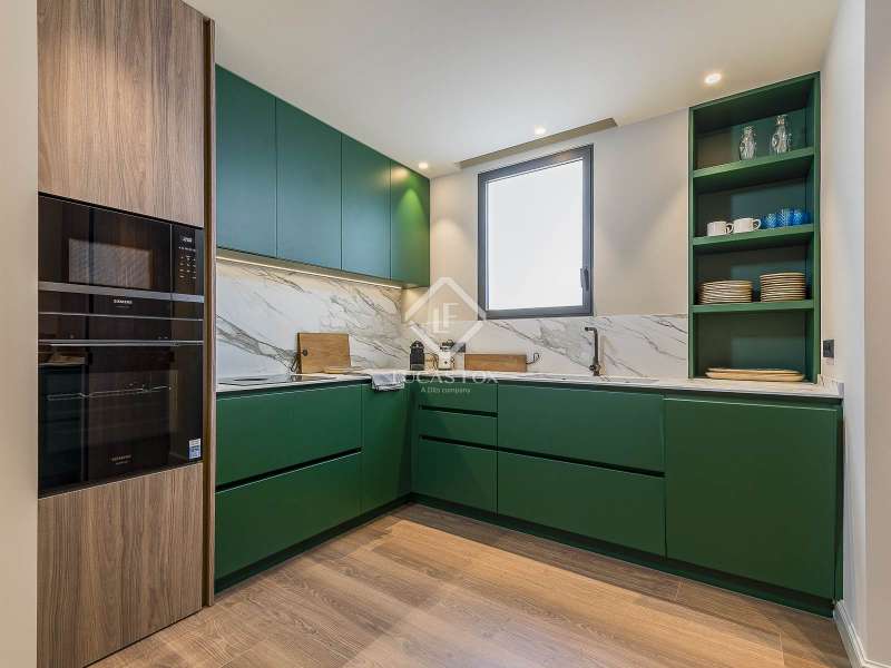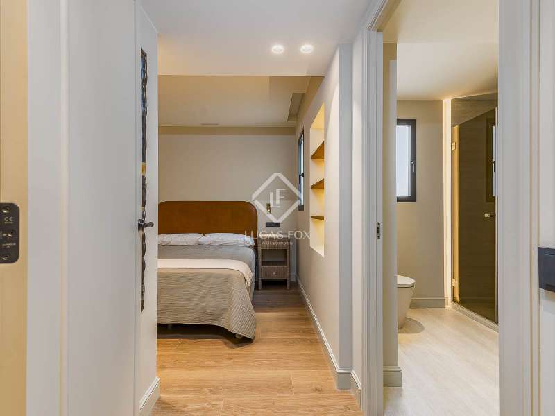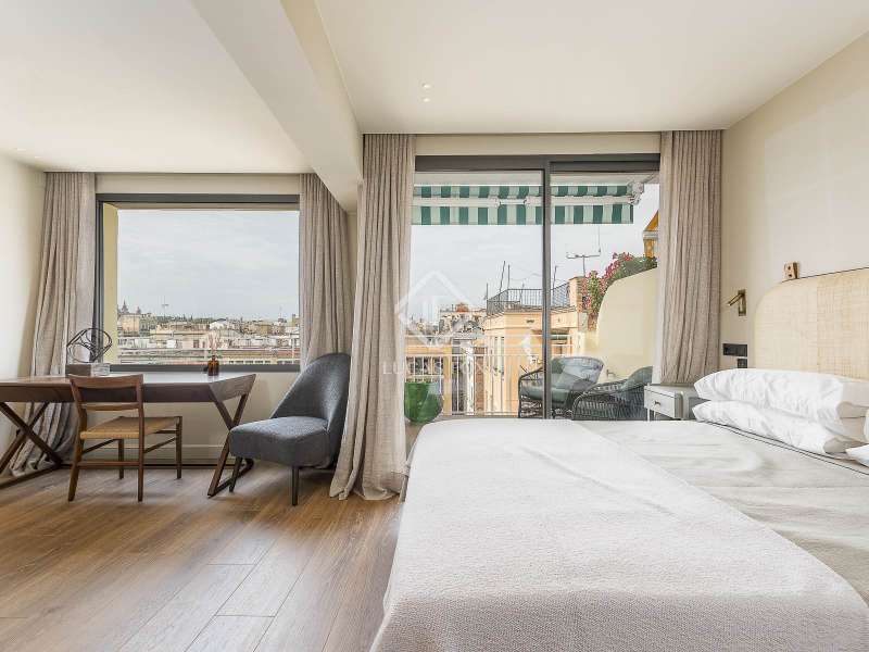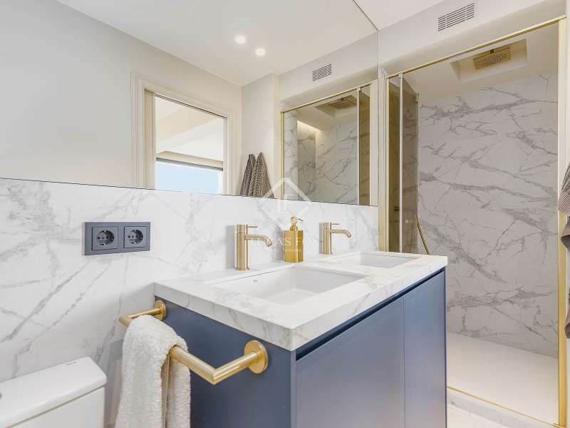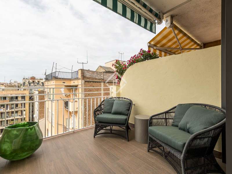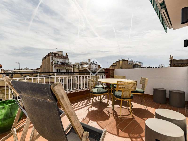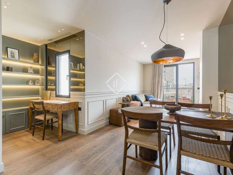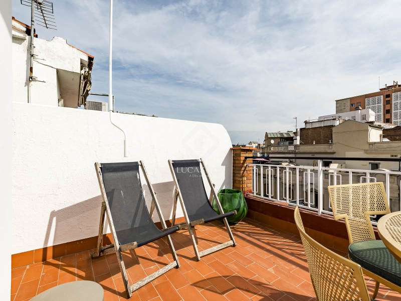 We present this spectacular renovated 120 m² penthouse, ready to move into. It is located on a quiet pedestrian street in the sought-after Nova Esquerra de l'Eixample neighbourhood . This is undoubtedly a unique opportunity for those seeking an elegant, functional home with all the amenities. The property features a spacious and bright day area with an open-plan dining room living room connected to a modern kitchen equipped with high-end appliances . The living room leads out to a charming terrace, perfect for relaxing or enjoying meals al fresco. This penthouse has two double bedrooms with built-in wardrobes. The master bedroom suite stands out for its direct access to a second private terrace with unobstructed views, ideal for enjoying quiet moments in an urban setting. Both bedrooms have en suite bathroom , although the property has a third bathroom for added convenience. This exclusive property is being sold furnished, with high-quality finishes, ducted air conditioning, and modern woodwork that guarantees thermal and acoustic insulation. As an added value, it includes a private parking space and storage room on the same building.