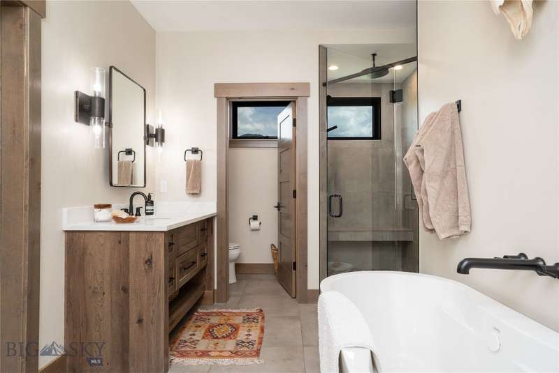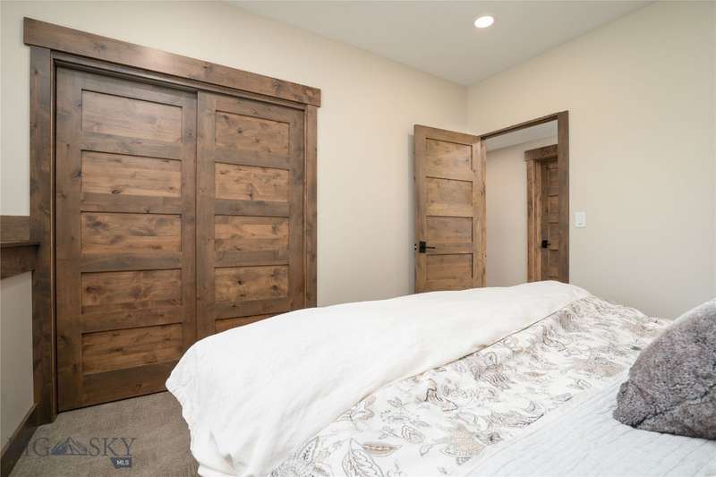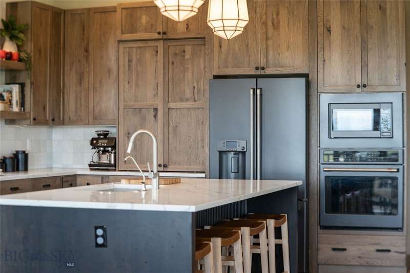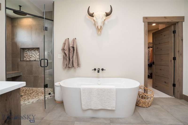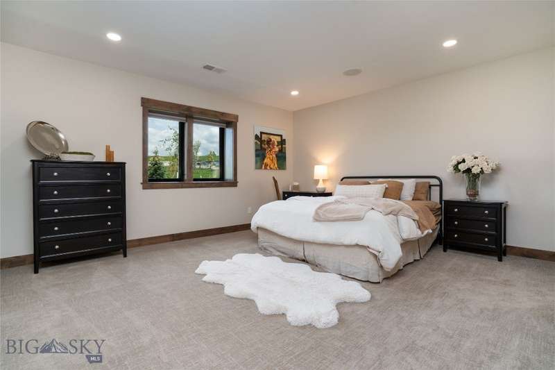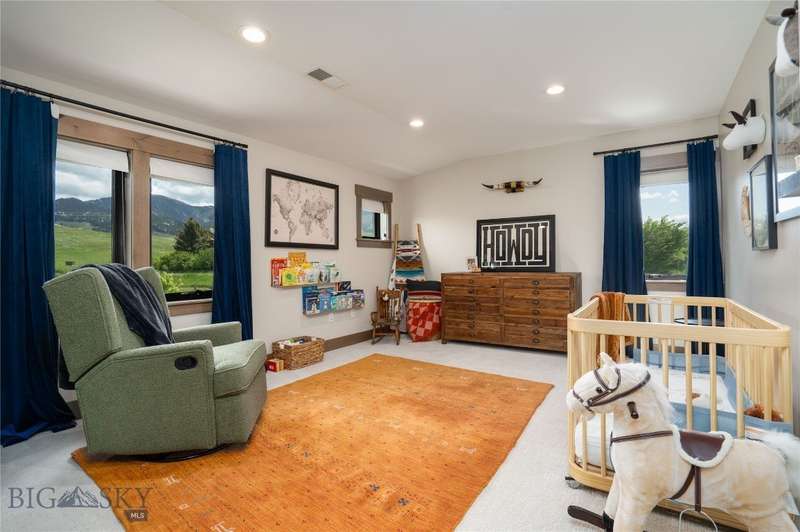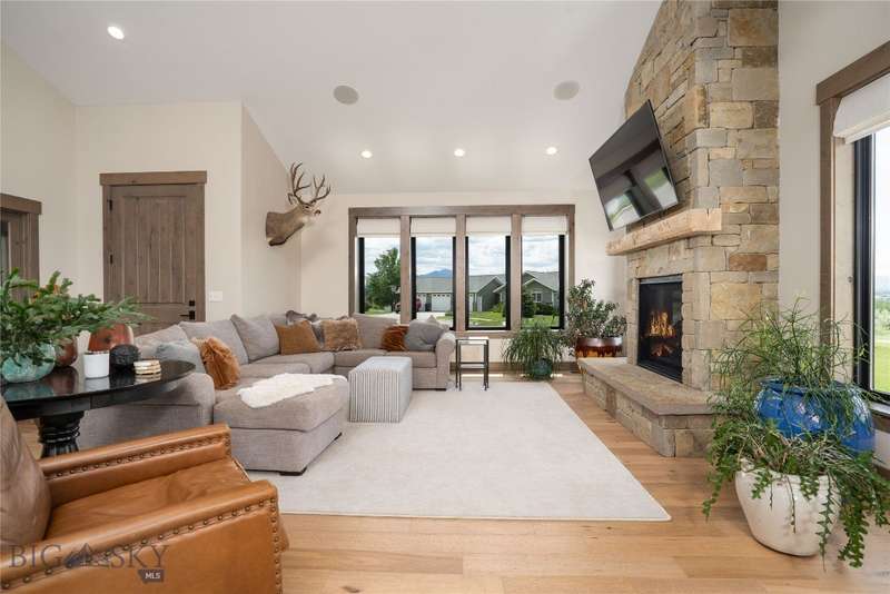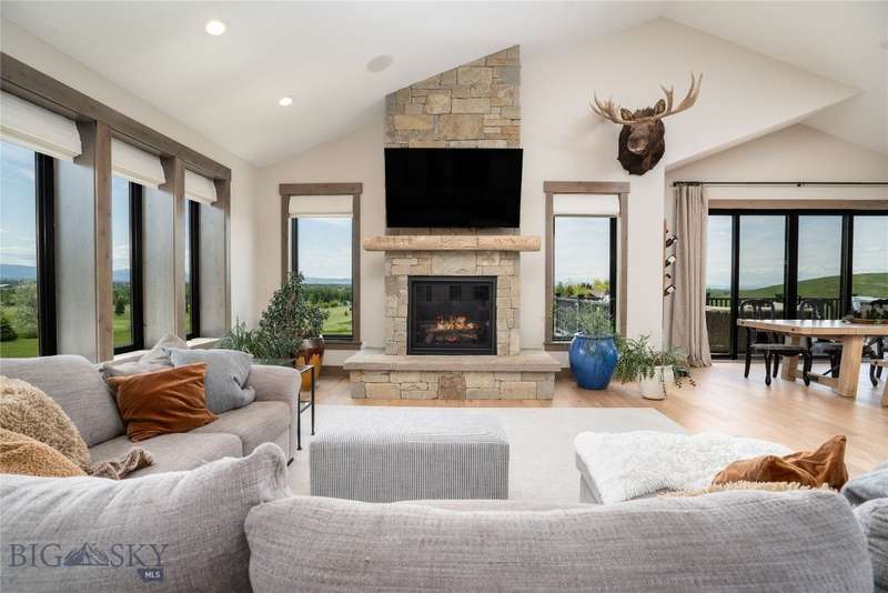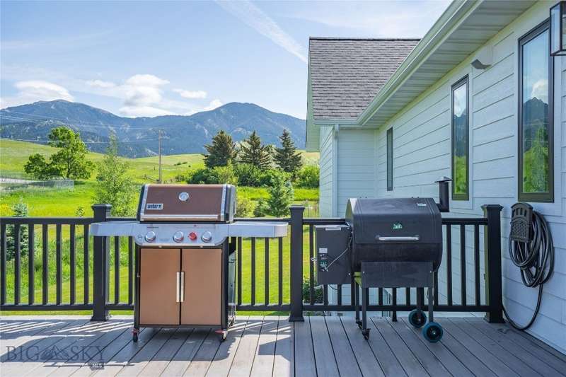 Welcome to 1055 Caddie Court-where thoughtful design meets mountain luxury in the sought-after Bridger Creek subdivision. Located on a spacious 0.78-acre lot on a quiet cul-de-sac and backing to open space, this 4,408 SF, 6-bedroom home offers the perfect blend of privacy, views, and proximity to all things Bozeman. Built in 2021, the home is just minutes from Downtown, Bridger Creek Golf Course, and a network of hiking and biking trails. Step inside to a beautifully crafted interior featuring vaulted ceilings, a gas fireplace, and a sunlit open-concept great room that opens to a large wrap-around deck-perfect for entertaining or enjoying panoramic views of the Spanish Peaks and Tobacco Root Mountains. The main-level primary suite offers a peaceful retreat with a soaking tub, tiled walk-in shower, and a generous walk-in closet. The office/playroom adjacent to the Great Room provides flexible space to fit your lifestyle. The beautifully appointed kitchen features a large center island, GE Cafe appliances, and a striking blend of hickory and alder cabinetry. And don't miss the walk-in pantry with built-in shelving and additional fridge/freezer. A roomy laundry room with sink and counter space, a convenient mudroom drop zone, and an oversized heated 3-car garage round out the main floor's functionality. Upstairs, you'll find two well-sized bedrooms and a full bath, while the fully finished walkout lower level includes three more bedrooms-one of which is a second suite with 3/4 bath-plus a spacious family room with wet bar that opens to a covered patio with built-in fire pit area. Perfect for hosting or multi-generational living. Additional high-end upgrades include a whole-home integrated sound system, reclaimed wood accent walls, custom live-edge vanity in the powder room, whole-home humidification, RO water system, dual hot water heaters, and abundant storage space. With its premium location, thoughtful layout, and upscale finishes, this home offers the best of Bozeman living-whether you're gathering with friends, working remotely, or exploring the trails just outside your door.