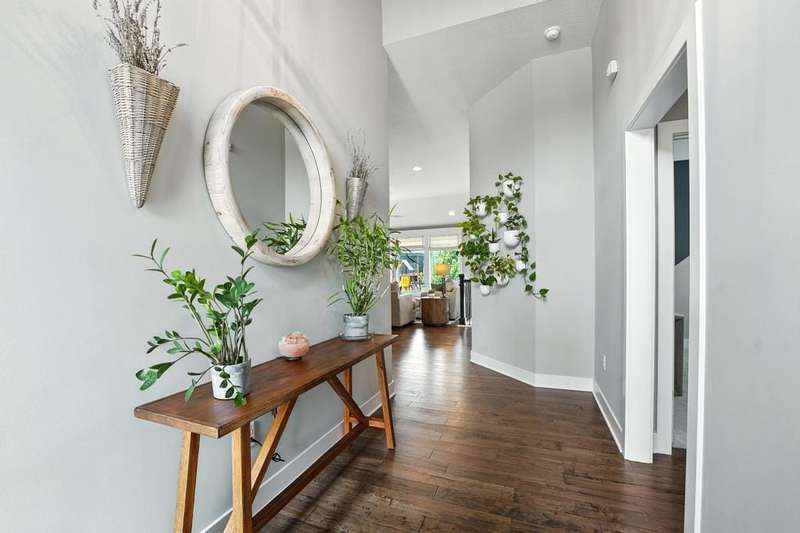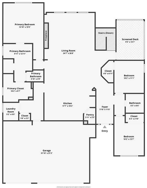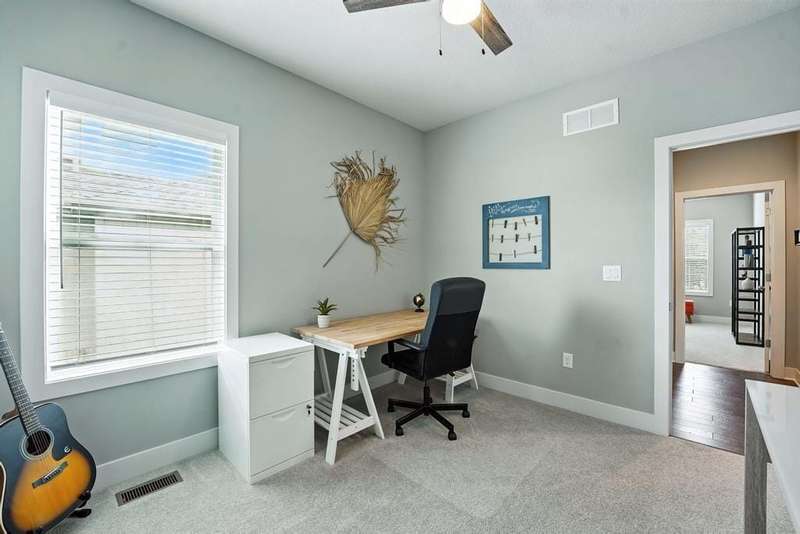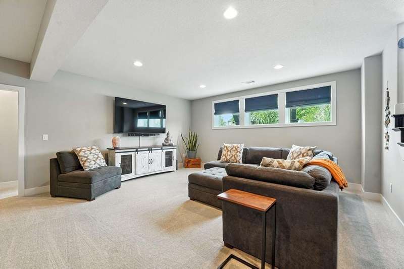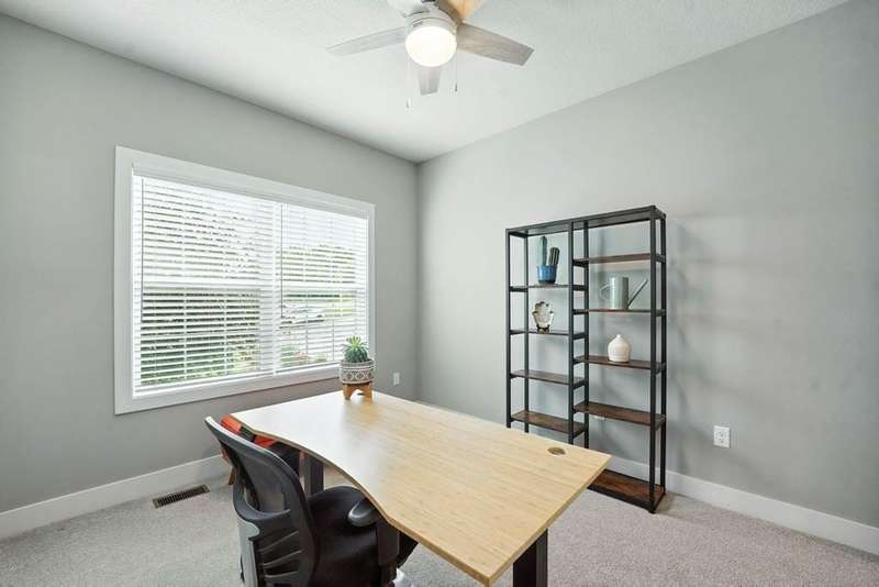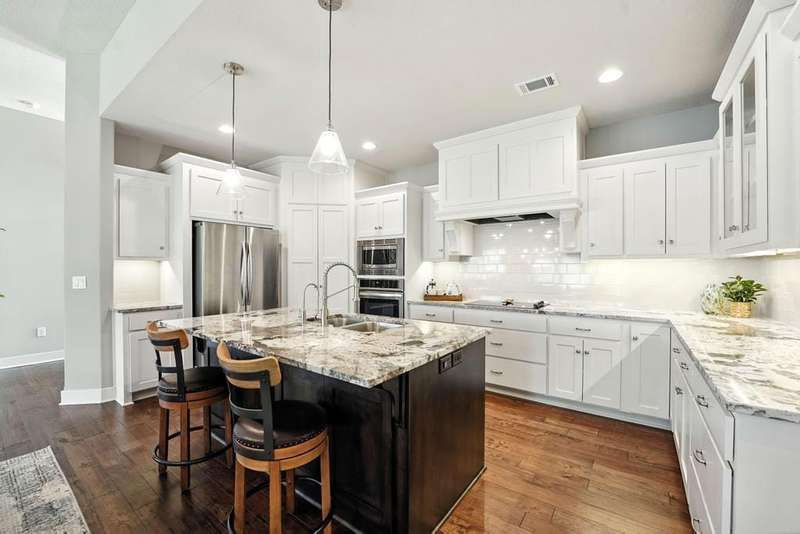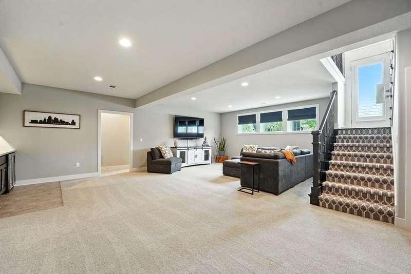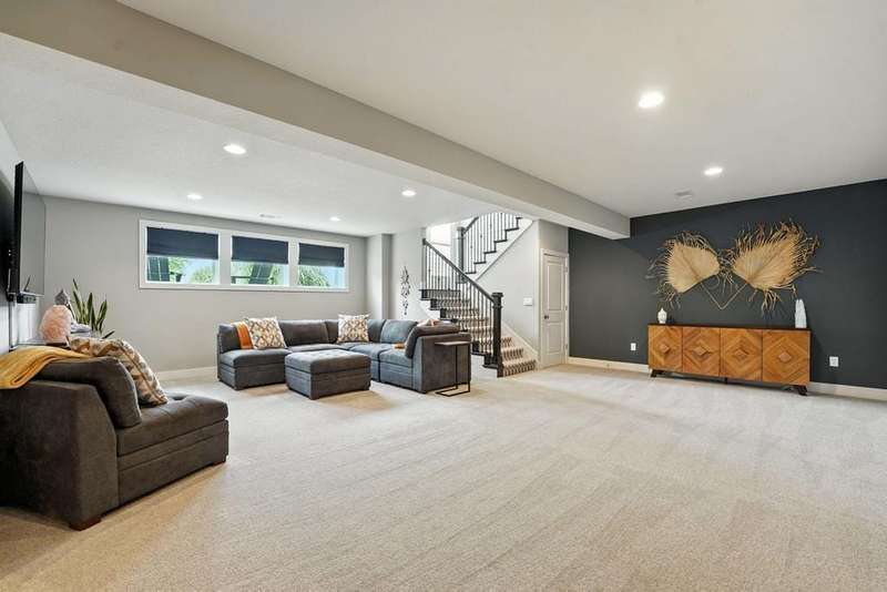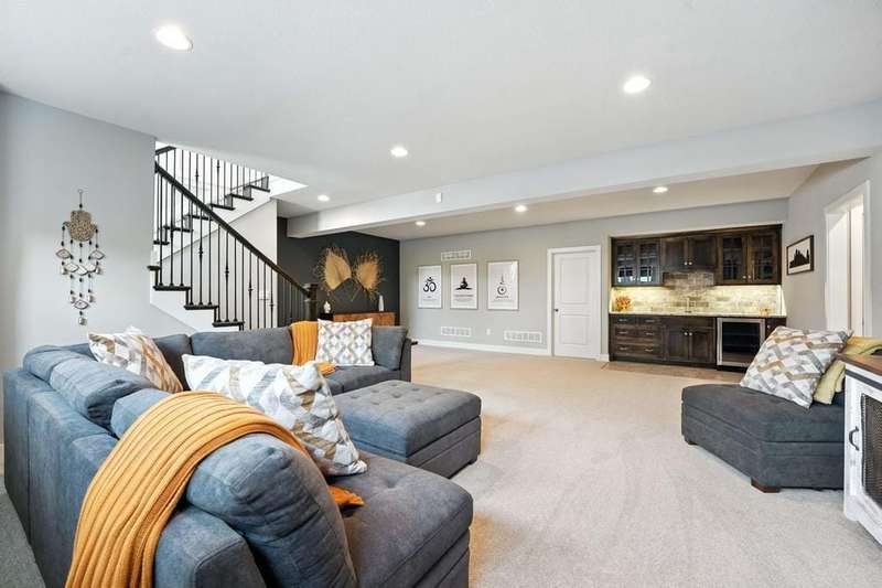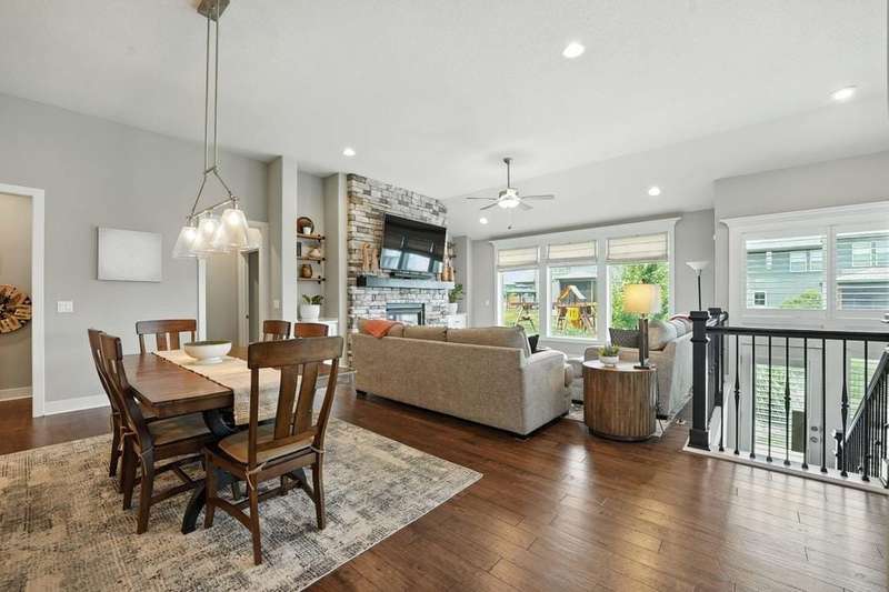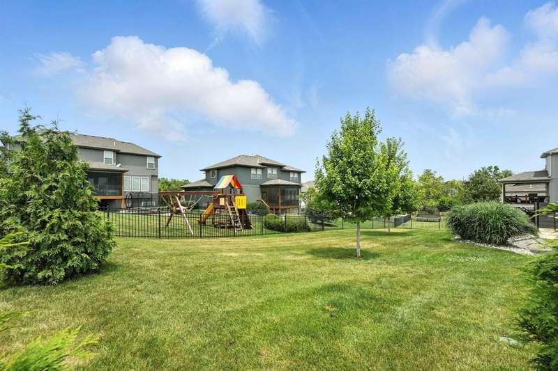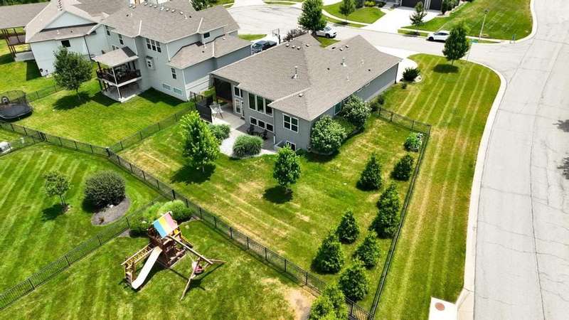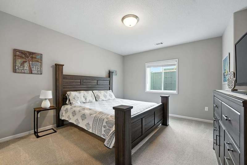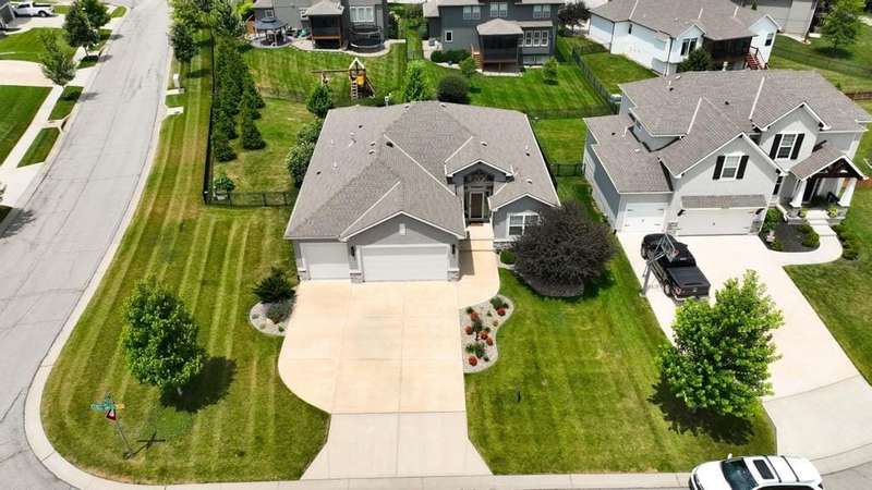This home is better than new! Fabulous ranch/reverse 1.5-story home, skillfully constructed by SAB Homes. As you enter, be welcomed by a bright entryway adorned with hardwood floors and designer light fixture. The kitchen, a true masterpiece, features luxurious granite countertops, an expansive island, stainless steel appliances, and a walk-in pantry. The open floor plan is ideal for hosting gatherings, while the living room offers warmth with a stone fireplace, built-in cabinets, and rustic floating shelves. The main floor is a sanctuary, offering a primary bedroom equipped with a walk-in closet and an en suite bathroom. This bathroom includes double vanities, a soaking tub, a tiled shower, and a private toilet room. There are two more bedrooms and another full bathroom on the main level, perfect for office space or guest rooms. Savor your morning coffee or enjoy the sunset on the charming screened-in deck, complete with newly installed aluminum railing and spindles. The basement, bathed in natural light, serves as an inviting retreat with a chic wet bar, a fourth bedroom, and a third full bathroom, as well as ample space suitable for a home gym or hobby space. The backyard boasts a newly installed stone patio and privacy screen, ideal for hosting your next barbecue. Situated on a generous corner lot with a sprinkler system and beautiful landscaping, this residence showcases over $40,000 in upgrades, including an aluminum fence, paved patio, privacy screen, plantation shutters, remote-controlled shades, water purification system, and monitored security system. As an added highlight, Stonebridge Trails has tons of amenities including, 2 clubhouses, 1 with work out facility, 4 pools, playgrounds, basketball and tennis courts and nature trails through out the neighborhood. Welcome to your dream oasis!